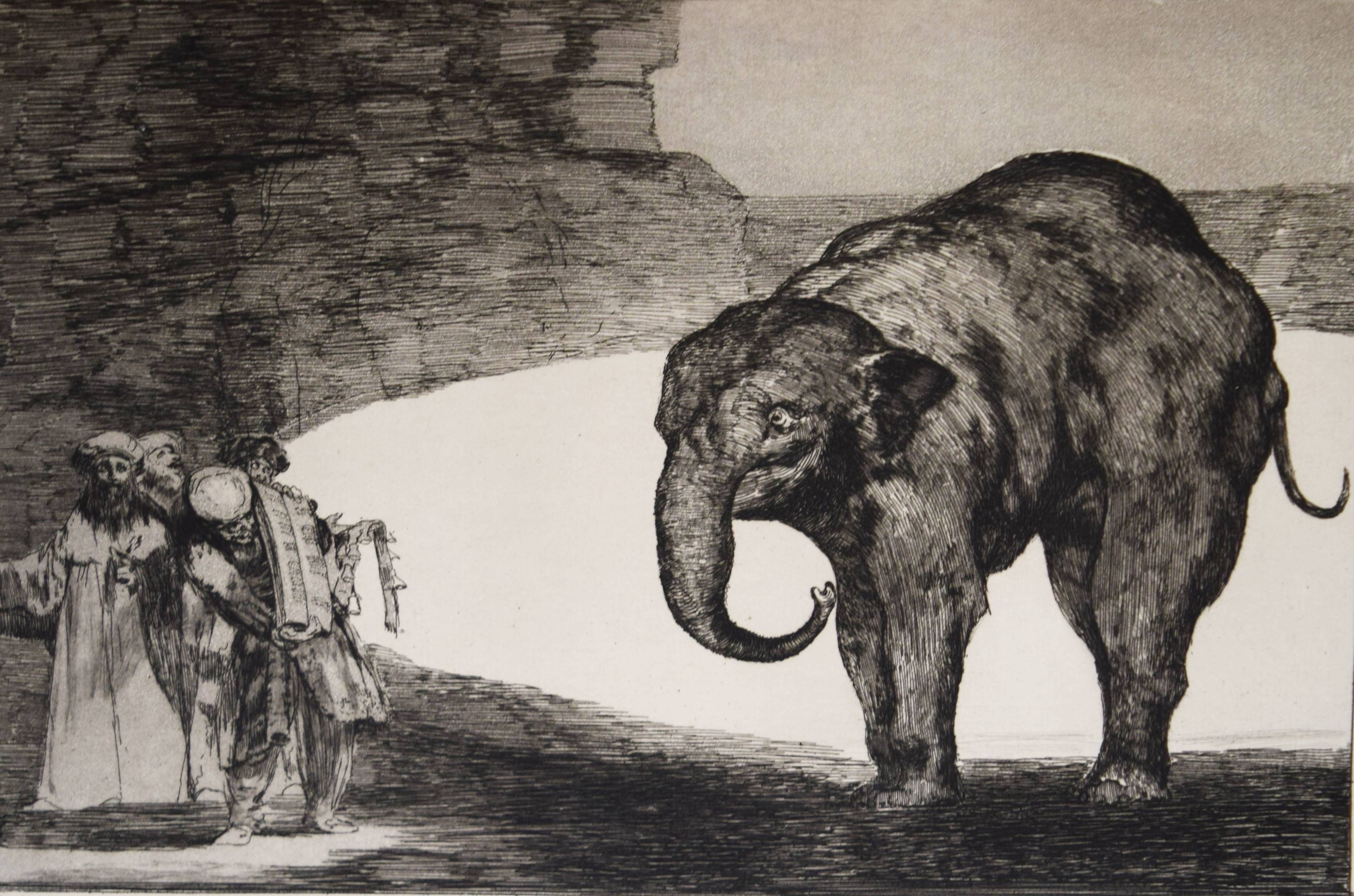 Goya, Francisco y Lucientes (1746-1828). Four original etchings from Los Proverbios (first impressions) and one etching after Goya (Self-Portrait). In: L’Art. Revue hebdomaire illustrée. Troisième année 1877, tome II, (Tome IX de la Collection). Paris, London, A. Ballue Éditeur 1877. Folio (45 x 32 cm.). [3] Bl., 324 S. mit 17 Radierungen, darunter 4 von F. Goya und 3 Heliogravuren und zahlr. Holzstichen im Text. Halblederband der Zeit mit goldgepr. Rückenschild, Rückenvergoldung, Deckelfiletten und Kopfgoldschnitt (signiert: (Georges) Canape-Belz). Harris 266-269 III. – Der wichtigste Jahrgang der bedeutenden französischen Kunstzeitschrift mit den 5 Original-Aquatintaradierungen von Francisco de Goya y Lucientes: „Goya“, „Lluvia de toros“, „Ortas leyes por el pueblo“, „Que guerrero“ und „Una reina del circo“. Die Graphiken aus der Serie „Los Proverbios“ wurden hier zuerst veröffentlicht. – Die Radierungen sind besonders gratig und sauber, sehr schönes sauberes Exemplar in einem prachtvollen signierten Handeinband.