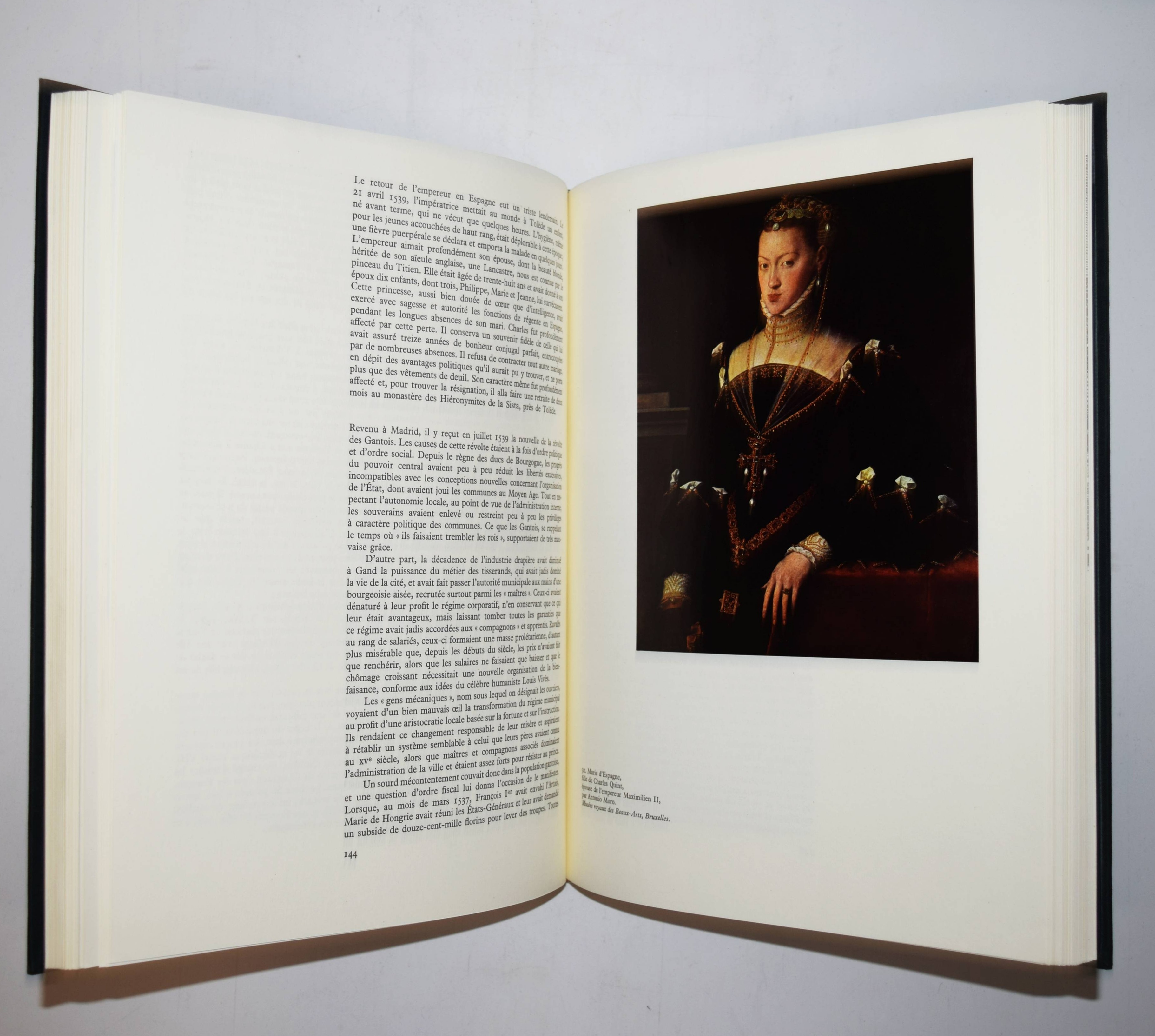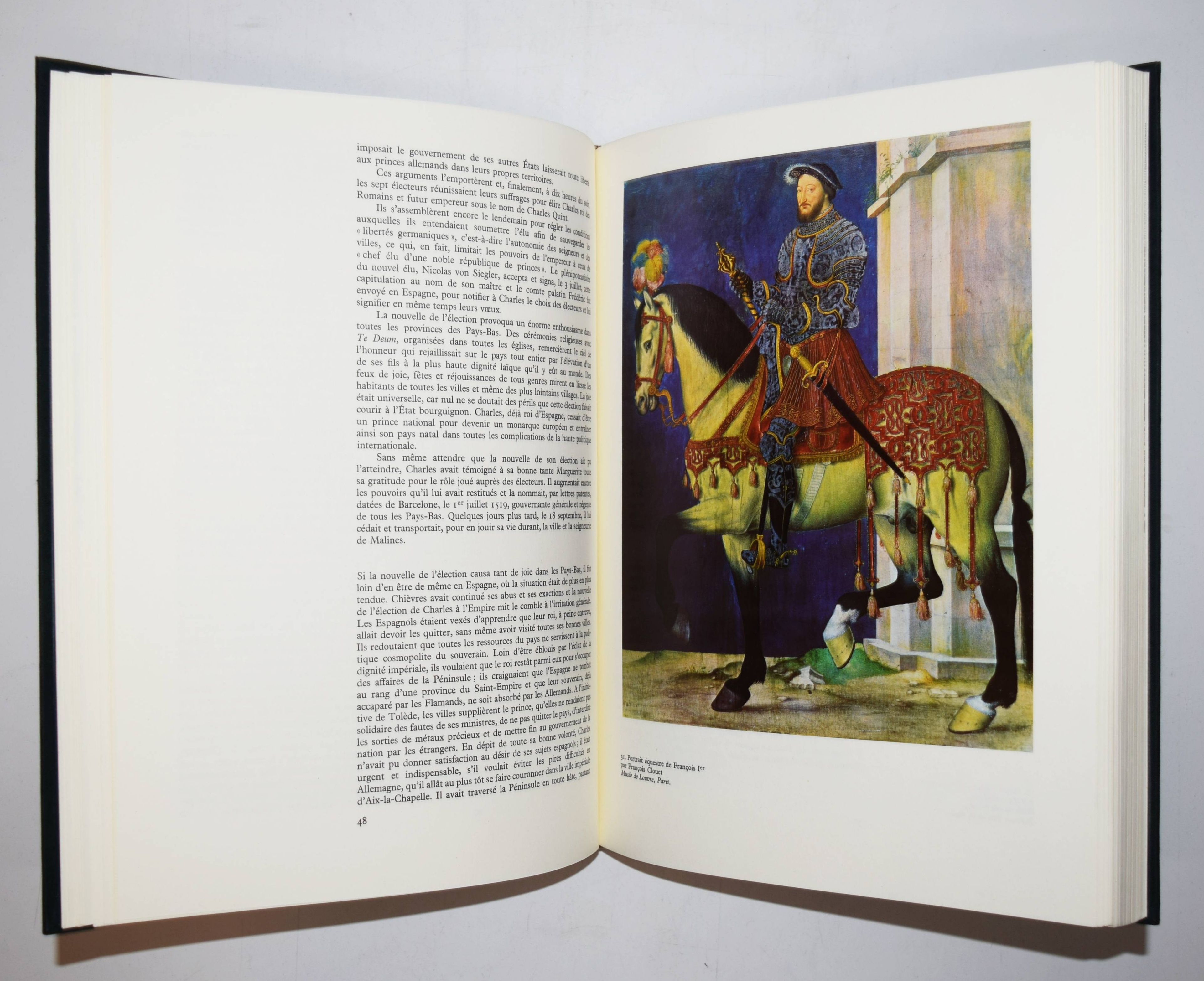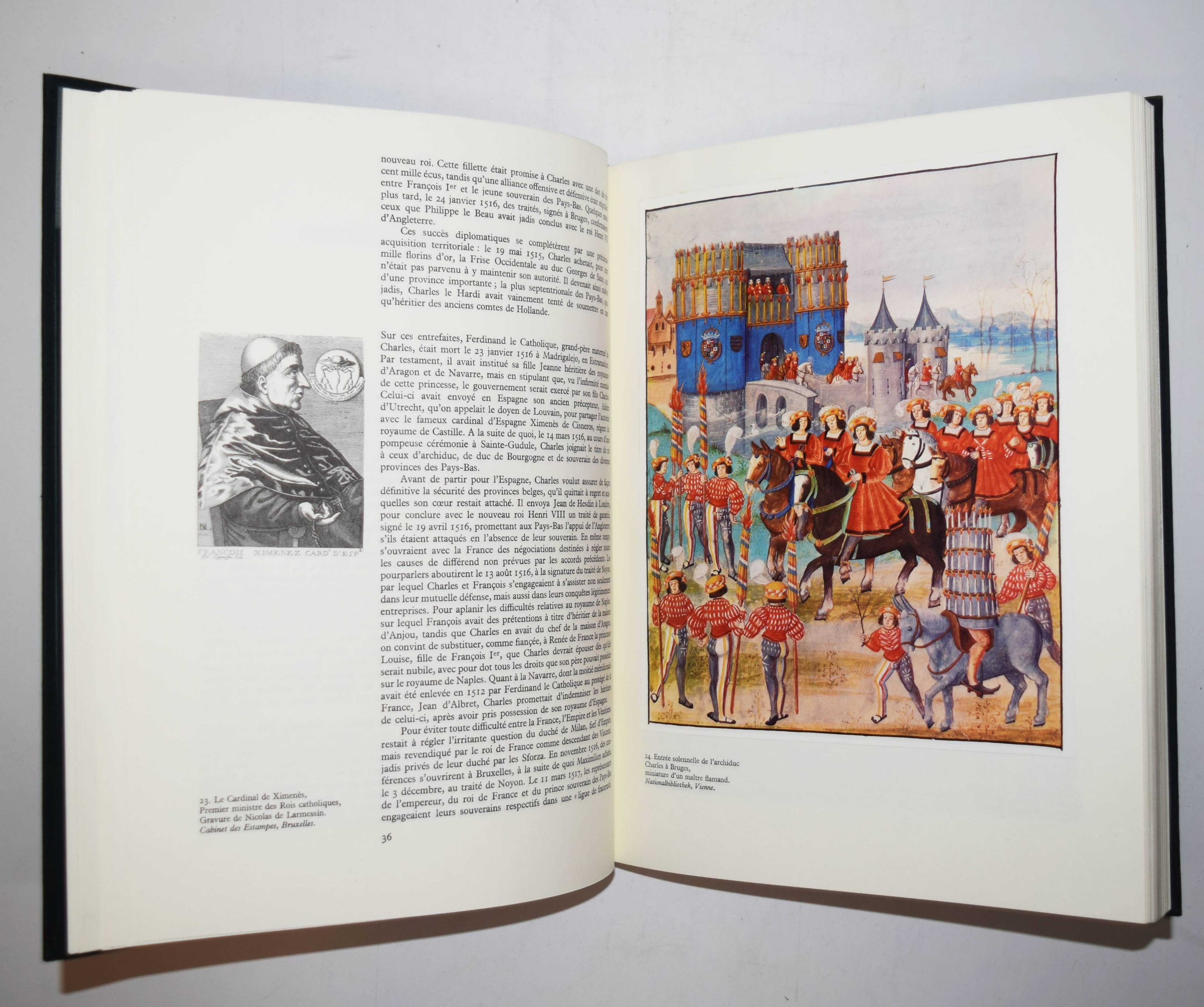 Karl V. – Terlinden, Charles. Carolus Quintus. Charles Quint empereur des deux mondes. Brügge, Brüssel, Desclée de Brouwer (1965). Folio (35 x 26 cm.). 267 S. mit 157 teils farbigen und montierten Abbildungen und Karten sowie farbig illustr. Beilagen-Heft. Orig.-Halbpergamentband mit goldgepr. Rückentitel und Deckelvignette in Pappschuber. (Bibliothèque européenne). Aufwendig ausgestattete Monographie über Kaiser Karl V. (1500-1558). – Der belgische Historiker Charles Terlinden (1878-1972) war von 1918 bis 1948 Professor für Neuere und Zeitgeschichte an der Katholischen Universität Löwen und seit 1955 Präsident des Belgischen Historischen Instituts in Rom. – Sehr schönes Exemplar.