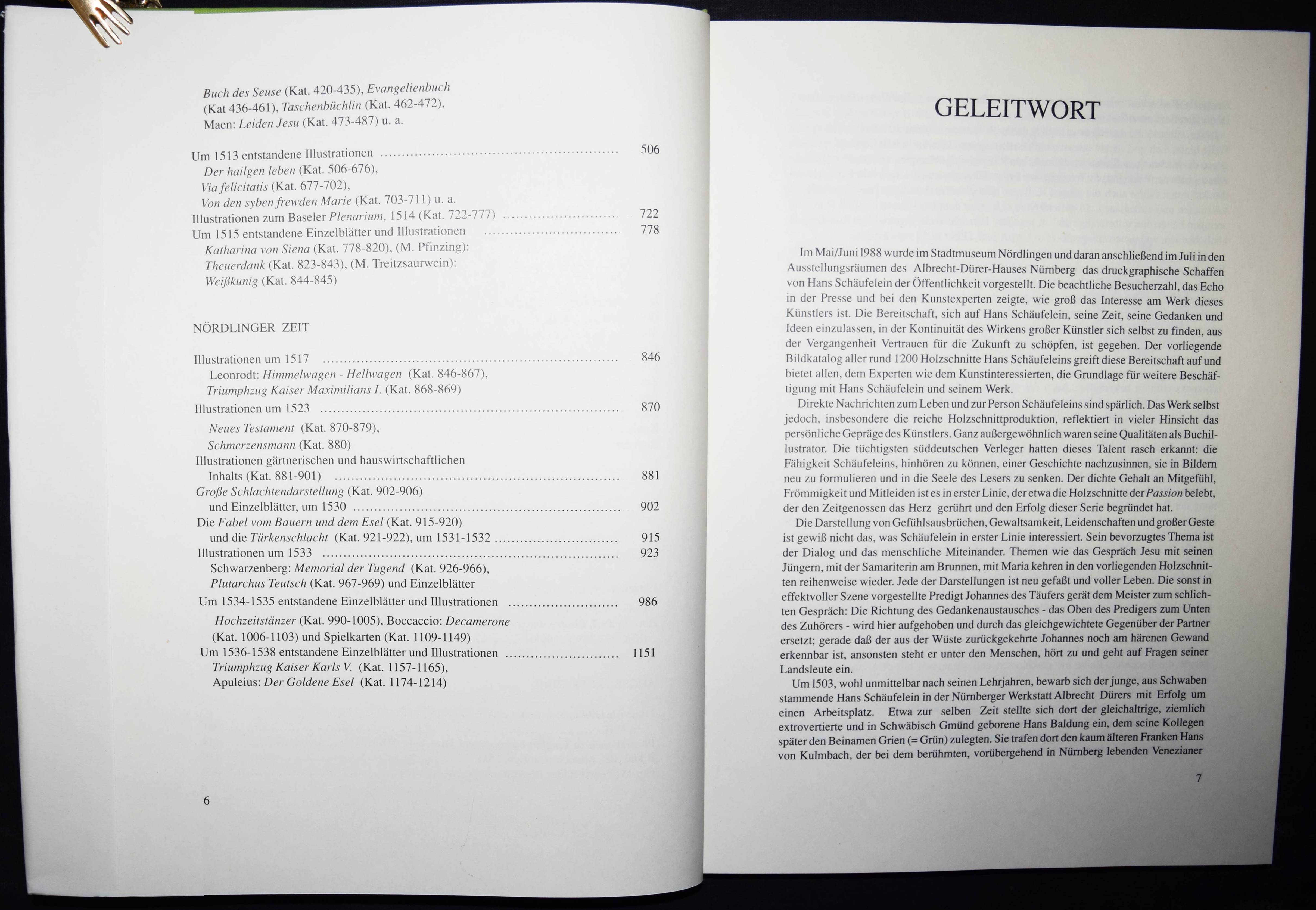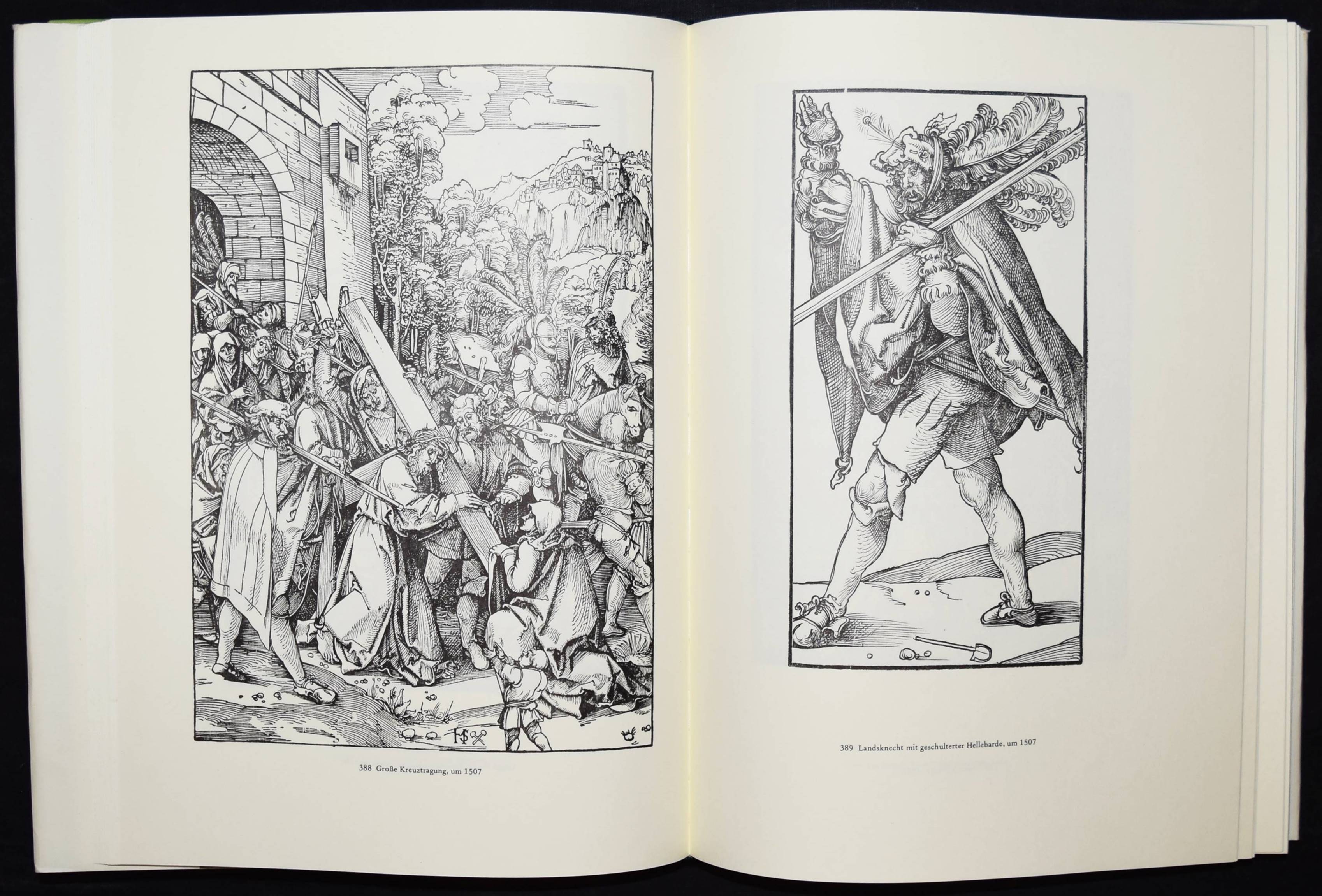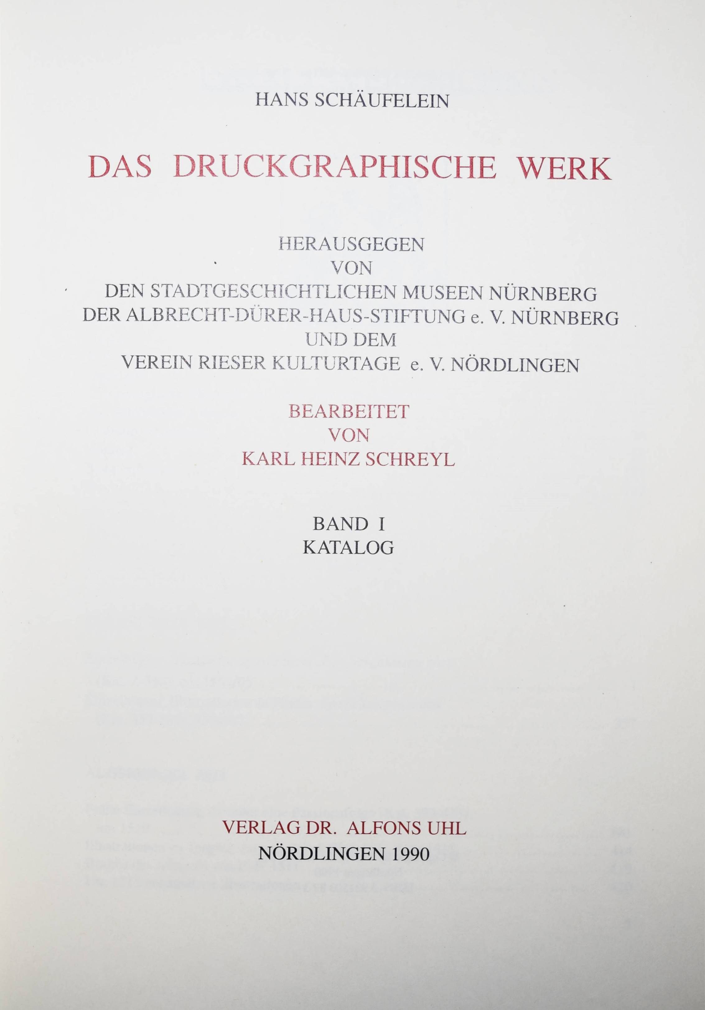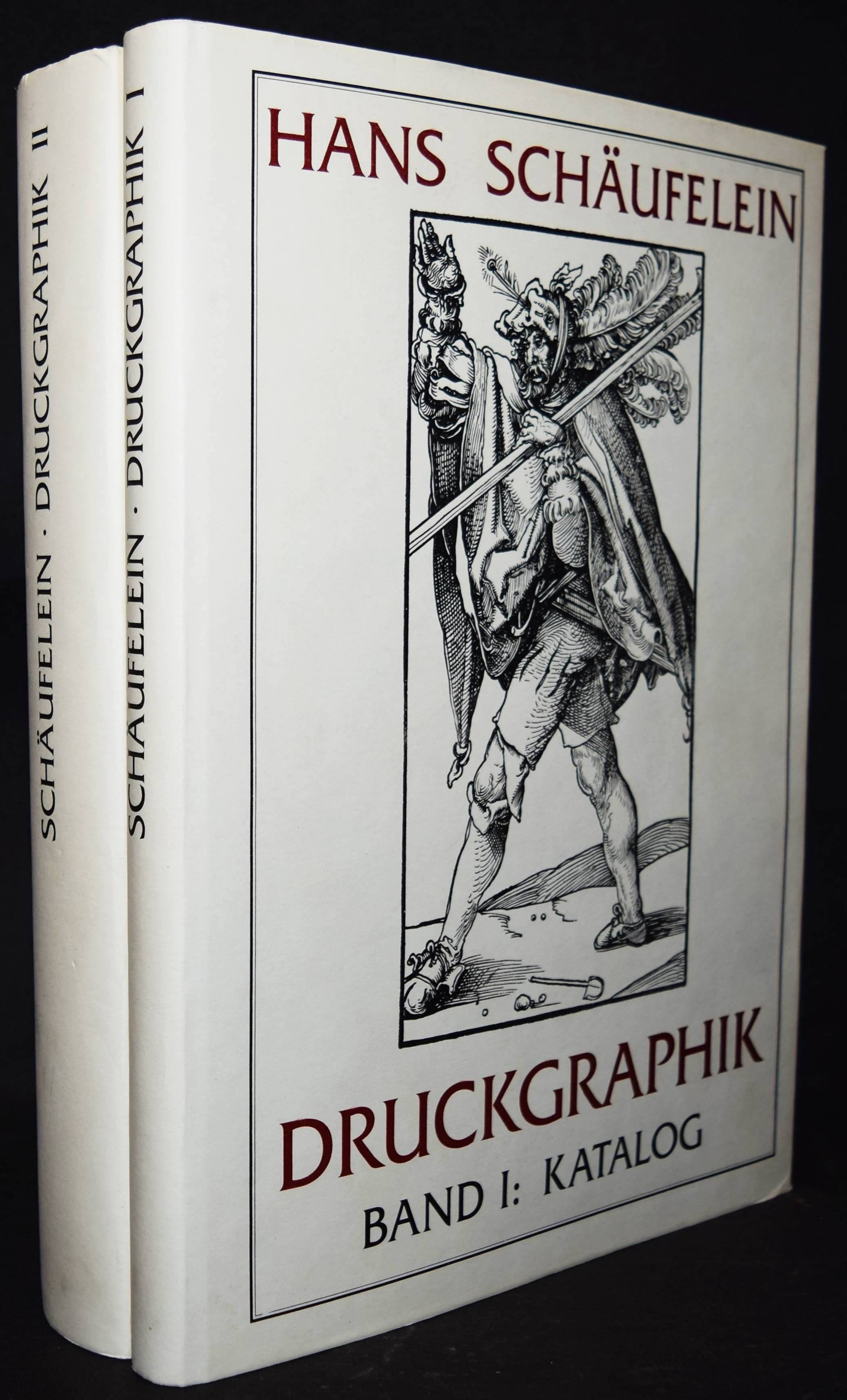 Schäufelein, Hans. Das Druckgraphische Werk. Bearbeitet von Karl Heinz Schreyl. 2 Bände (Katalog u. Bilddokumentation). Nördlingen, Uhl 1990. Folio. 194 S., 1 Bl.; 3 Bl. u. 1214 Abb. auf Tafeln. OLn. mit farbig illustr. OU. Sehr gutes Exemplar.