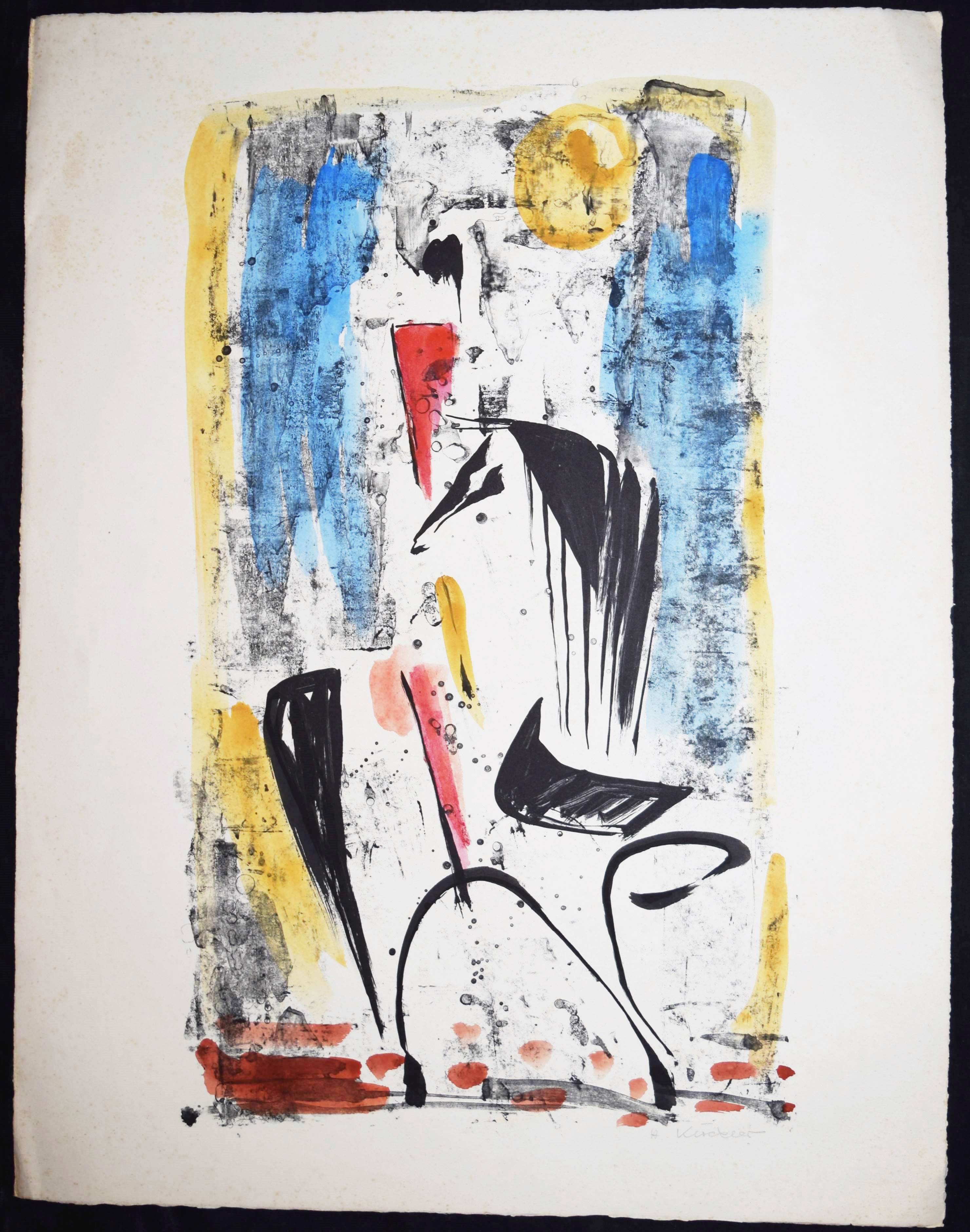 Klöckler, H(ermann), (1906-1976). 2 abstrakte Kompositionen. Signierte Orig.-Farblithographien. Davos (um 1970). Blattgr. jeweils 66 x 50 cm. Zeittypische Arbeiten im Stil von J. Miro. – H. Klöckler arbeitete in Davos als Maler und Metallplastiker.