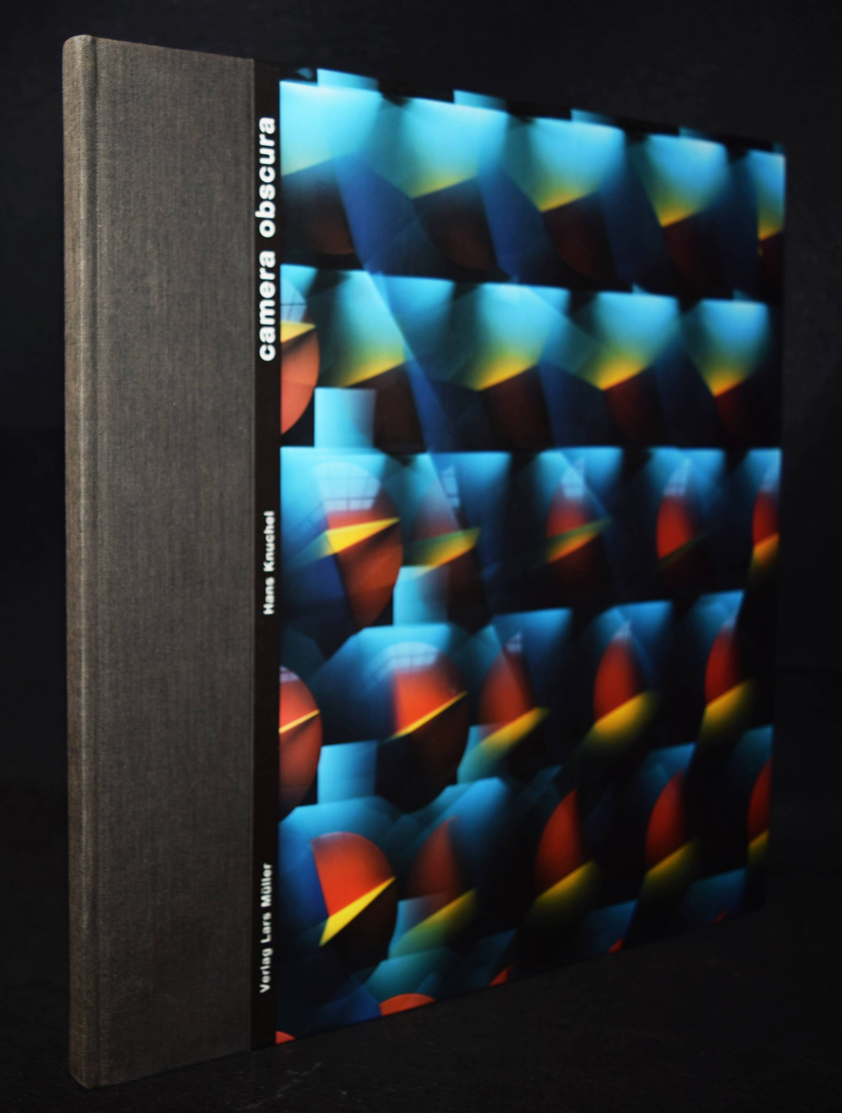 Knuchel, Hans. Camera obscura. Baden, Müller 1992. 4°. 70 S. mit ganzs. Abb. Farbig illustr. OHln. Erste Ausgabe. – Der Schweizer Fotograf, Zeichner und Bildhauer H. Knuchel (geb. 1945 in Lima) bezeichnet sich auch als „Bildingenieur“. Er war 1988-1994 Dozent an der Schule für Gestaltung Zürich und 1987-2001 Dozent für Bildnerisches Gestalten, Abt. Architektur an der FH Aargau. – Sehr gutes Exemplar.