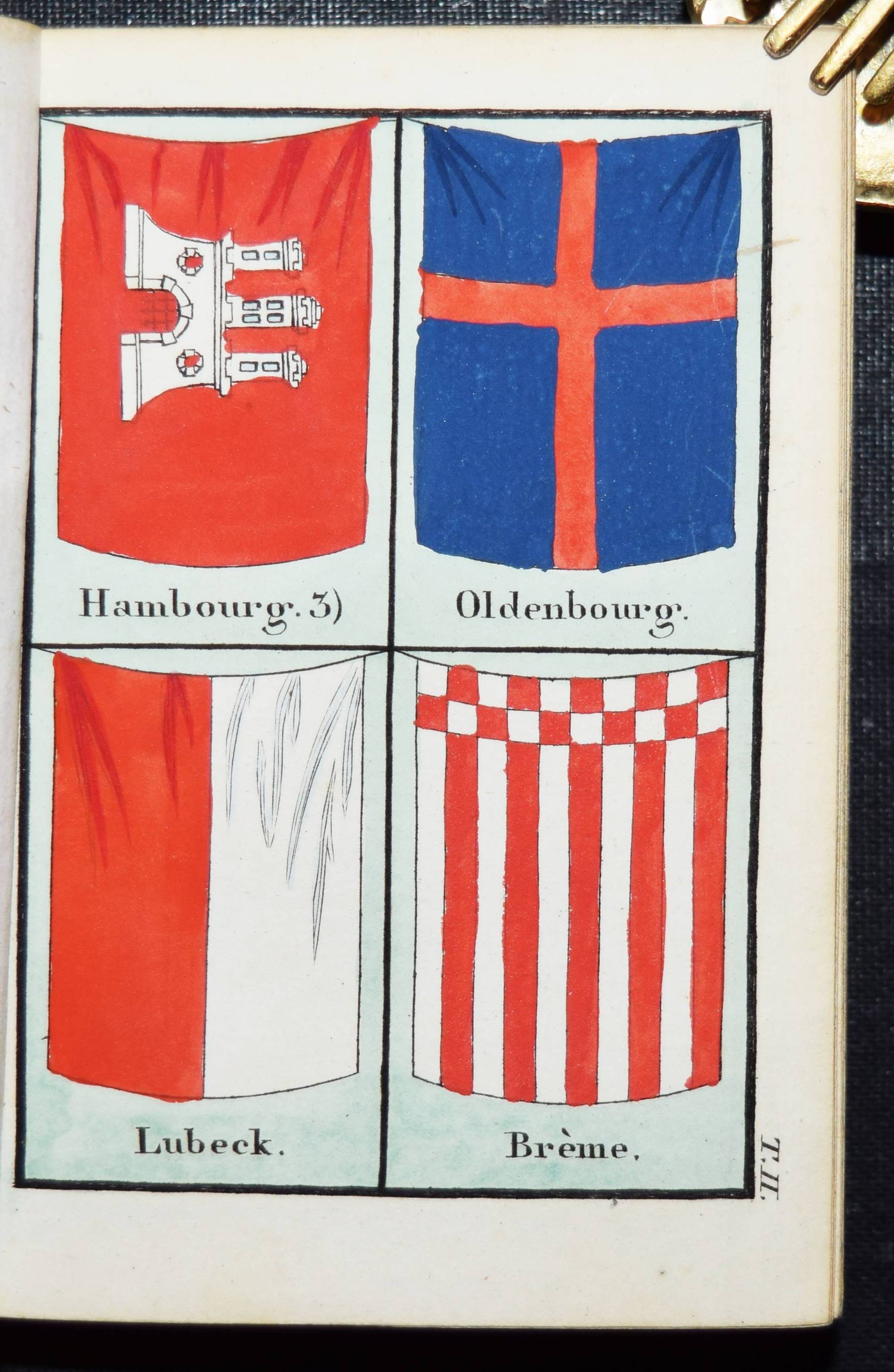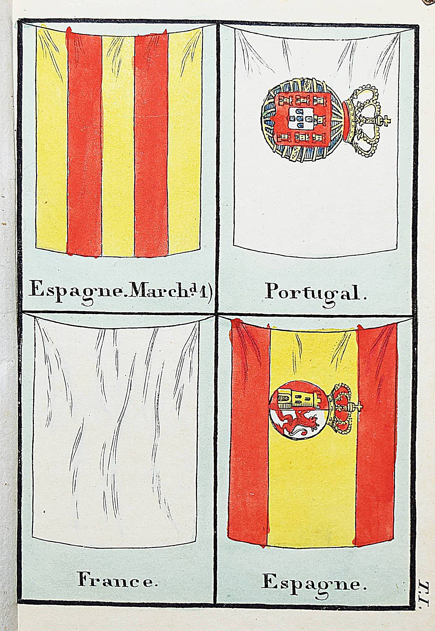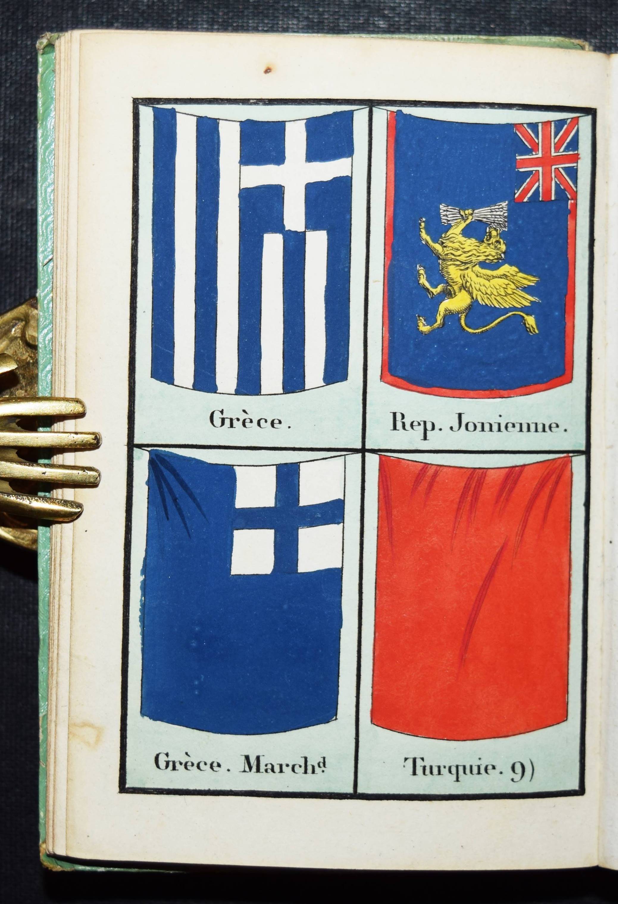 Almanach – Perthes, Justus (Hrsg.). Almanac de Gotha pour l’année 1826. Soixante-troissième année. 2 Teile in 1 Band. Gotha, Perthes 1826. Kl.-8°. Gestoch. Frontispiz gestoch. Titel, IV, [24] Bl., 204 S.; 173, (3) S. mit 2 gestoch. Portraits u. 8 handkol. Flaggen-Tafeln mit jeweils 4 Abb. OPbd. mit Goldschnitt. Köhring S. 7 u. 58 f. – 63. Jahrgang des 1764 bis 1860 erschienenen berühmten Almanachs. – Der Almanach erschien auch mit dem deutschen Titel als „Gothaischer Hof-Kalender zum Nutzen und Vergnügen eingericht…“ – Vorliegender Jahrgang mit dem „Annuaire diplomatique“ als zweiten Teil. – Deckel etwas fleckig, gutes Exemplar.