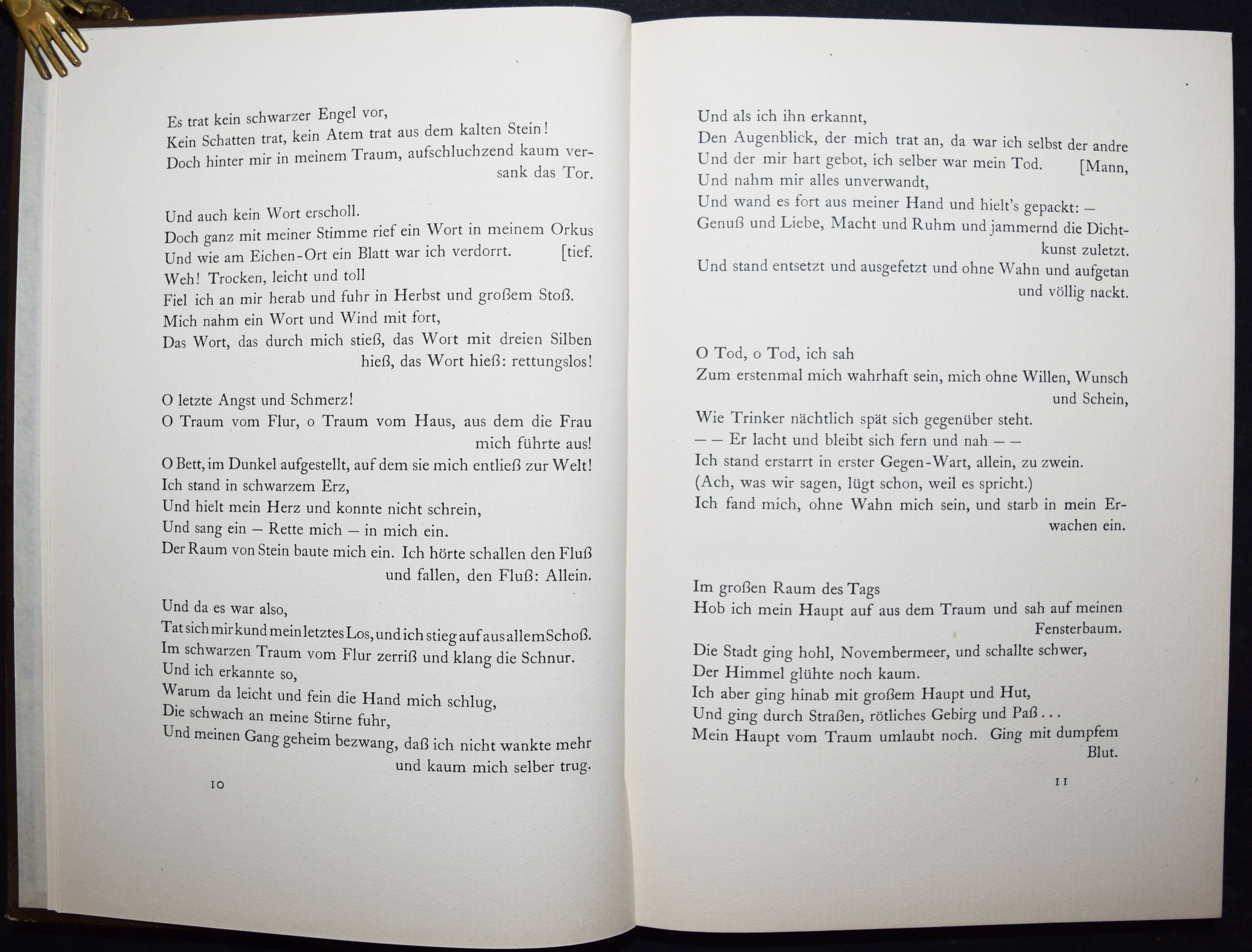 Werfel, Franz. Der Gerichtstag. In fünf Büchern. Leipzig, Wolff 1919. Gr.-8°. 308 S., 2 Bl. OLdr. mit goldgepr. Rückenschild, Rückenverg. u. Deckelfiletten u. Kopfgoldschnitt. Raabe 330.8. W.-G.² 12. – Erste Ausgabe. – Einband etwas berieben, gutes Exemplar der schönen Ganzlederausgabe.