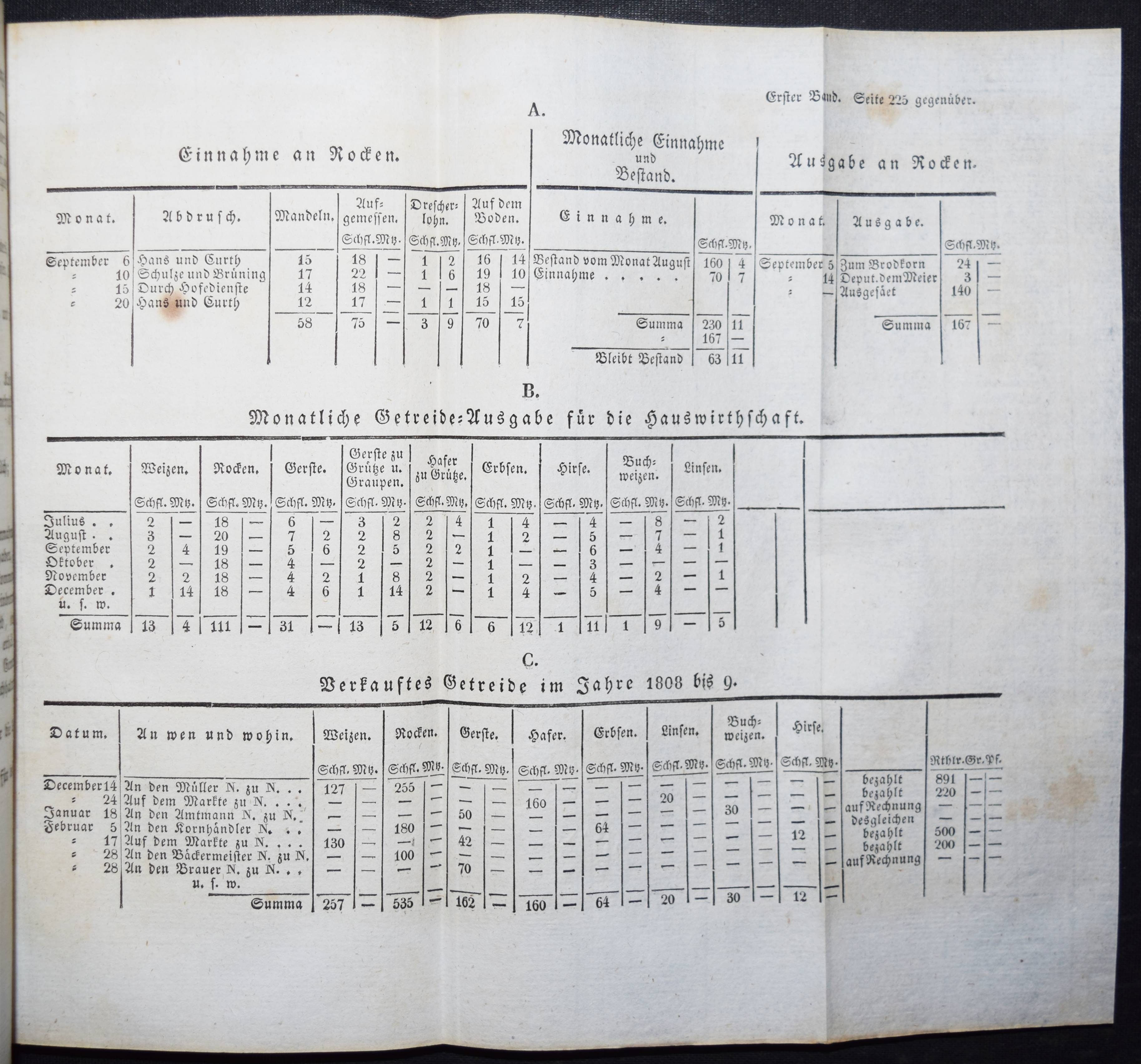 Thaer, A(lbrecht Daniel). Grundsätze der rationellen Landwirthschaft. Erster Band (von 4). Neue Auflage. Berlin, Reimer 1837. 8°. XVI, 392 S. mit einigen (4 gefalt.) Tabellen. Marm. Pbd. d. Zt. mit goldgepr. Rückenschild. Vgl. Humpert 1612. – Hauptwerk des Gründers der deutschen Agrarwissenschaft, „das noch heute als bezeichnend für den Standpunkt der Thaer’schen Schule gelten kann“ (ADB XXXVII, 636 f.). – N.a.V., stellenweise etwas stockfl., gutes dekorativ gebundenes Exemplar.