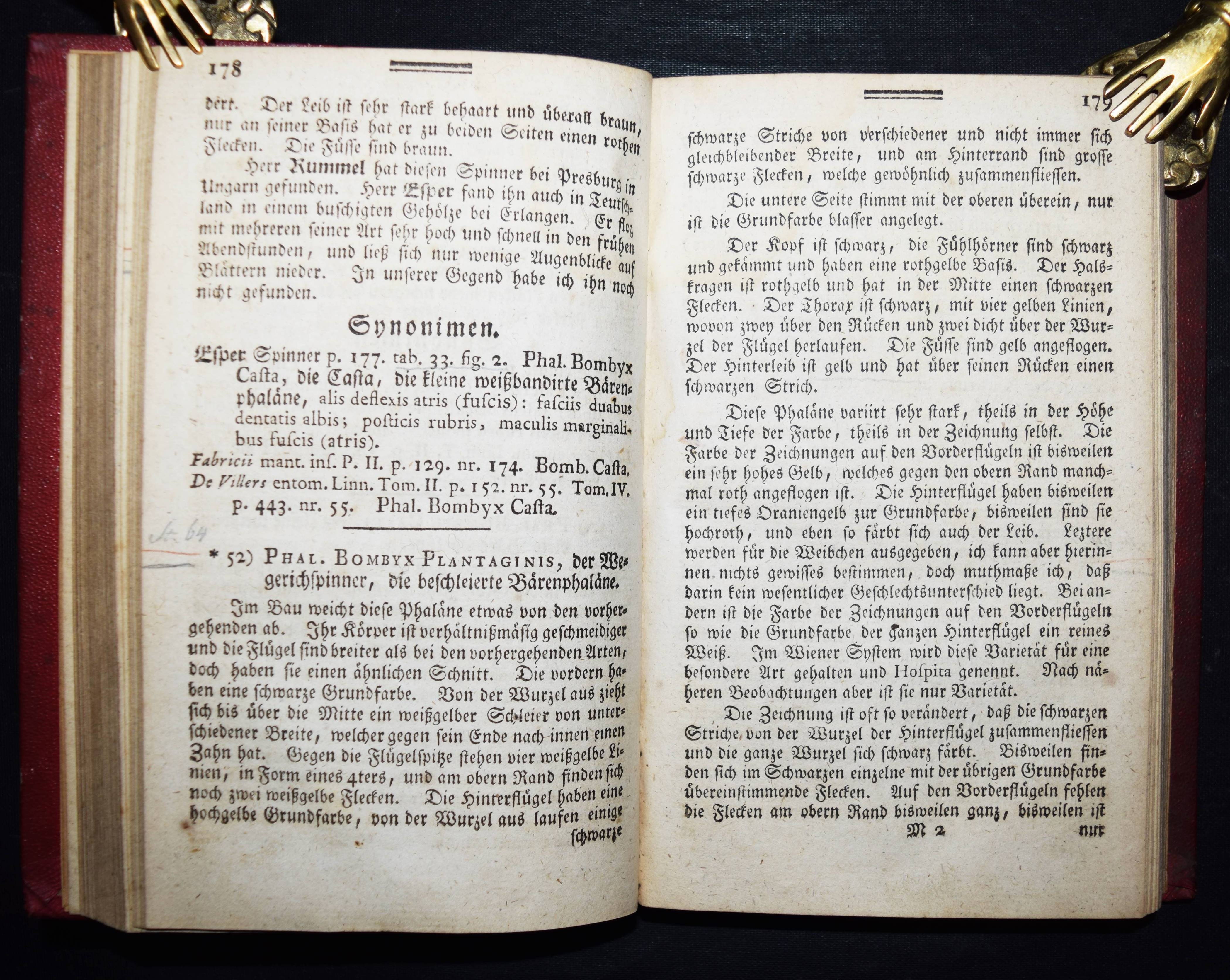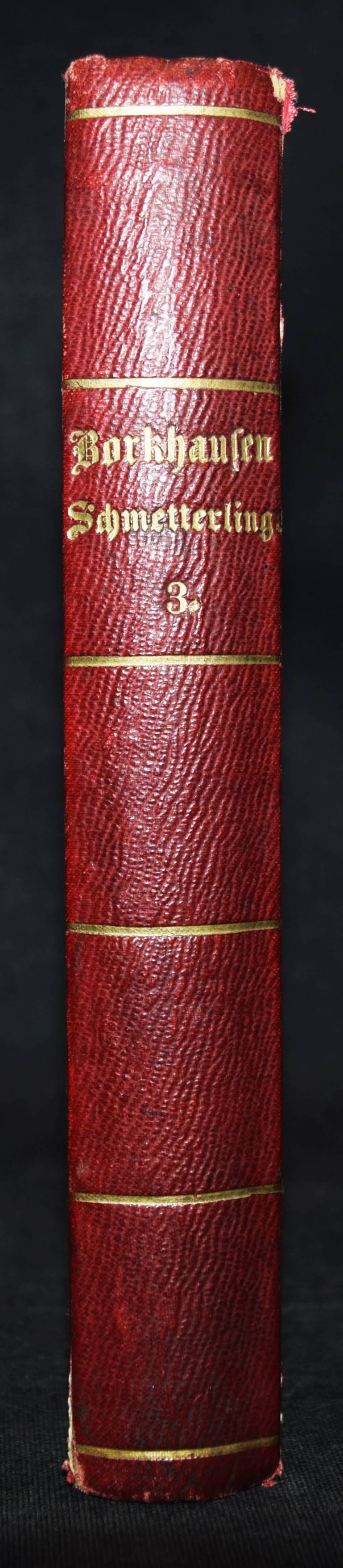 Borkhausen, Moritz Balthasar. Naturgeschichte der europäischen Schmetterlinge nach systematischer Ordnung. Dritter Theil (von 5): der Phalänen erste Horde, die Spinner. Frankfurt, Varrentrapp und Wenner 1790. 8°. [6] Bl., 476 S. Hln. d. 19. Jahrhunderts mit goldgepr. Rückentitel u. Linienverg. Hagen I, 73. Horn/Schenkling 2004. – Erste Ausgabe. – Der Verfasser stammte aus Gießen und starb als bekannter Forstrat in Darmstadt. – Stellenweise etwas fleckig und mit zeitgenöss. Anmerkungen und Anstreichungen, gutes Exemplar.