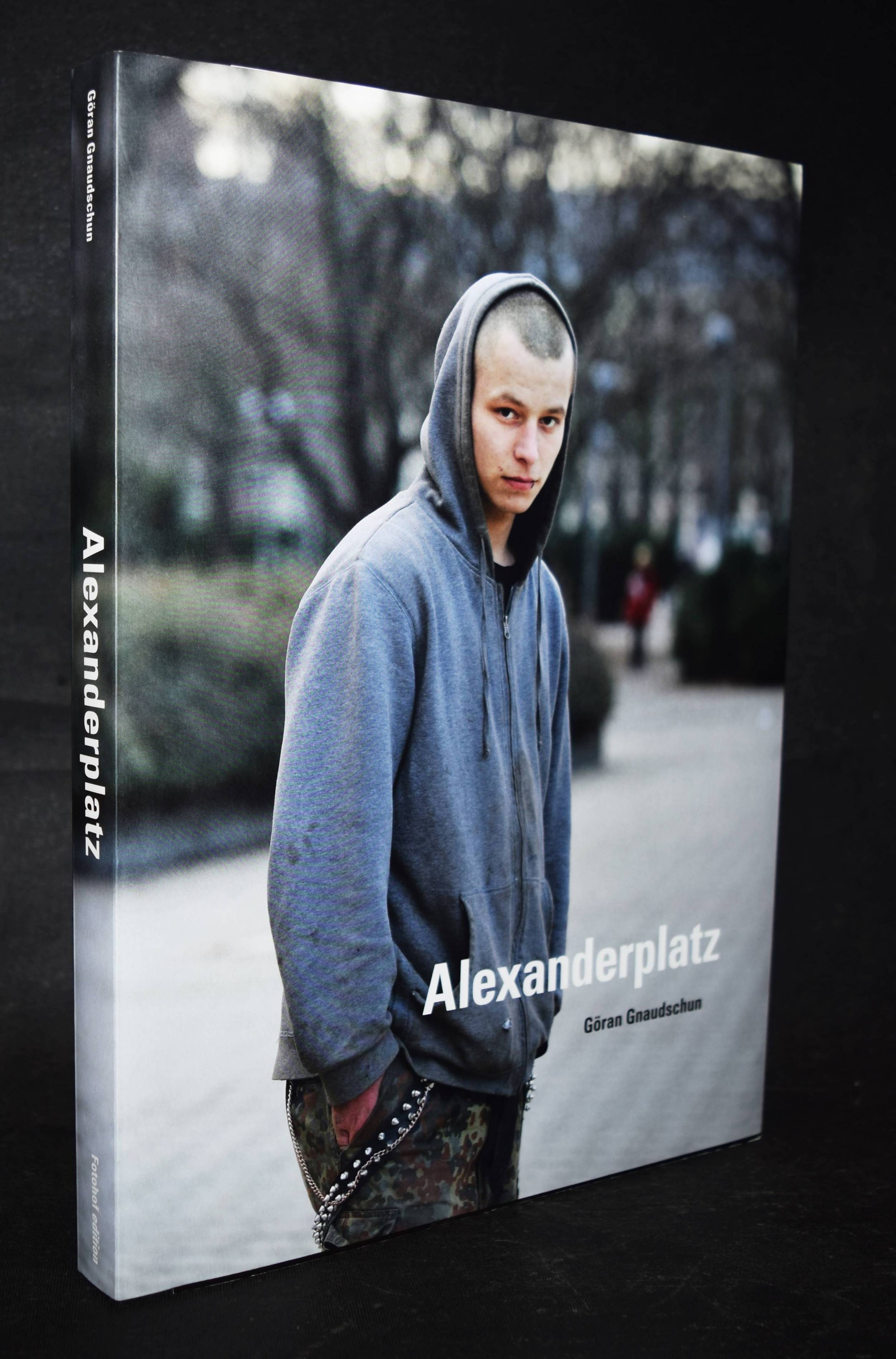 | Gnaudschun, Göran. Alexanderplatz. [Katalogbuch zur Ausstellung Alexanderplatz von Göran Gnaudschun im Ausstellungsraum bautzner69 in Dresden vom 14.12.2013 bis 15.02.2014. Folgeausstellung: Haus am Lützowplatz in Berlin vom 21.02. bis 30.03.2014]. Salzburg, Fotohofedition 2014. 4°. 216 S. mit zahlr. farb. Abb. u. 1 sign. u. num. Orig.-Pigmentdruck auf Barytpapier. Illustr. OKart. mit Leinenrücken u. farbig illustr. OU. Eines von 120 num. Exemplaren der Vorzugsausgabe (″Unterstützungsedition“) auf der letzten Seite von G. Gnaudschun signiert und num. und mit einer nicht im Buch enthaltenen rückseitig signierten und num. Orig.-Pigmentdruck auf Barytpapier (junge Frau mit 3 Hunden auf dem Berliner Alexanderplatz). – Punks, Ausreißer, Arbeitslose: Göran Gnaudschun traf vier Jahre lang Menschen, die auf dem Berliner Alexanderplatz herumlungern, machte Fotos – und erzählt so von den Außenseitern im Herzen der Hauptstadt. – „Göran Gnaudschun gehört zu den einfühlsamsten Portraitisten des Landes. Portrait heißt bei ihm, dass es nicht um gutes Aussehen, sondern um die Persönlichkeit geht, um Würde. Seine Spezialität sind Heranwachsende. Dabei spielt es keine Rolle, ob er sich Punks, Straßenkindern oder braven Bürgern widmet“ (T. Wiegand, kasseler fotobuchblog). – Der Potsdamer Fotograf G. Gnaudschun (geb. 1971) studierte künstlerische Fotografie und bildende Kunst an der HCB Leipzig bei Timm Rautert und hat inzwischen 10 Fotobücher veröffentlicht. – Tadellos.
