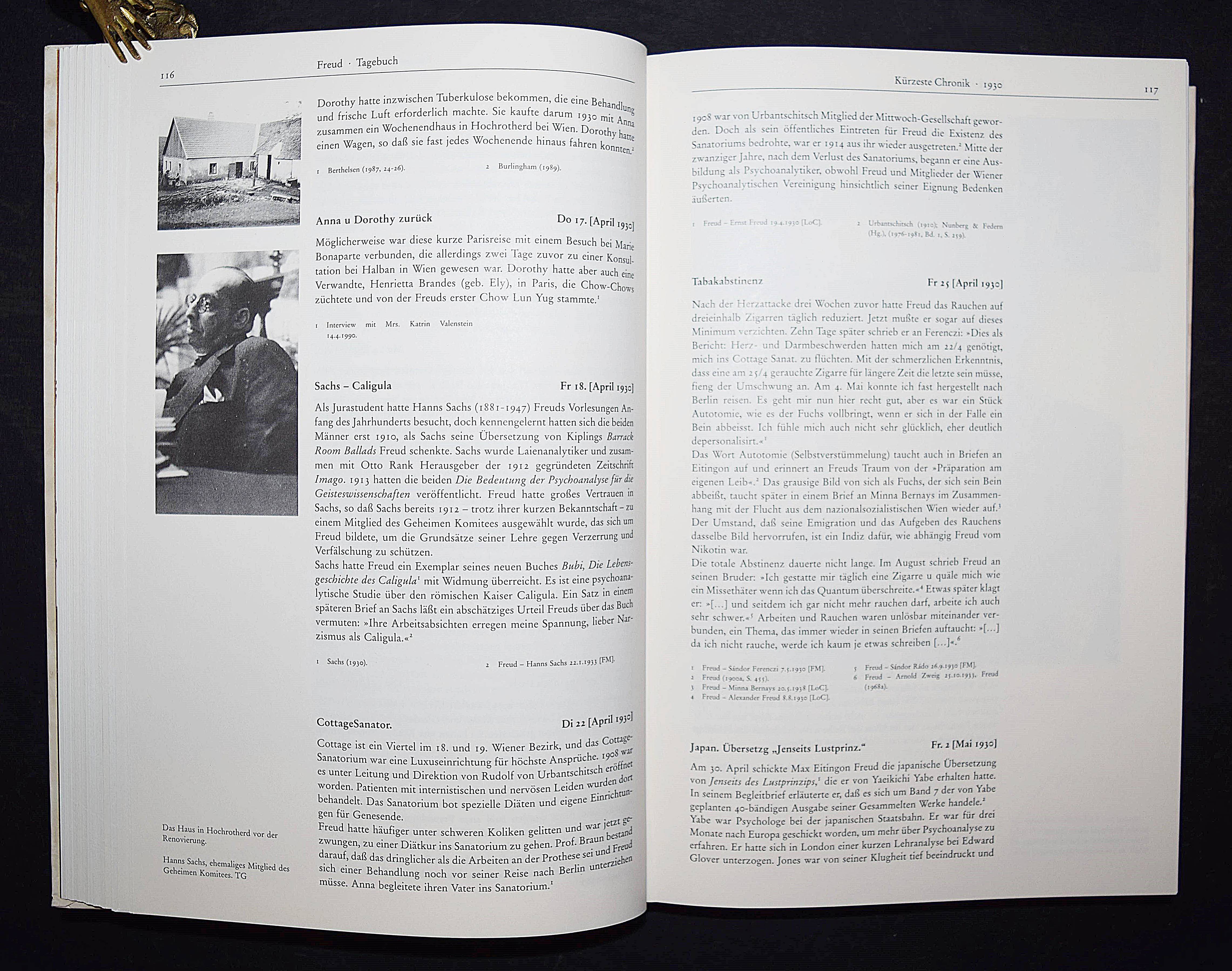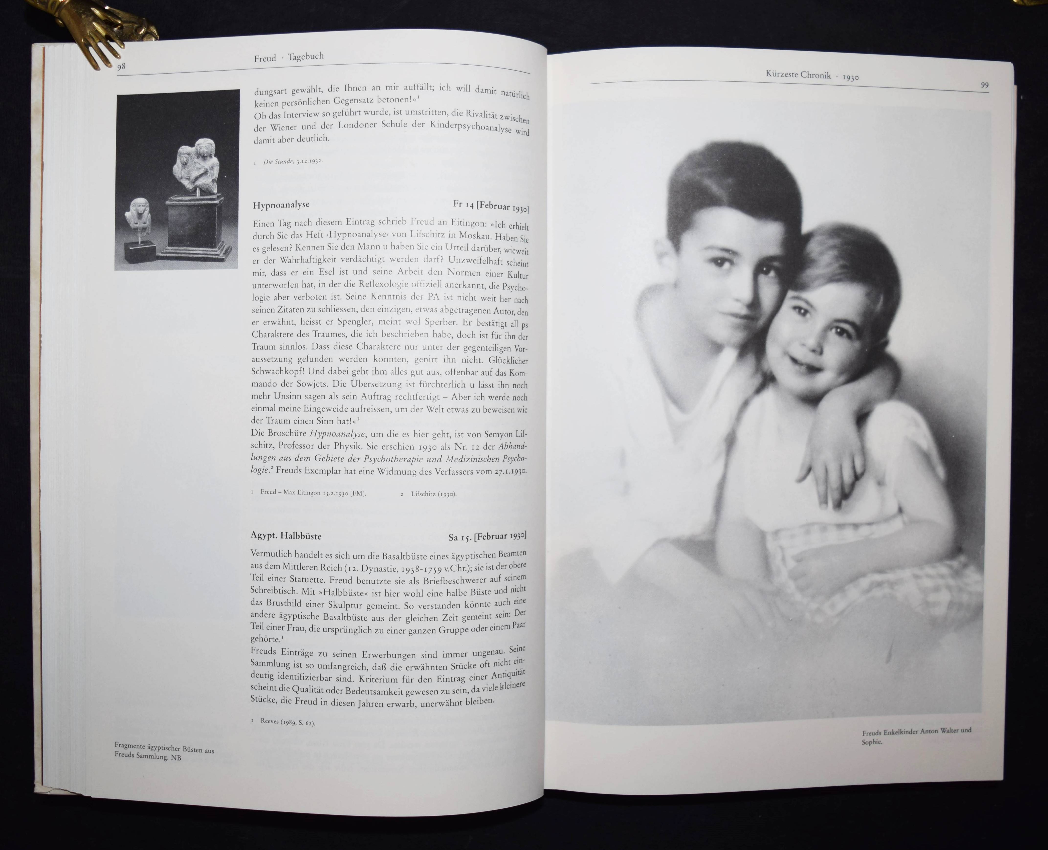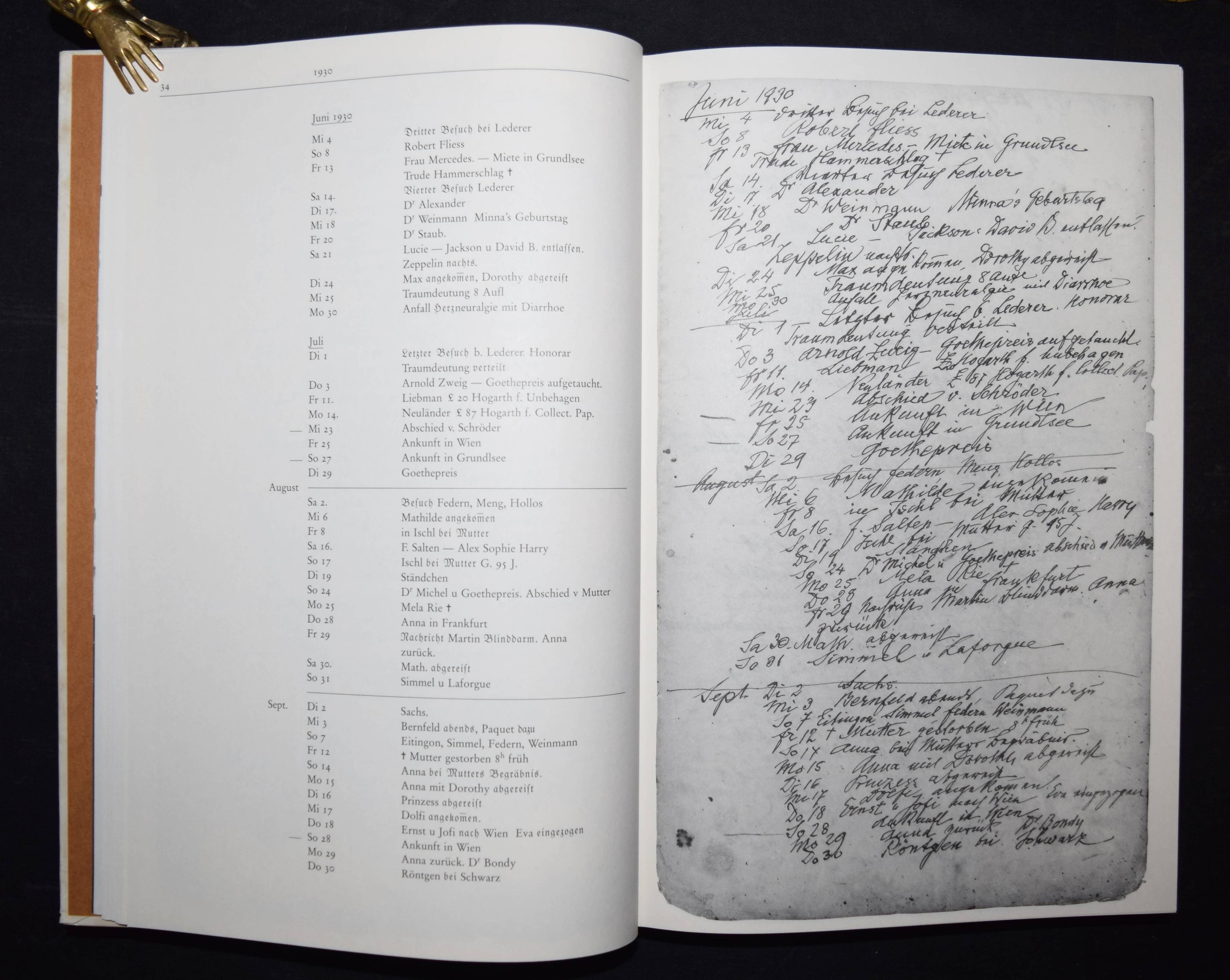 Freud, Sigmund. Tagebuch 1929 – 1939. Kürzeste Chronik. Übersetzt ins Deutsche von Christfried Tögel. Redaktion: Michael Giefer, Beate Schuh, Christine Buchheit. Gestaltung: Michel Leiner. Basel, Frankfurt a. M., Stroemfeld / Roter Stern 1996. 4°. 509 S. mit zahlr. Abb. OPbd. Rücken am Fuß geringf. bestoßen, gutes Exemplar.