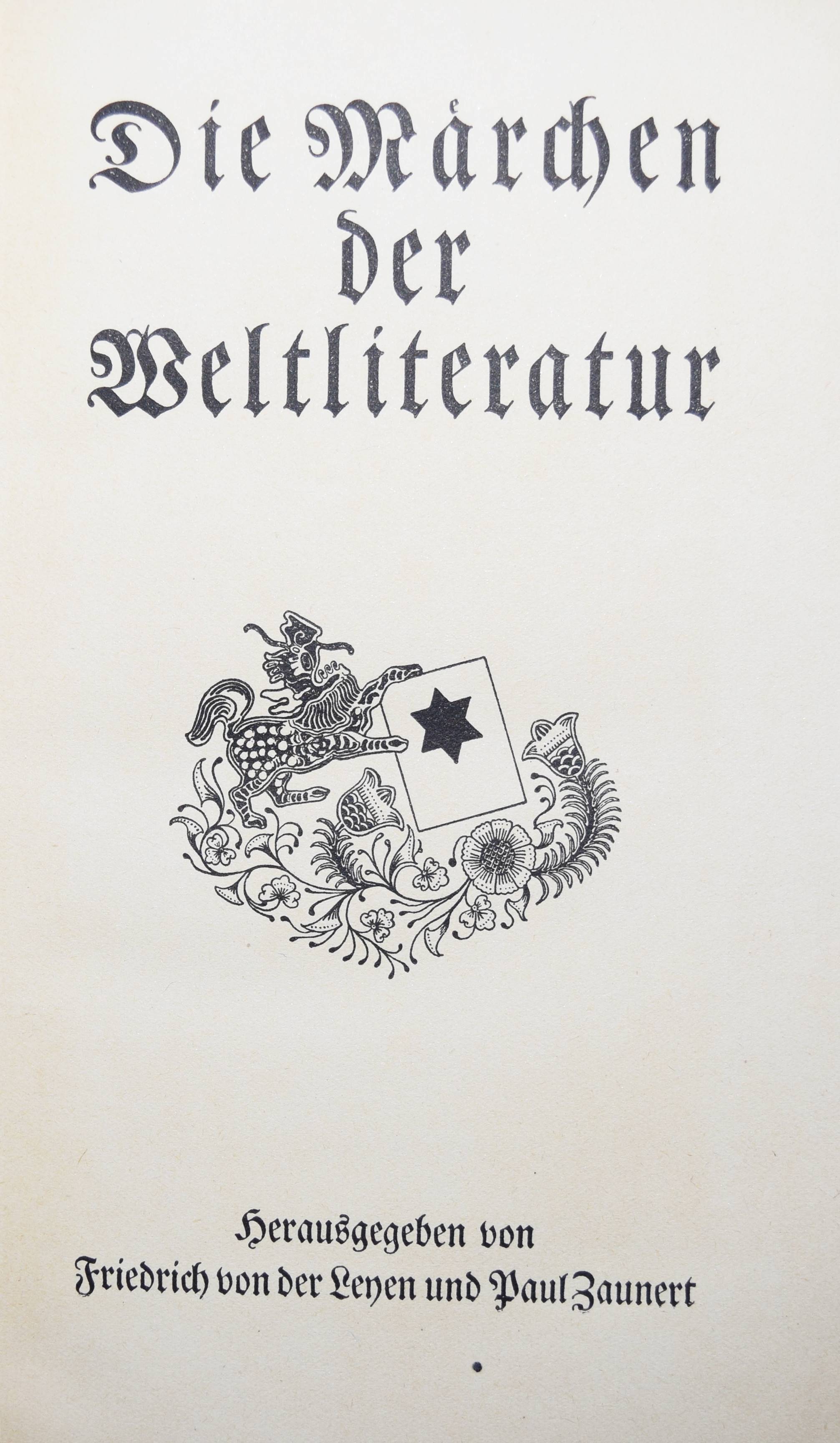 Hambruch, Paul (Hrsg.). Malaiische Märchen. Aus Madagaskar und Insulinde. Jena, E. Diederichs 1922. 8°. IV, 330 S., 1 Bl. mit Frontispiz. Hellbrauner OLdr. mit goldgepr. Rückentitel, Rücken- u. Deckelfiletten, blindgepr. Deckelvignette u. Kopfgoldschnitt. (Die Märchen der Weltliteratur). Erste Ausgabe. – Buchausstattung: F. H. Ehmcke. – Rücken etwas berieben, gutes Exemplar der schönen Ganzleder-Ausgabe.