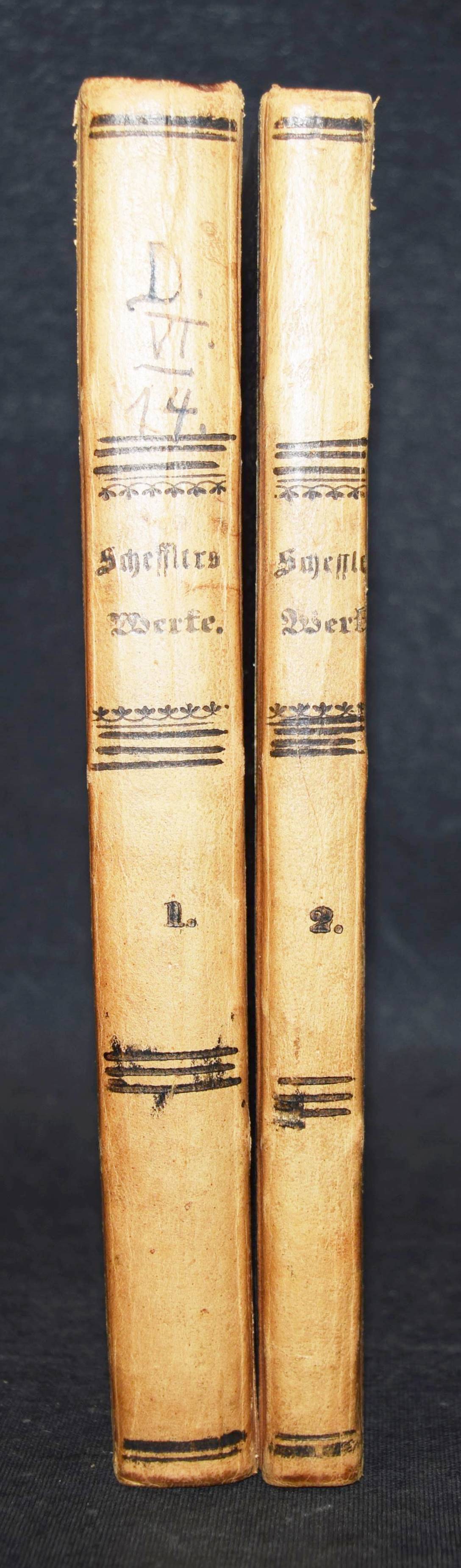 Scheffler, Johann (Angelus Silesius). Sämmtliche poetische Werke. Herausgegeben von D(avid) A(ugust) Rosenthal. 2 Bände. Regensburg, Manz 1862. 8°. XXXVI, 347 S.; 246 S., 1 Bl. mit gestoch. Porträt des Verfassers. Hldr. d. Zt. mit schwarzgepr. Rückentiteln. Goed. III, 198, 7. Nicht bei W.-G.² S. 21 f. – Erste Gesamtausgabe. – Nur stellenweise etwas stockfl., sehr gutes Exemplar.