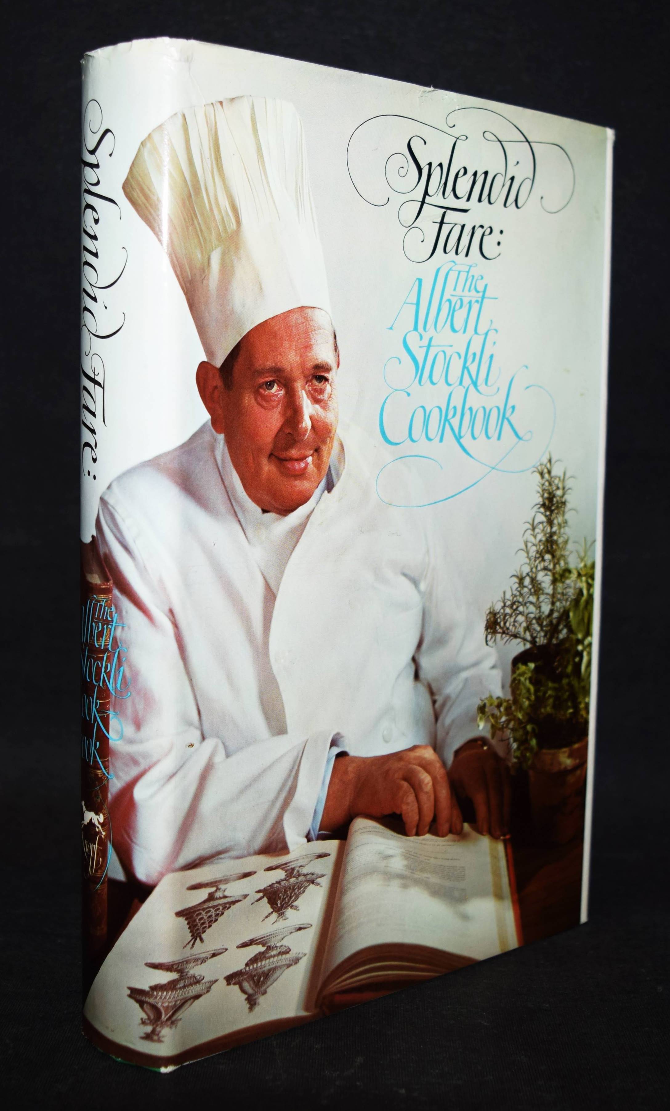 Stockli, Albert. Splendid fare. The Albert Stockli cookbook. Drawings by Bill Goldsmith. New York, Albert A. Knopf 1970. 4°. XVII, 373 S. mit zahlr. Illustrationen. Illustr. OPbd. mit farbig illustr. OU. Erste Ausgabe. – Mit eigenh. Widmung von A. Stockli. – Der Schweizer A. Stockli (1918-1972) war Chef-Koch des „Four Seasons“ in New York. – Sehr gutes Exemplar.