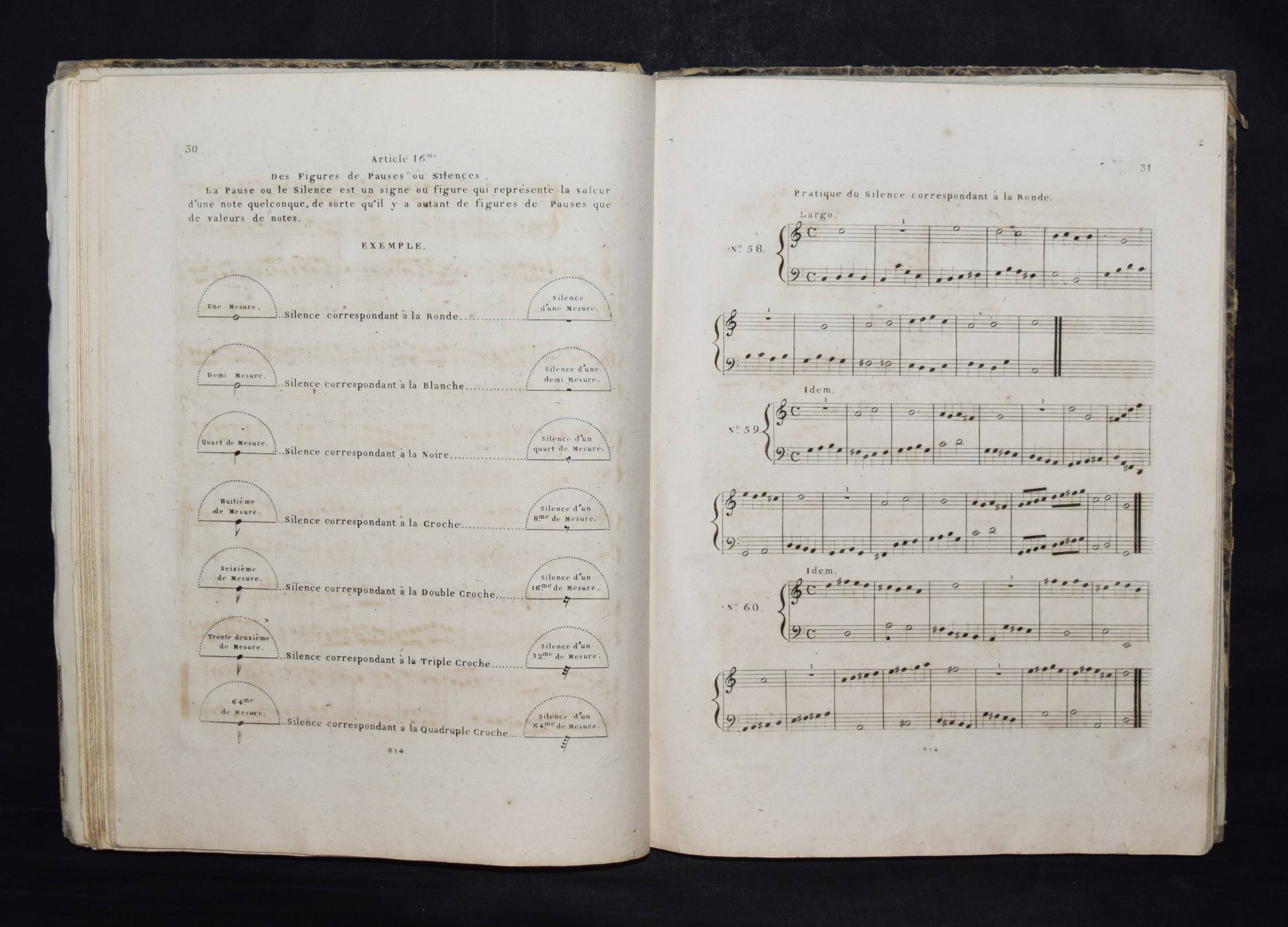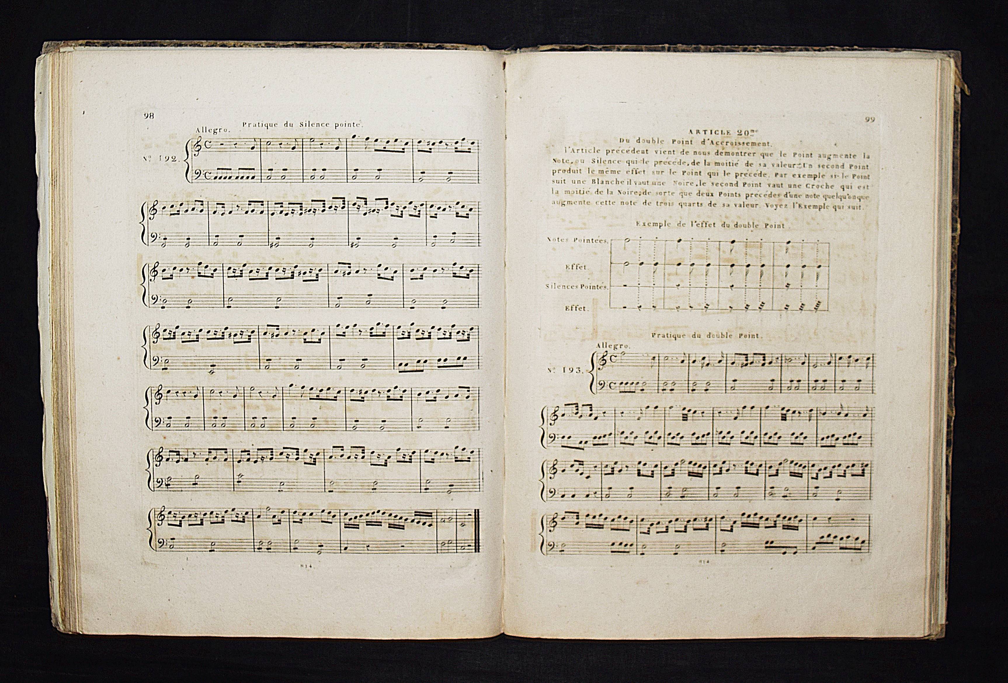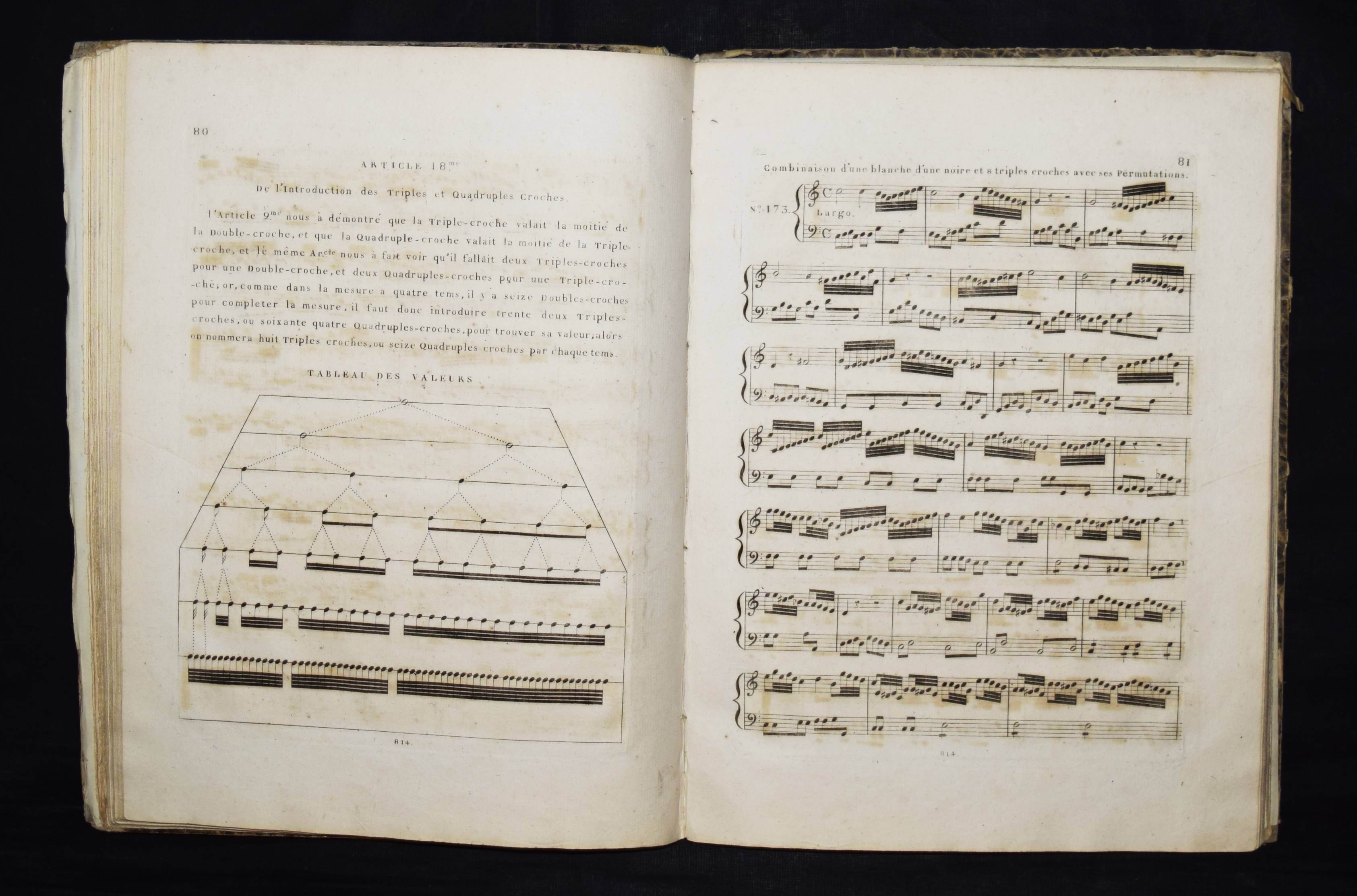 Catrufo, G(ioseffo). Nouvelle Méthode de Solfège Progressif. Applicable à un, ou plusieurs Elèves à la fois. Composée et dédiée à Monsieur A. Minoja. Première Partie. Paris, Pacini o. J. (1820). Gr.-4°. Gestoch. Titel, 160 S. mit gestoch. Musiknoten. Hprgt. d. Zt. (Platten-Nr. 814). Fétis II, 219. – Erste Ausgabe des ersten Bandes der Gesangsschule des ital. Sängers und Opernkomponisten G. Catrufo (1771-1851), der in Paris auch als Gesangslehrer sehr gefragt war. – Kapital etwas eingerissen, Fuß mit Fehlstelle, Deckel etwas berieben, Vorsätze gelockert, stellenweise etwas gebräunt und stockfleckig.