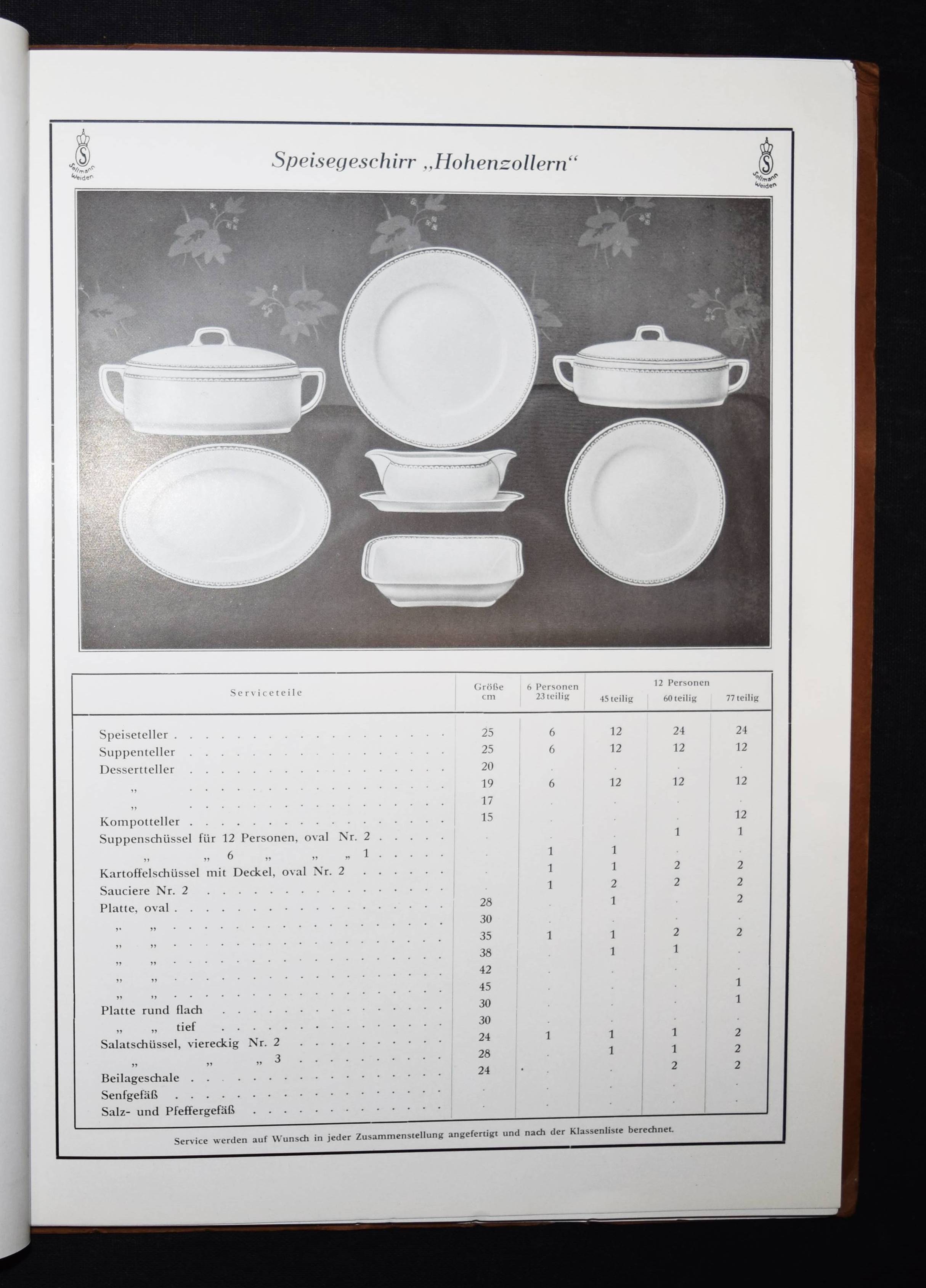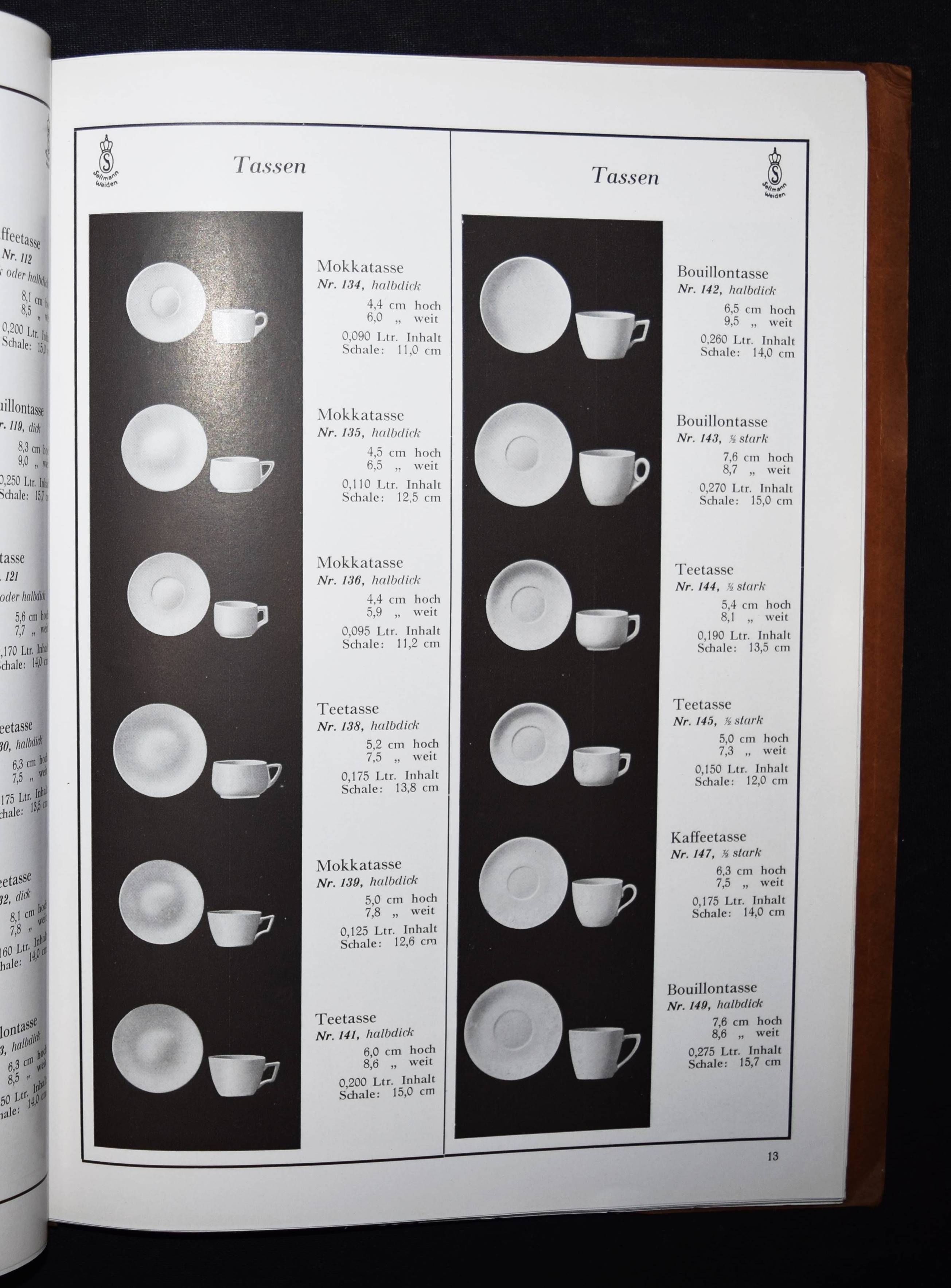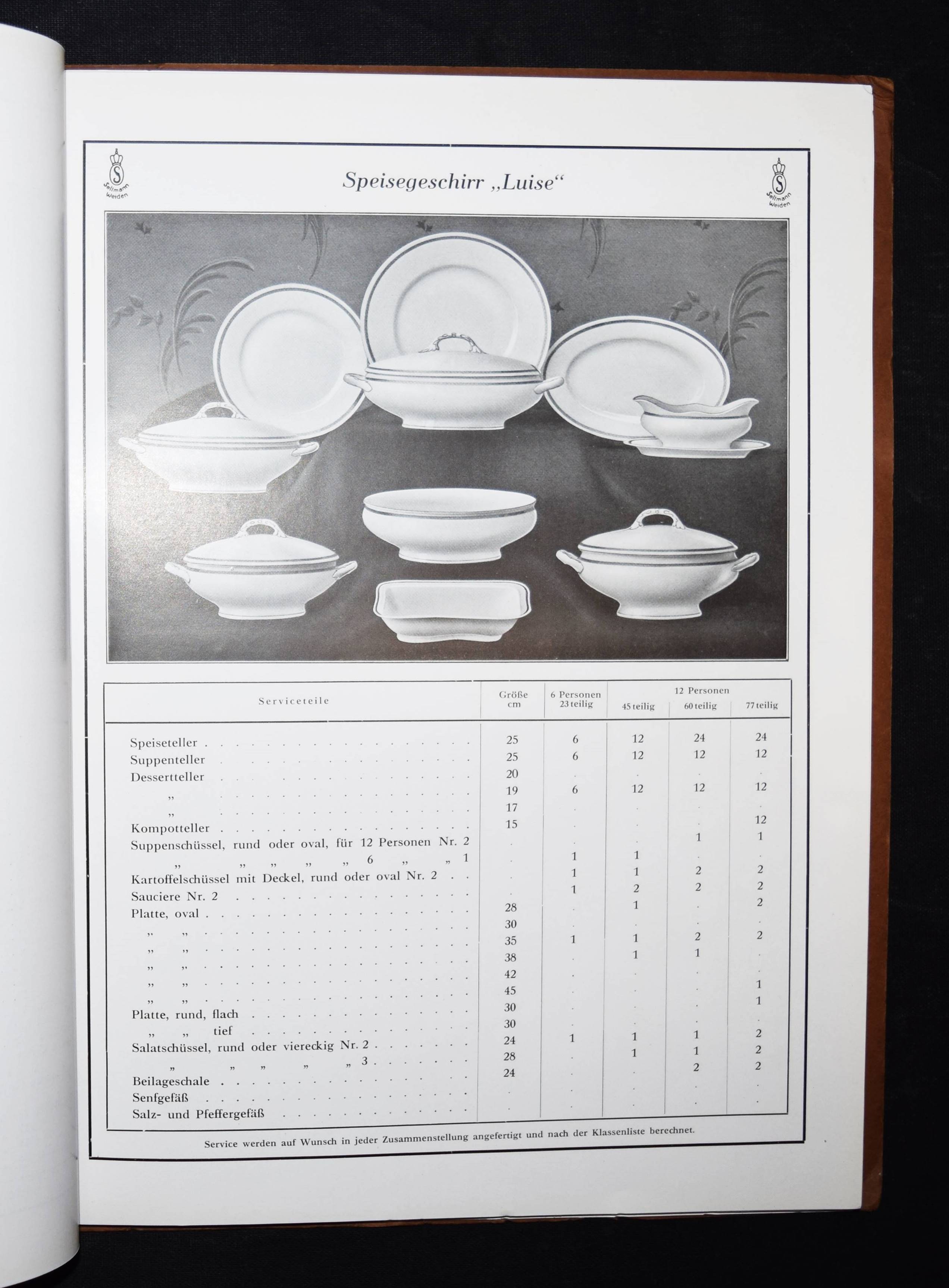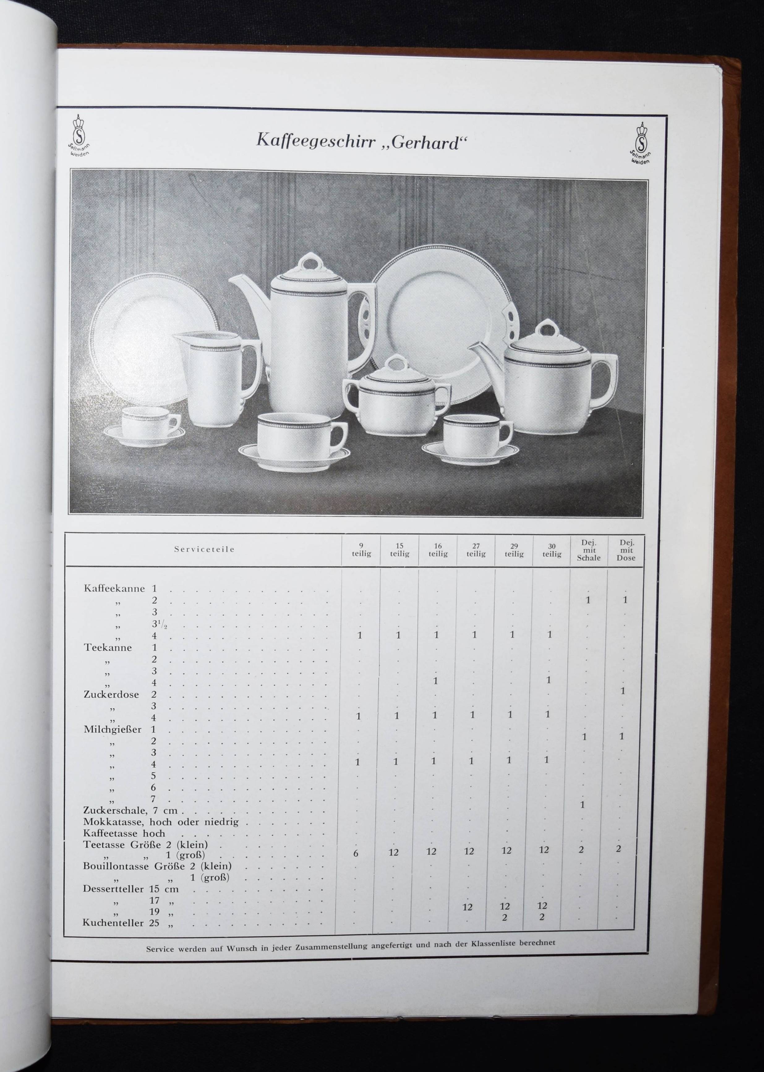 (Seltmann, Wilhelm, Hrsg.). Kaffee-, Tafel- und Teegeschirre. (Katalog der) Porzellanfabrik Christian Seltmann Weiden. Weiden, Selbstverlag o. J. (um 1925). 4°. [12] Bl., 16 S. mit zahlr. Abb. u. 14 farblithogr. Tafeln. Illustr. OKart. Schön ausgestatteter Verkaufskatalog der bekannten oberfränkischen Porzellan-Manufaktur. – „Die „Porzellanfabriken Christian Seltmann“ wurden im Jahr 1910 von Christian Wilhelm Seltmann (geb. 1870) gegründet. Er lernte zunächst den Beruf des Porzellandrehers und modellierte und bemalte in seiner Freizeit Porzellan. Die Firma Seltmann Weiden begann ihre Produktion für Gebrauchs- und Luxusporzellan zunächst mit drei Rundöfen, die 1913 um zwei vermehrt wurden“ (Wikipedia). – Sehr gutes Exemplar.