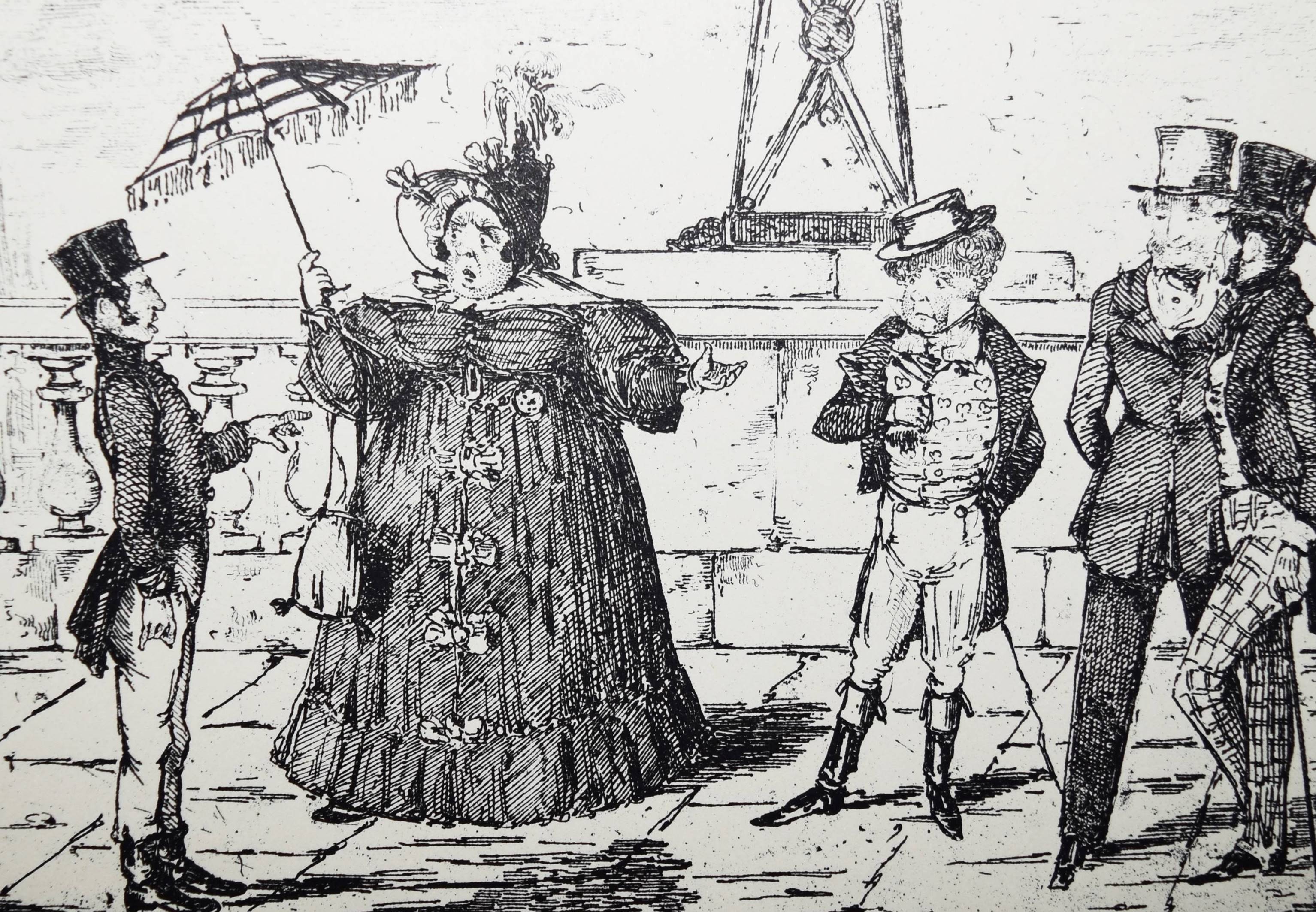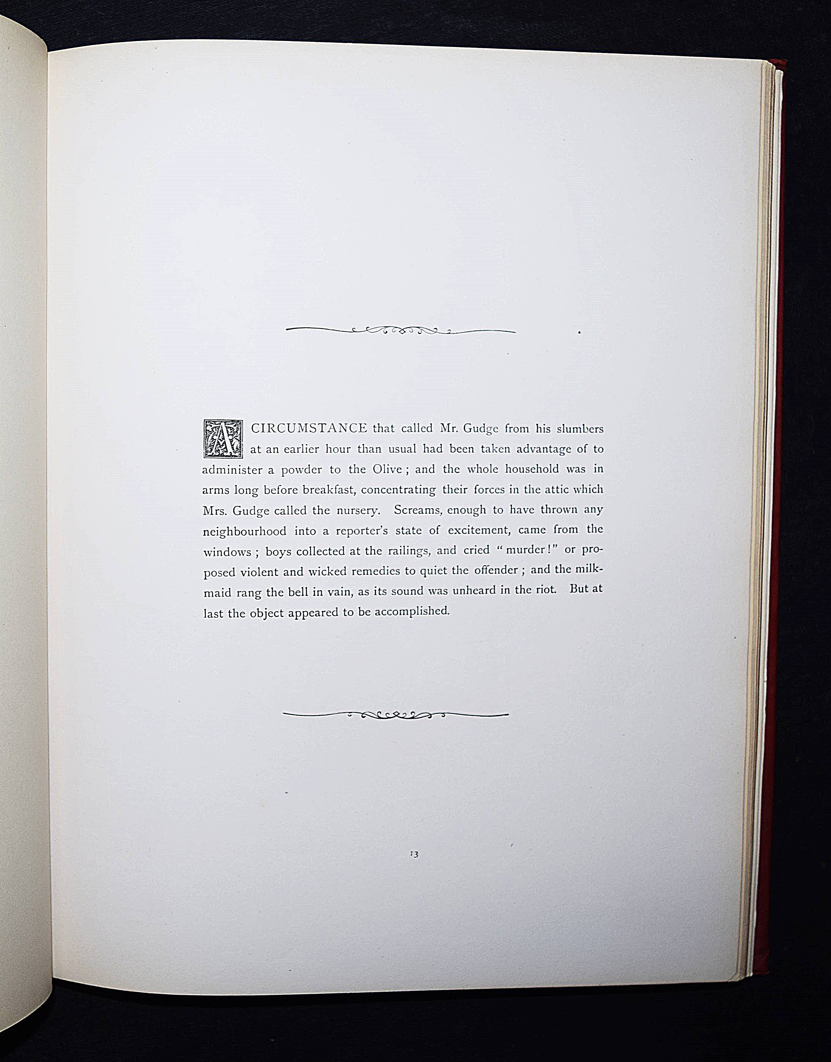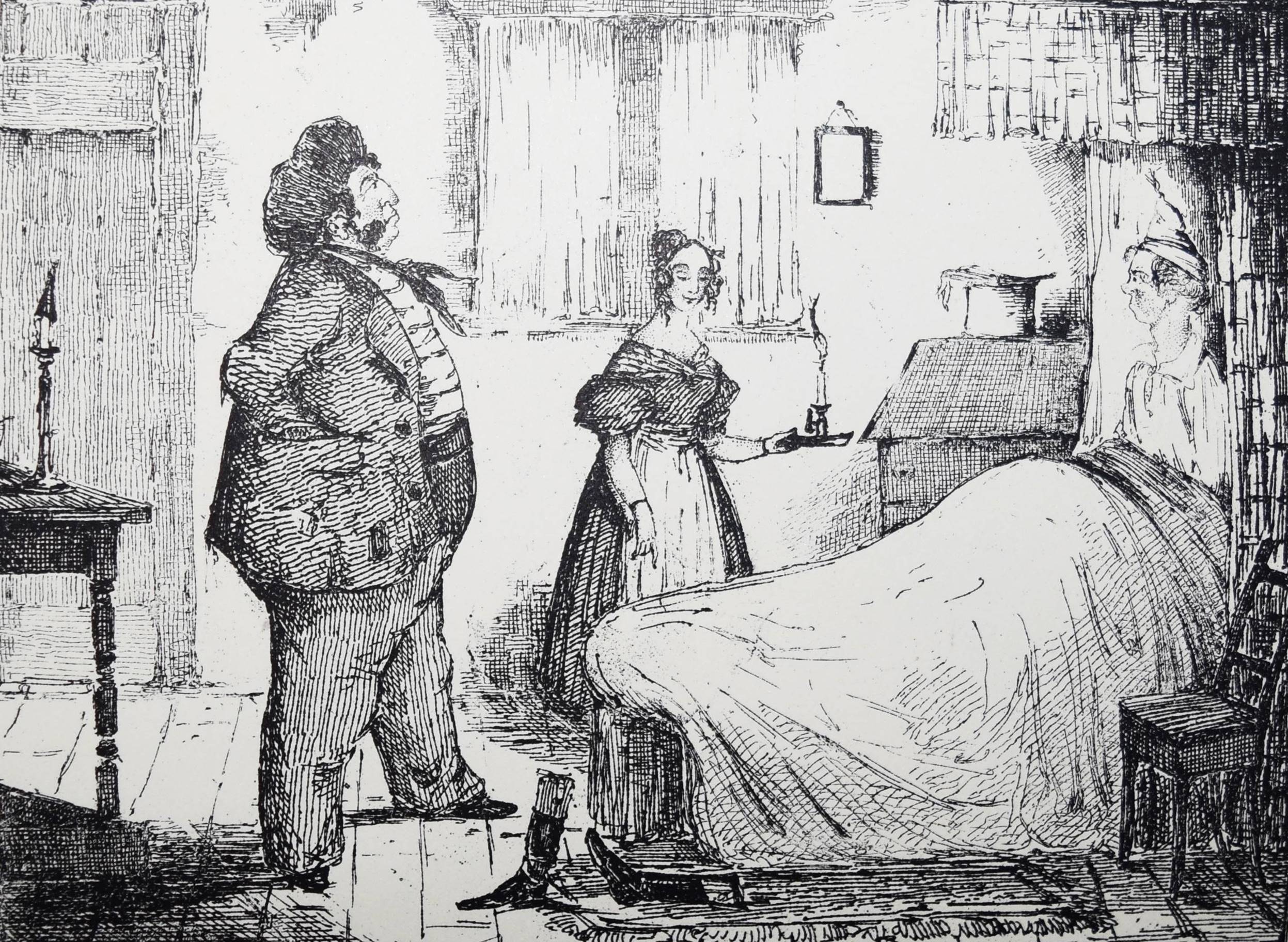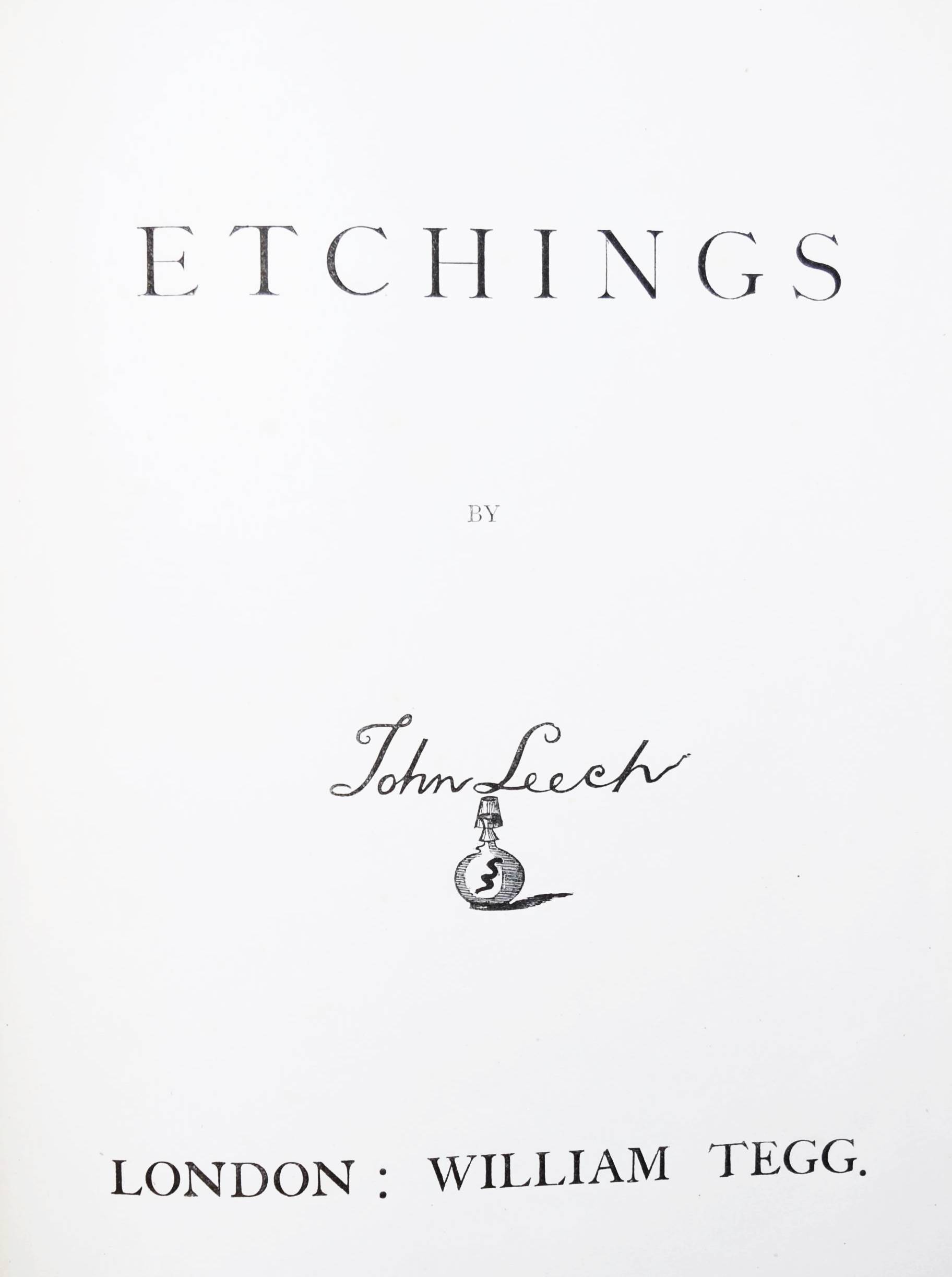 Leech, John. Etchings. London, William Tegg o. J. (1878). 4°. Titel, 53 S. (Text) u. 53 lithogr. Tafeln. Weinroter blindgepr. OLn. mit goldgepr. Deckeltitel u. Goldschnitt. Erste Ausgabe. – Der engl. Karikaturist J. Leech (1817-1864) war für seine politischen und sozialkritischen Karikaturen berühmt, viele seiner Arbeiten erschienen zuerst in der Zeitschrift „Punch“. – Einband leicht angestaubt, 1 Textblatt und eine Lage lose, sonst sehr gutes sauberes Exemplar.