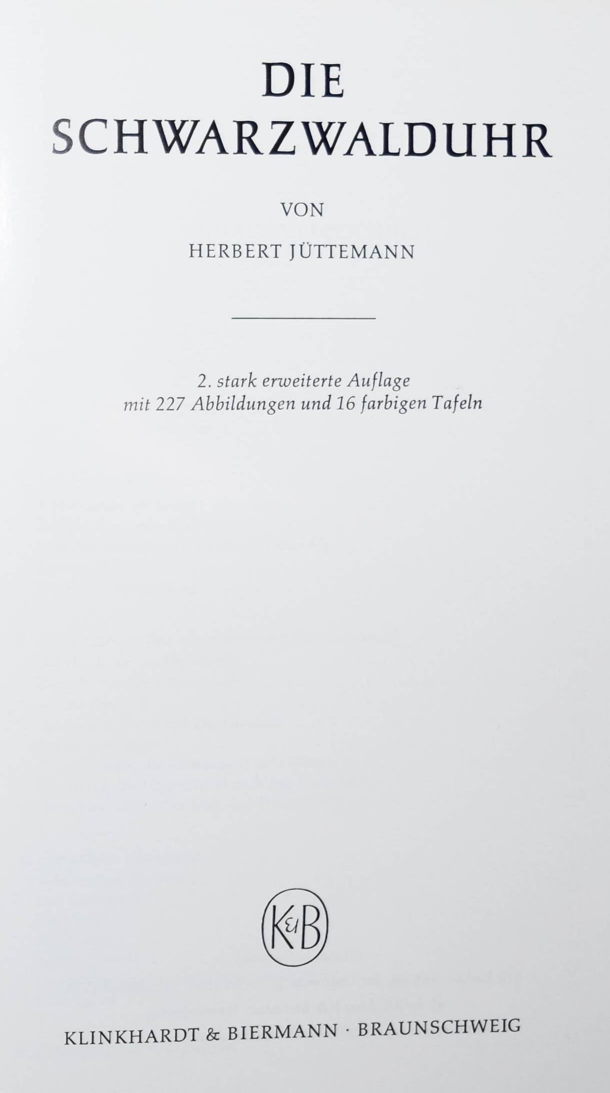 Jüttemann, Herbert. Die Schwarzwalduhr. 2., stark erweiterte Aufl. Braunschweig, Klinkhardt und Biermann 1978. 4°. IX, 272 S. mit 227 Abb. u. 16 farb. Tafeln. OLn. mit farbig illustr. OU. Schutzumachlag am Kapital geringf. beschädigt, sehr gutes Exemplar.