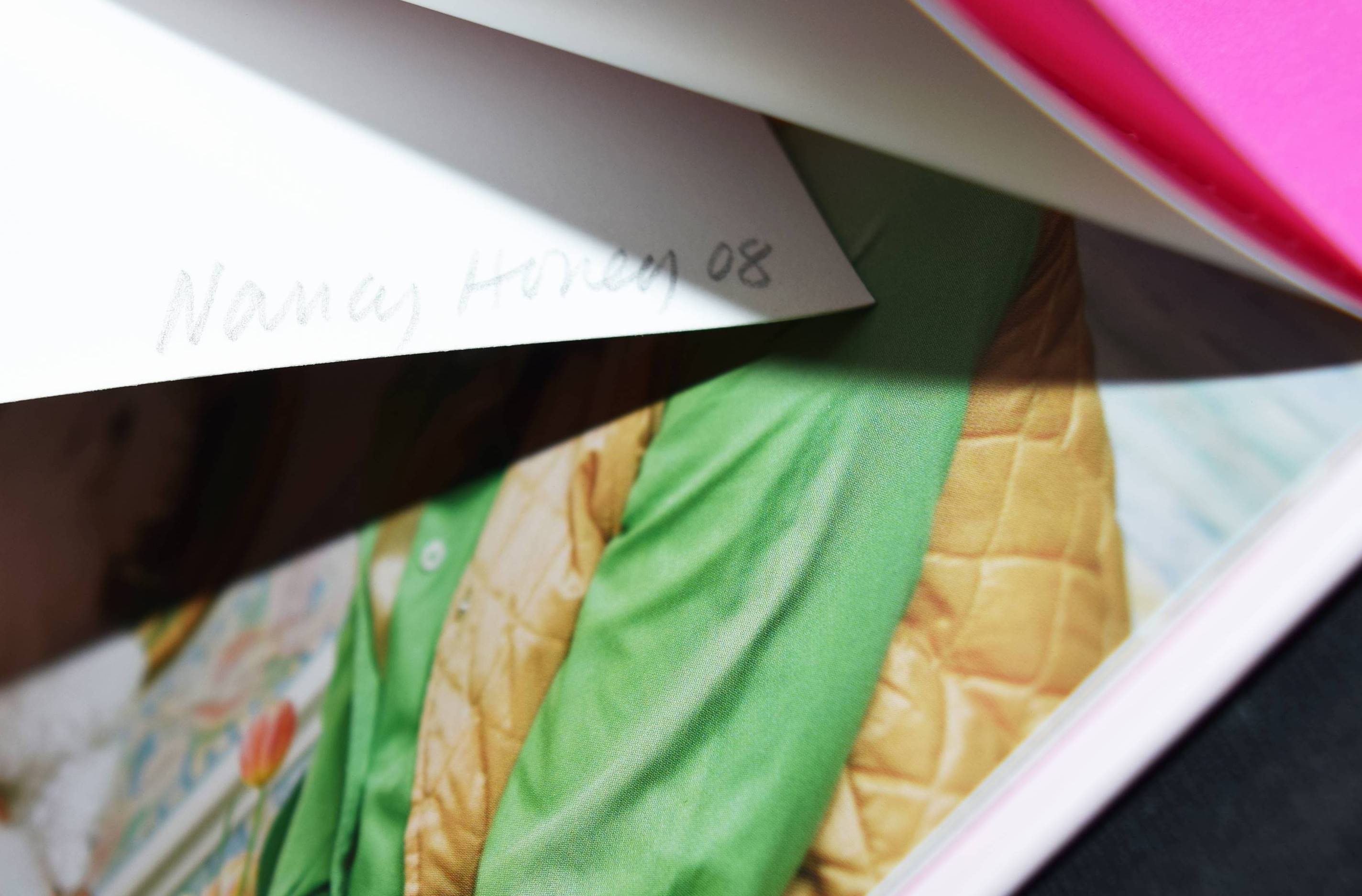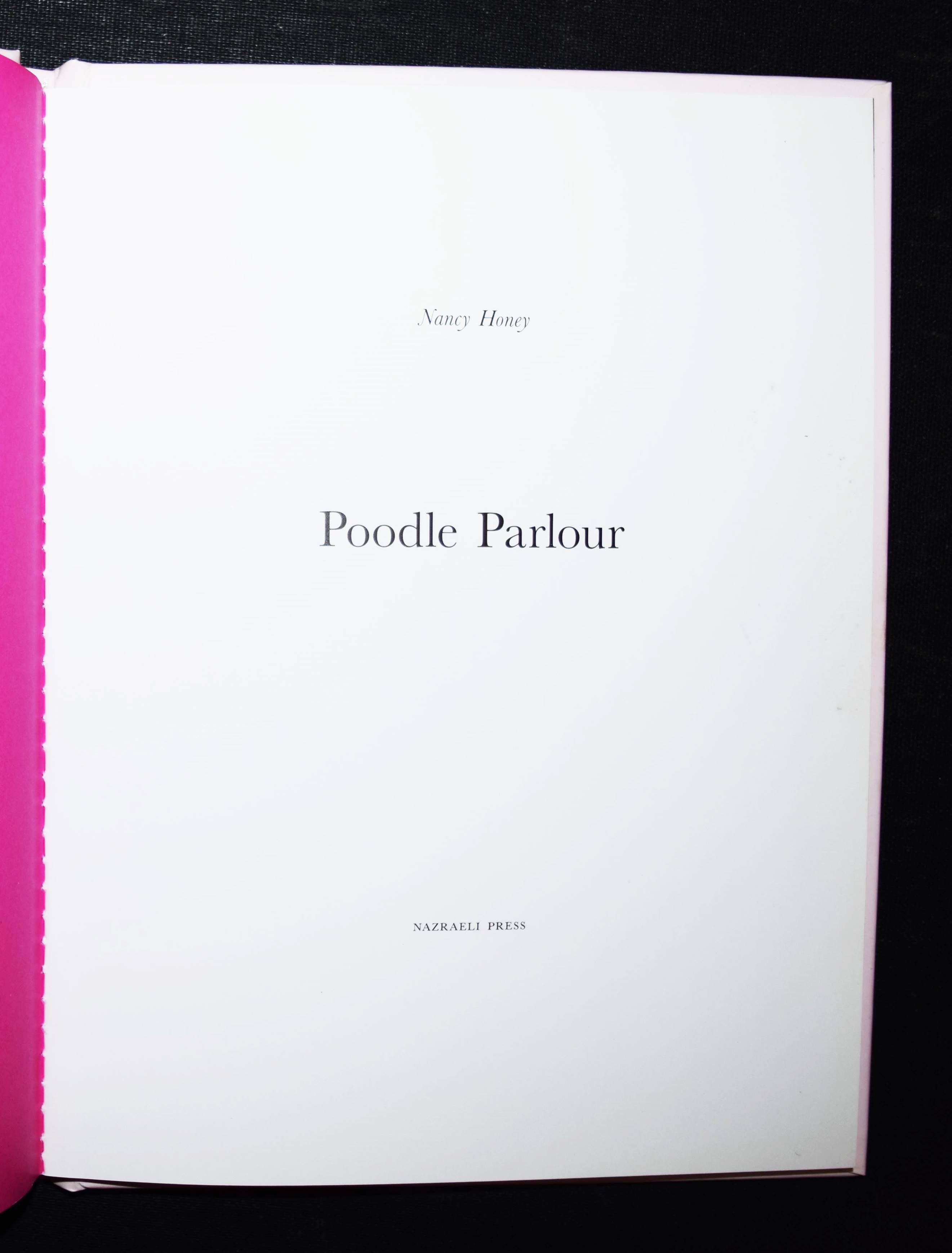 Honey, Nancy. Poodle parlour. London, Nazraeli Press (2008). 8°. [8] Bl. mit 10 (1 doppelblattgr.) farb. Abb. u. 1 mont. farb. Digital-Print, verso signiert. Orig.-Pappband. (One Picture Book No. 47). Eines von 500 num. Exemplaren. – Mit 1 signiertem Photoprint. – „It was an honour to be asked by Nazraeli Press to include my series entitled Poodle Parlour as one of their limited edition One Picture Books. A long-time wish to do a fashion shoot came true when Nancy Honey took over the reception room of a chi-chi poodle parlour on the outskirts of London“ (N. Honey). – Die bedeutende engl.-amerik. Fotografin N. Honey (geb. 1948) hat sich auf die Darstellung von Frauen spezialisiert. 14 ihrer Porträts prominenter britischer Frauen werden in der National Portrait Gallery in London präsentiert. – „…With many current fashion photographers such as Jamie Hawkesworth, Harley Weir, Theo Sion etc emulating this kind of light fuelled portraiture i feel like Honey’s work is more relevant than ever before. Her street photography is filled with colour and style – sharp tailoring in primary colours and vibrant tweeds ad an exoticism to what are classic pieces of clothing. Her cheeky depictions of youth are totally charming and refreshing with the usual glum gaze swapped out for a cheeky grin or a curious furrowed brow“ (Counterkultur, blog of Fashion and Pop Culture 2017). – Tadellos.