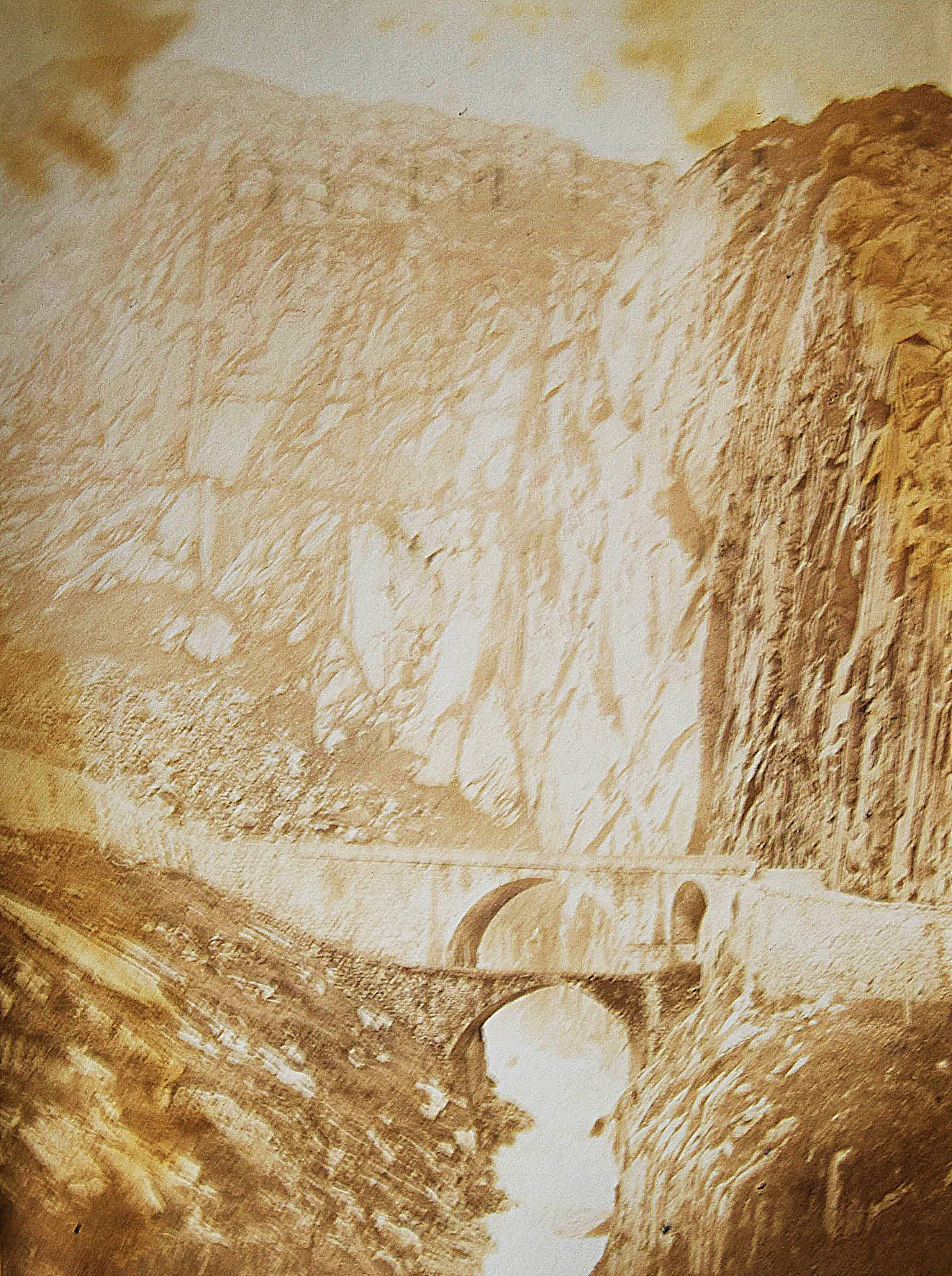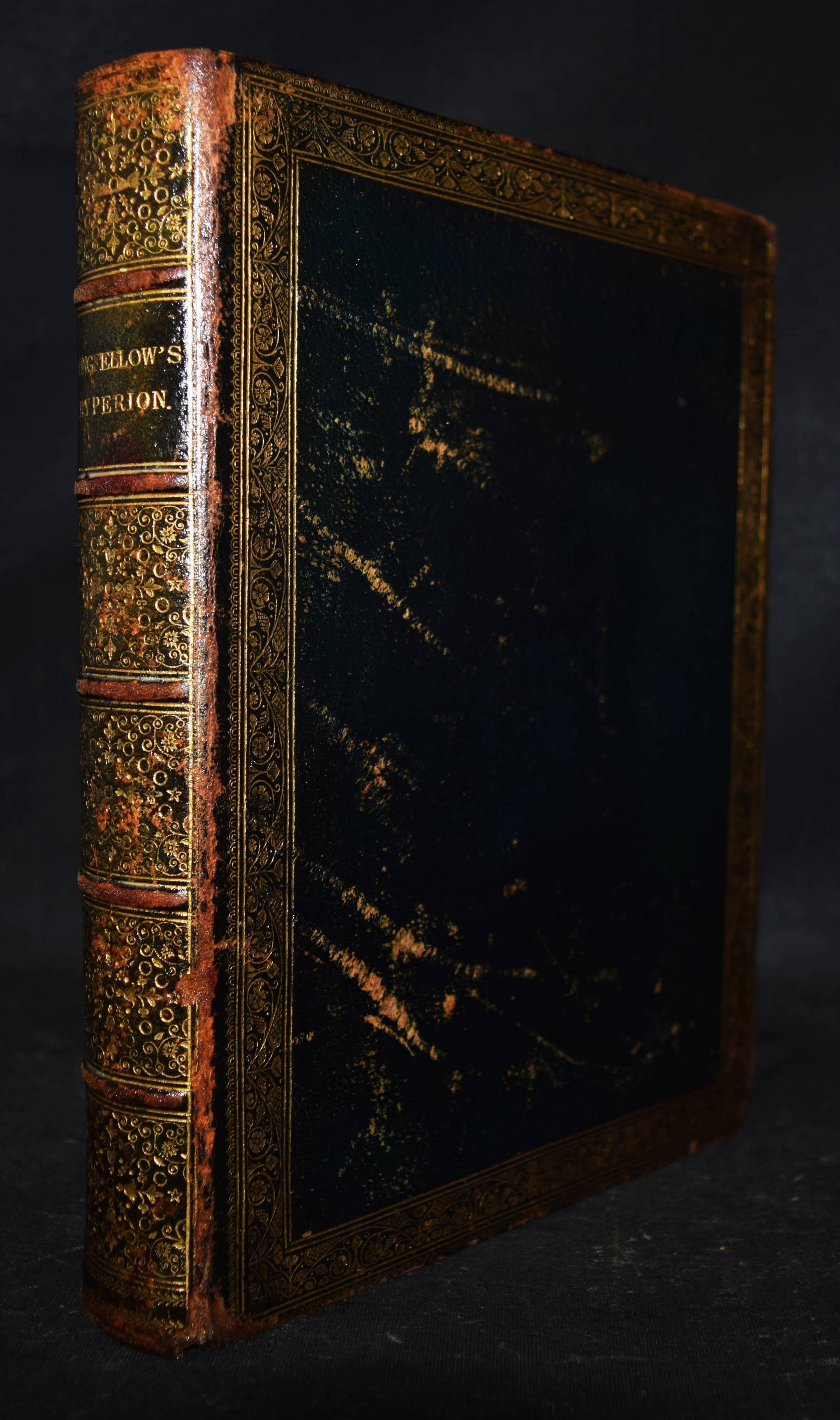 Longfellow, Henry W(adsworth). Hyperion. A romance. Illustrated with twenty-four photographs of the Rhine, Switzerland and in the Tyrol by Francis Frith. London, Alfred William Bennett 1865. Gr.-8°. X S., [1] Bl., 270 S., [1] Bl. mit 24 mont. Orig.-Photographien (Albuminabzüge) von F. Frith. Ldr. d. Zt. mit goldgepr. Rückentitel, reicher Rücken- u. Deckelverg., Innenkantenverg. u. Goldschnitt. Gernsheim, Incunabula 268. Truthful Lens 106. Wood 45/160 (mit Abb.). – Erste mit Fotografien illustrierte Ausgabe. 1868 erschien eine zweite Auflage mit nur 12 Fotos. – Mit frühen fotografischen Ansichten vom Rhein, aus der Schweiz und aus Österreich. – Die Photos zeigen: Teufelsbrücke (Frontispiz), Drachenfels, Andernach (2), Stolzenfels, Liebenstein und Sternenfels, Heidelberg (3), Birkenau (2), Neckartal, Rohnegletscher, Meiringen, Interlaken (2), Staubbach, Innsbruck (2), Landeck, St. Gilgen, St. Wolfgang und Stuttgart (2). – Francis Frith (1822-1898) gehörte zu den produktivsten Landschaftsfotografen Englands und erfuhr bleibenden Ruhm für seine Aufnahmen aus dem Nahen Osten. – „Illustrated with 24 albumen photographs by Francis Frith of lanscapes on the Rhine, in Switzerland and in the Tyrol. The book is notable for its direct associationof landscape photographs as non-literal visual ideas of literary ideas. The 4-page preface by Frith describes his travels“ (Truthful Lens). – Frith „inaugurated the first golden age of albumen-silver photographic illustration (1860-80) during which photographs of great visual strength were supplemented by supportive texts One of the most outspoken on the esthetics of photography, Frith was among the first photographers to successfully seize the opportunity of using the recently perfected glass-negative and albumen print process to establish a reputation as a master photographic book illustrator“ (Truthful Lens, p. 30). – Einband teils stärker berieben, Rücken am Fuß leicht beschädigt, stellenweise leicht bis stärker stockfleckig u. etwas gebräunt, ca. 3 Tafeln stark betroffen, wenige Bl. mit Wasserrand im Außenrand, noch gutes Exemplar.