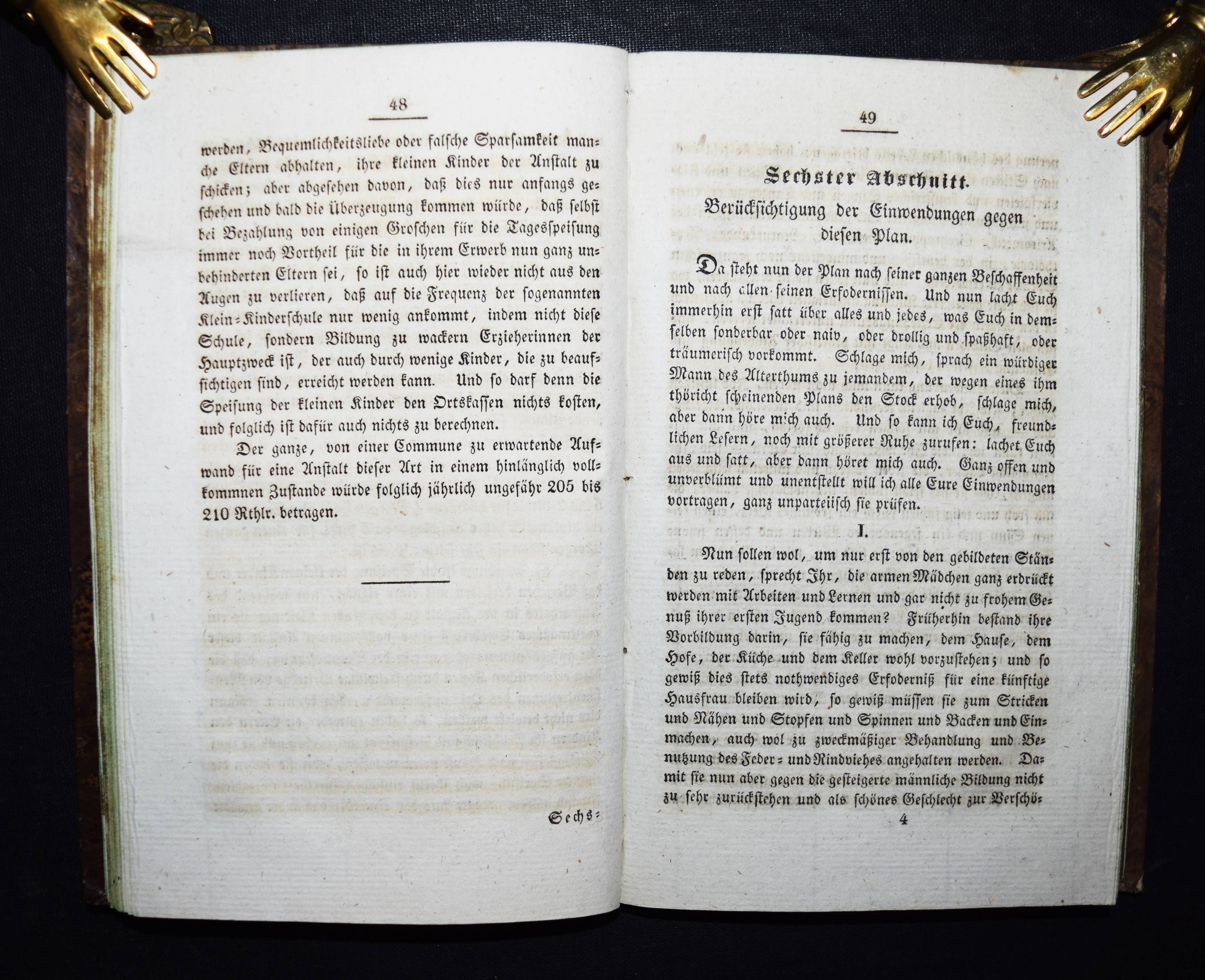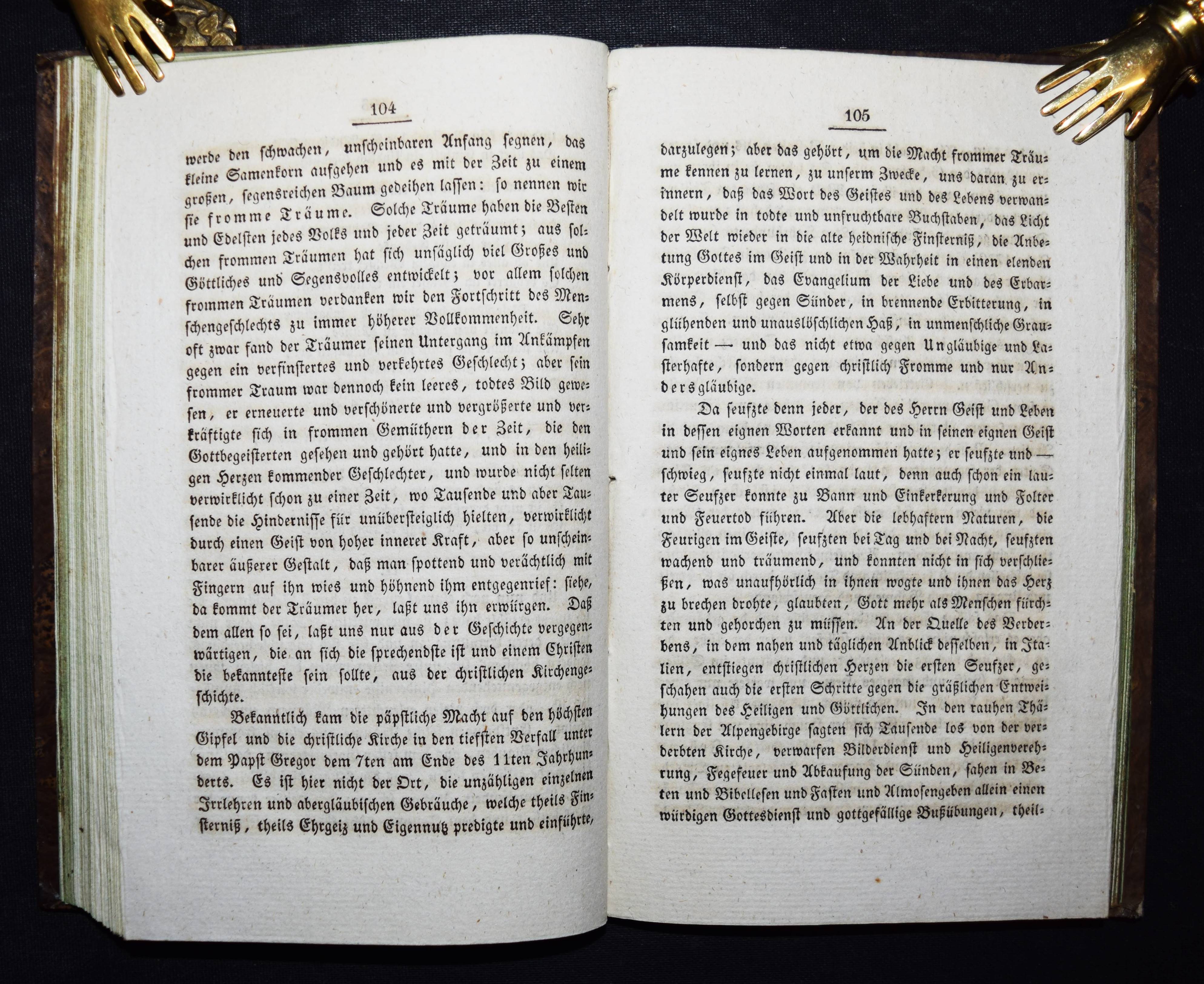 (Krause, Karl Heinrich). Vermächtniss eines Deutschen für Deutsche; oder: Ein gutes Wort nach einer bösen Zeit. Halle, Schwetschke 1832. 8°. XIV, 169 S. Marm. Pbd. d. Zt. mit goldgepr. Rückentitel u. Rückenverg. Holzmann/Bohatta IV, 9137 (Titel ungenau, nach dem Neuen Nekrolog zitiert). – Erste und einzige Ausgabe, selten. – Der Theologe, Pädagoge und Historiker K. H. Krause (1771-1841) setzte sich auch in anderen Publikationen engagiert für die Schulbildung ein. Sein Jugendbuch „Mein Vaterland unter den hohenzollerischen Regenten ein Lesebuch für gebildetere brandenburgisch preußische Juenglinge und für jeden, der sich gern an die Geschichte des Wachsthums der Groeße und des inneren Flors seines Vaterlandes erinnert, oder mit derselben bekannter zu werden wünscht brandenburgisch preußische Jünglinge“ (3 Bände, Wesel 1802 ff.) diente Kleist als Quelle für sein Drama „Prinz Friedrich von Homburg“. – Sehr gutes sauberes Exemplar.