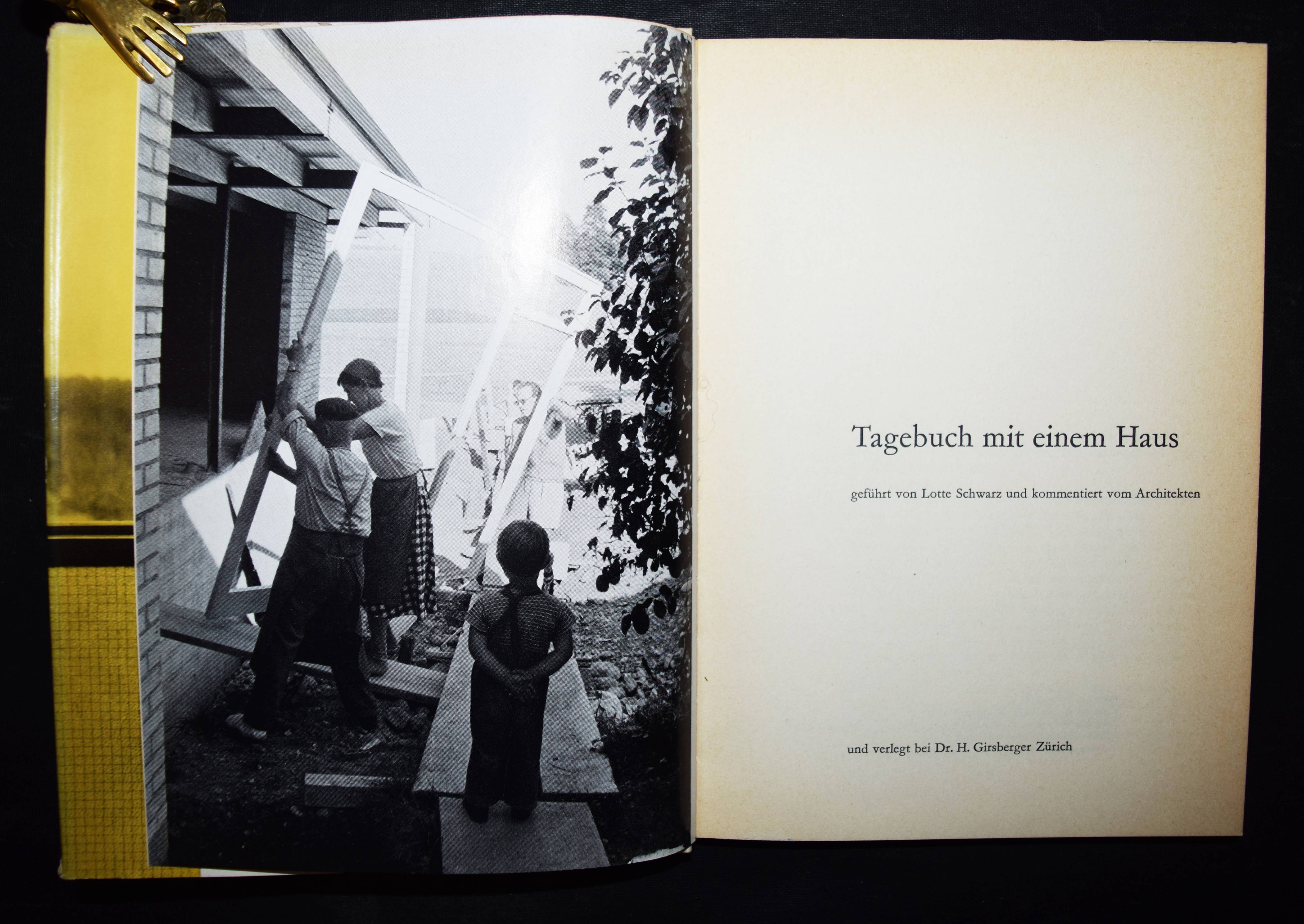 | Schwarz, Lotte u. (Felix). Tagebuch mit einem Haus. Geführt von Lotte Schwarz und kommentiert vom Architekten. Zürich, Girsberger (1956). 8°. 129 S. mit zahlr. Abb. u. Grundrissen. OPbd. mit illustr. OU. Erste Ausgabe. – Von L. Schwarz auf dem vord. freien Vorsatz signiert. – Gestaltung und Fotos von Ernst Scheidegger. – „Dieses Tagebuch war nicht für die Öffentlichkeit bestimmt. Ich schrieb es für meinen Mann (den Schweizer Architekten Felix Schwarz, 1917-2013), damit er die Geschichte seines Hauses in Erinnerung behalte.“ (Vorwort). – Die Schriftstellerin und Bibliothekarin L. Schwarz (1910-1971, geb. Benett) emigrierte 1934 aus politischen Gründen aus Hamburg in die Schweiz. „Dort fand sie 1938 ihr wichtigstes Wirkungsfeld: das Schweizerische Sozialarchiv in Zürich, wo sie während zehn Jahren als Bibliothekarin tätig war. Mit ihrem Wissen und ihrer grossen Hilfsbereitschaft war sie die ideale Anlaufstelle für viele Emigranten und Flüchtlinge. Zwar trat Lotte Schwarz in der Schweiz der Sozialdemokratischen Partei bei, ihre sozialistischen Ideale verlangten aber zeitlebens mehr, als die Reformpolitik ihrer Partei vorsah. Dies kommt in den zahlreichen Artikeln, Essays und Romanen zum Ausdruck, die sie verfasst hat. In ihnen thematisiert sie gesellschaftliche Entwicklungen und Probleme, die sie aus eigener Anschauung kannte. Sie reichen von der Arbeitssituation der Dienstmädchen, den Schwierigkeiten berufstätiger Frauen, über das fehlende Frauenstimmrecht, die Mühsal der Emigration bis hin zu Architekturthemen, die sie in der Folge ihrer Heirat mit dem Architekten Felix Schwarz beschäftigt haben. Im 1956 erschienenen ‚Tagebuch mit einem Haus‘ schildert sie zwar vordergründig den Bau des eigenen Hauses in Brüttisellen, tatsächlich aber präsentiert sie mit dem Buch eine eigentliche Studie einer Schweizer Familie der fünfziger Jahre“ (C. Uhlig, „Jetzt kommen andere Zeiten“: Lotte Schwarz (1910-1971). Dienstmädchen, Emigrantin, Schriftstellerin. Zürich 2012). – Schutzumschlag am Kapital mit Randläsuren, sonst gut erhalten.