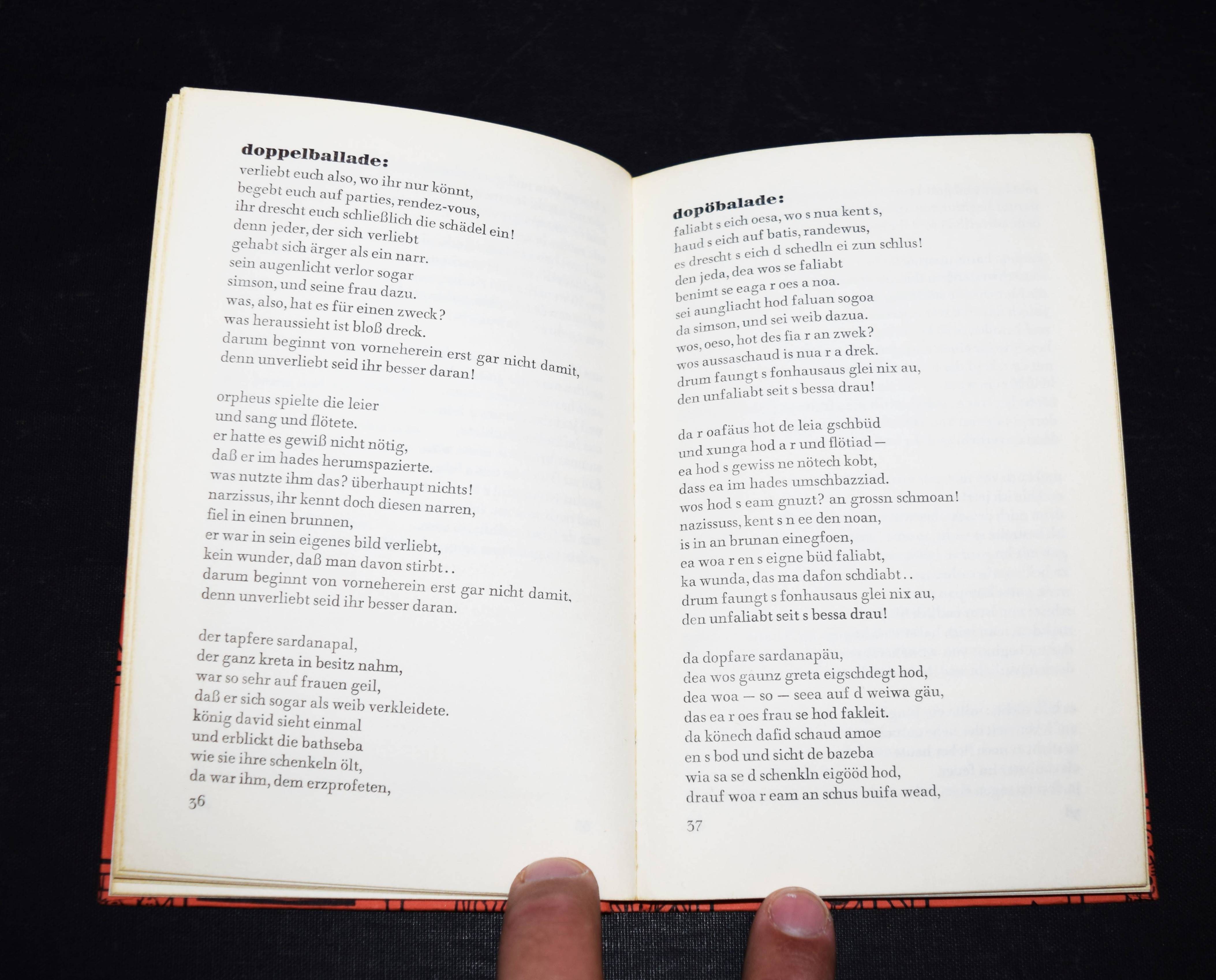 Insel-Bücherei Nr. 883 – Villon, Francois. Baladn. In Wiener Mundart übertragen von H(ans) C(arl) Artmann. Frankfurt a. M., Insel Verlag (1968). 8°. 89 S., 1 Bl. Illustr. OPbd. mit Rücken- u. Deckelschild. W.-G.² 23. – Erste Ausgabe, selten. – Rücken leicht aufgehellt, gutes Exemplar.