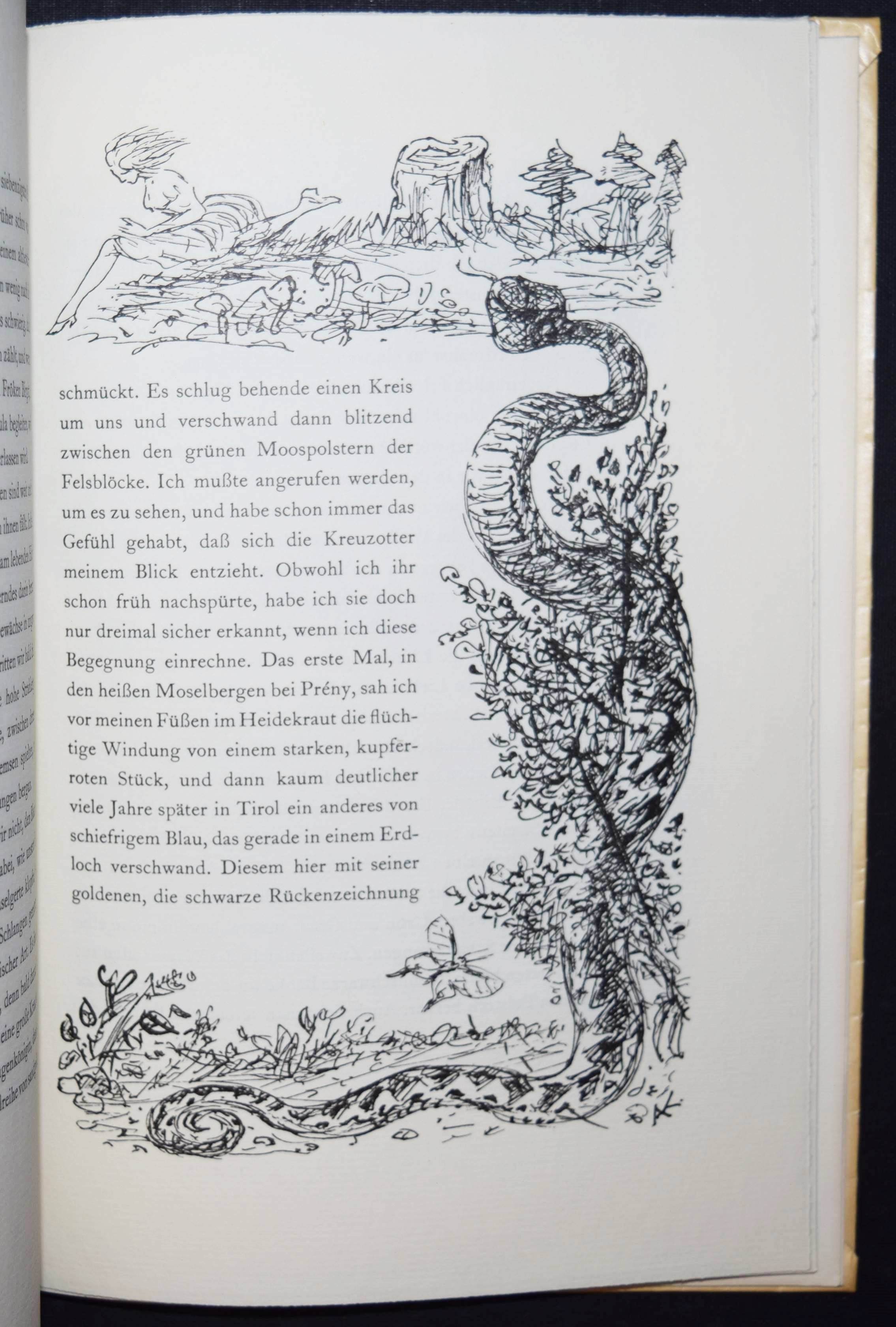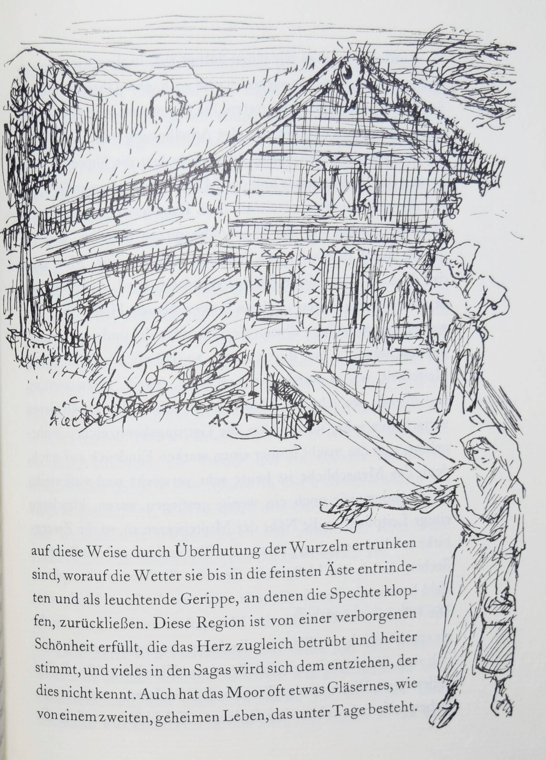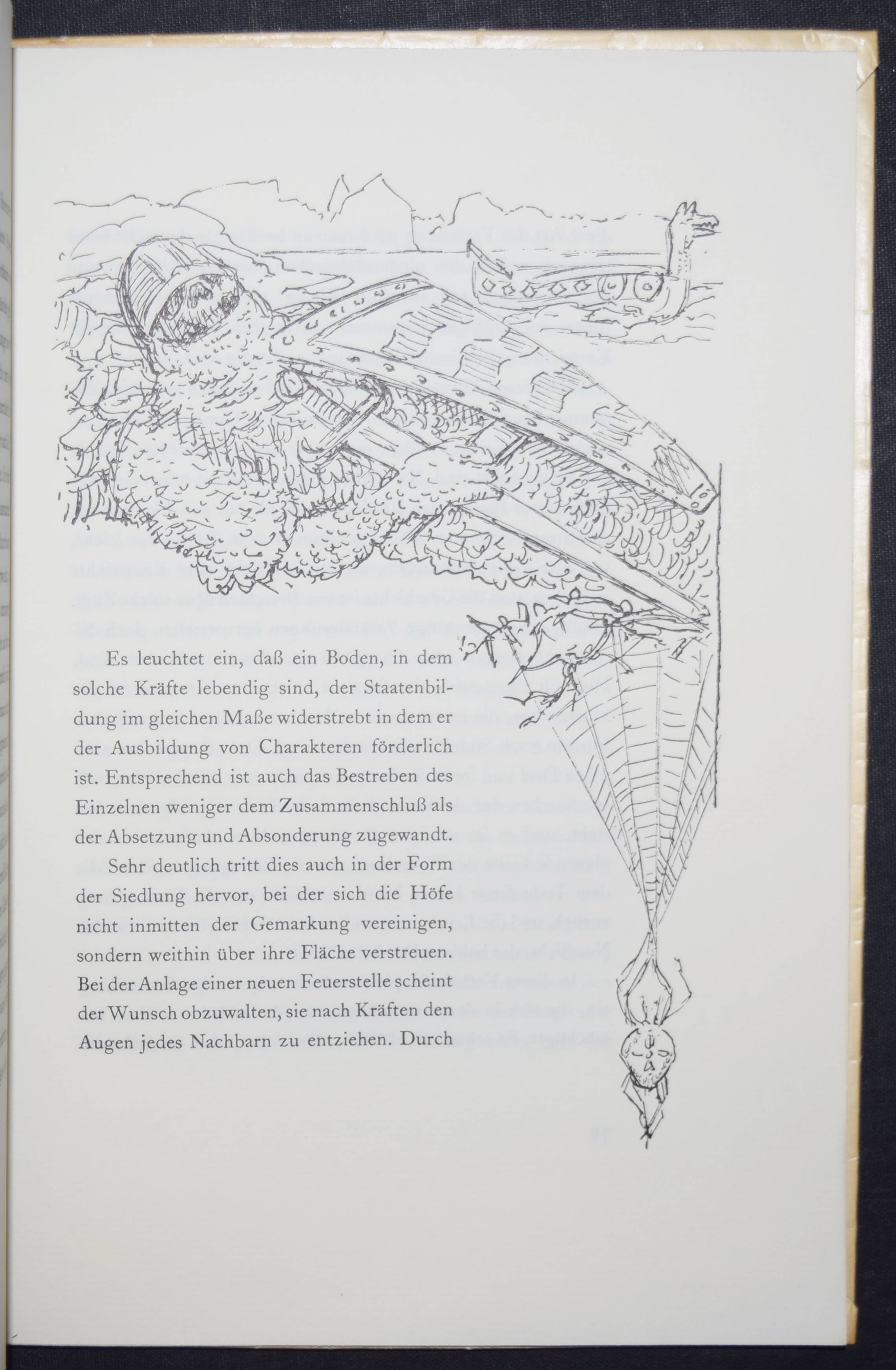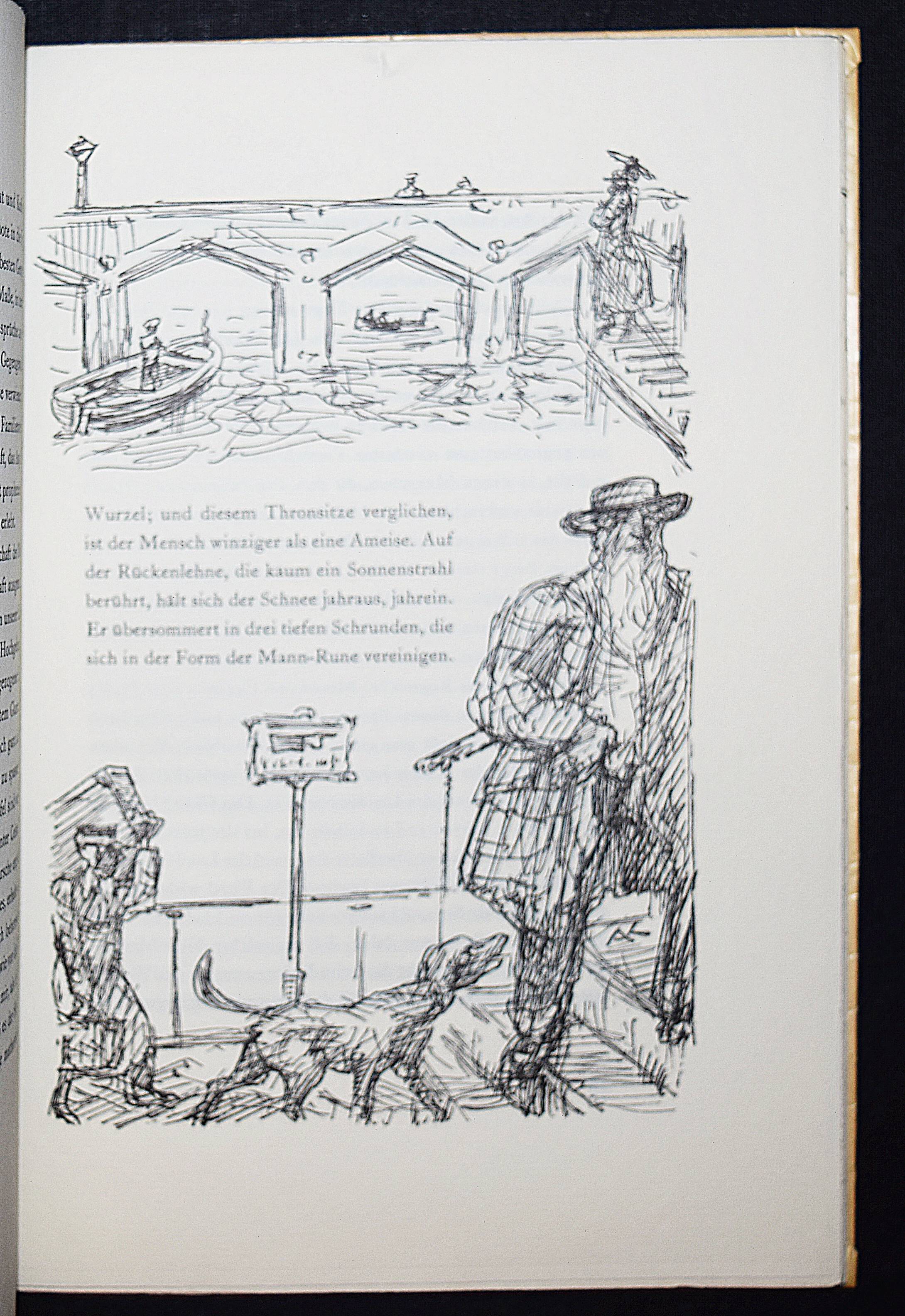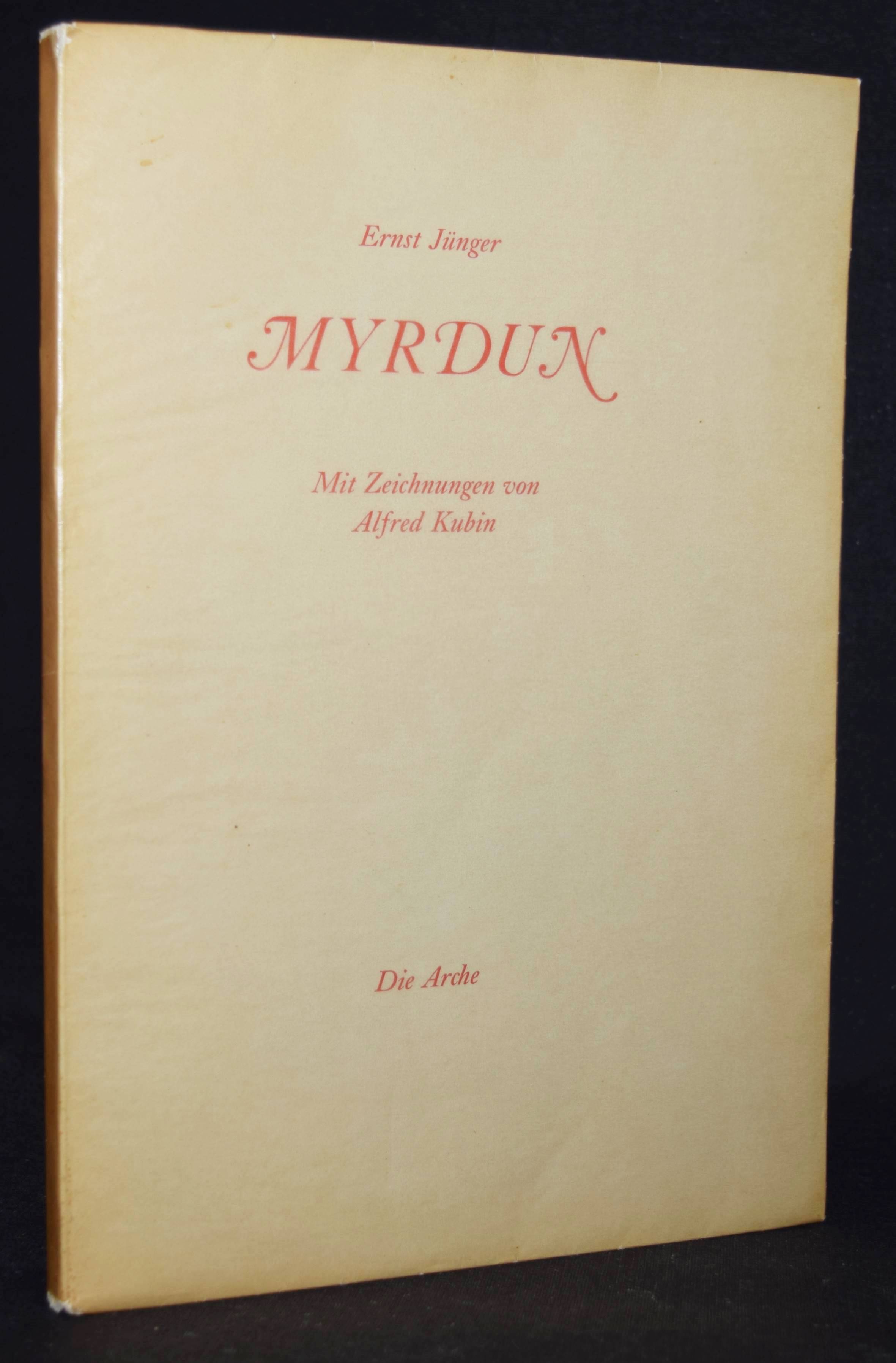 Jünger, Ernst. Myrdun. Briefe aus Norwegen. Mit Zeichnungen von Alfred Kubin. Zürich, Verlag der Arche (1948). 4°. 77 S. mit 14 Illustrationen von Alfred Kubin. OKart. mit Japanpapier-Schutzumschlag. (Argonauten-Drucke der Arche).
