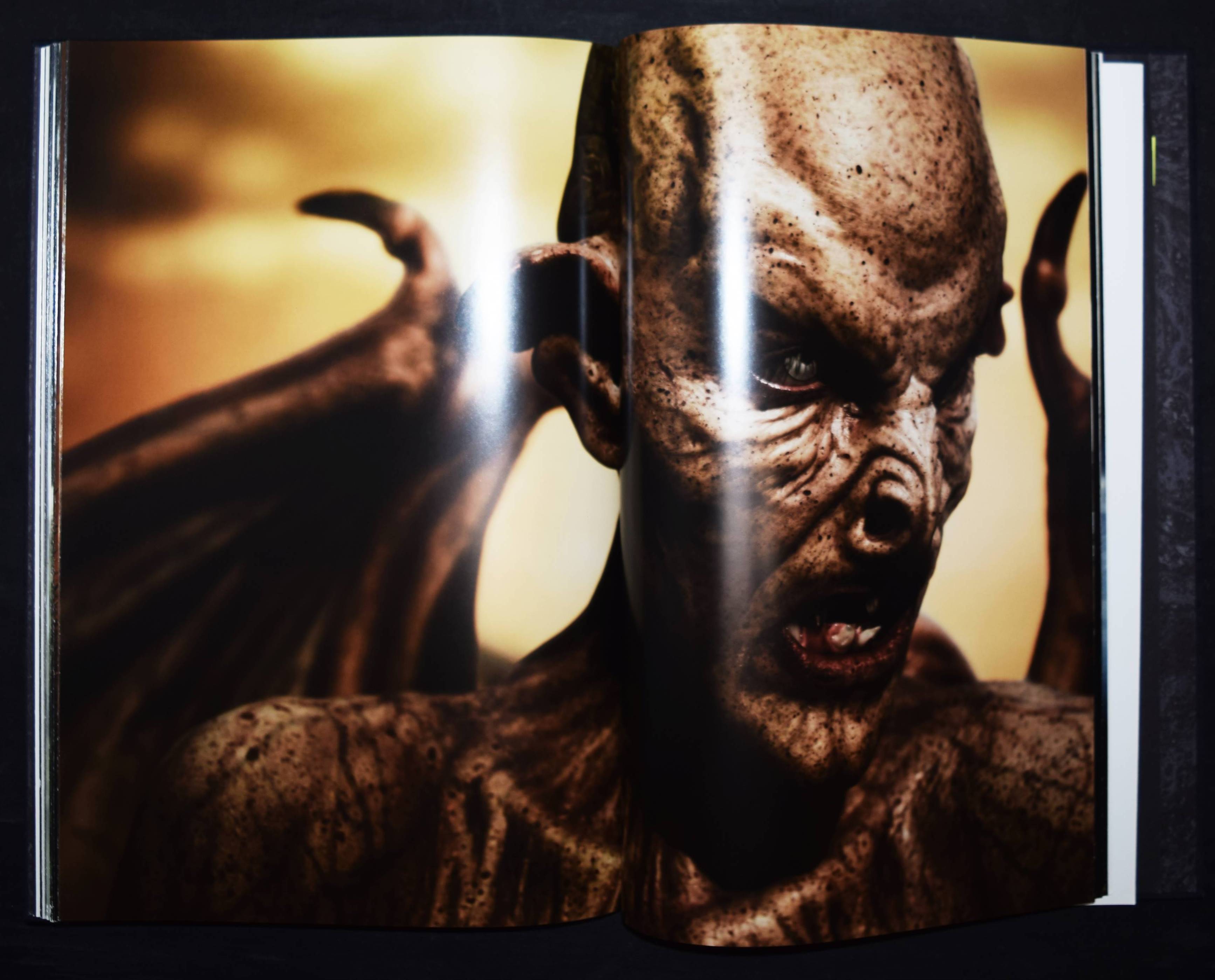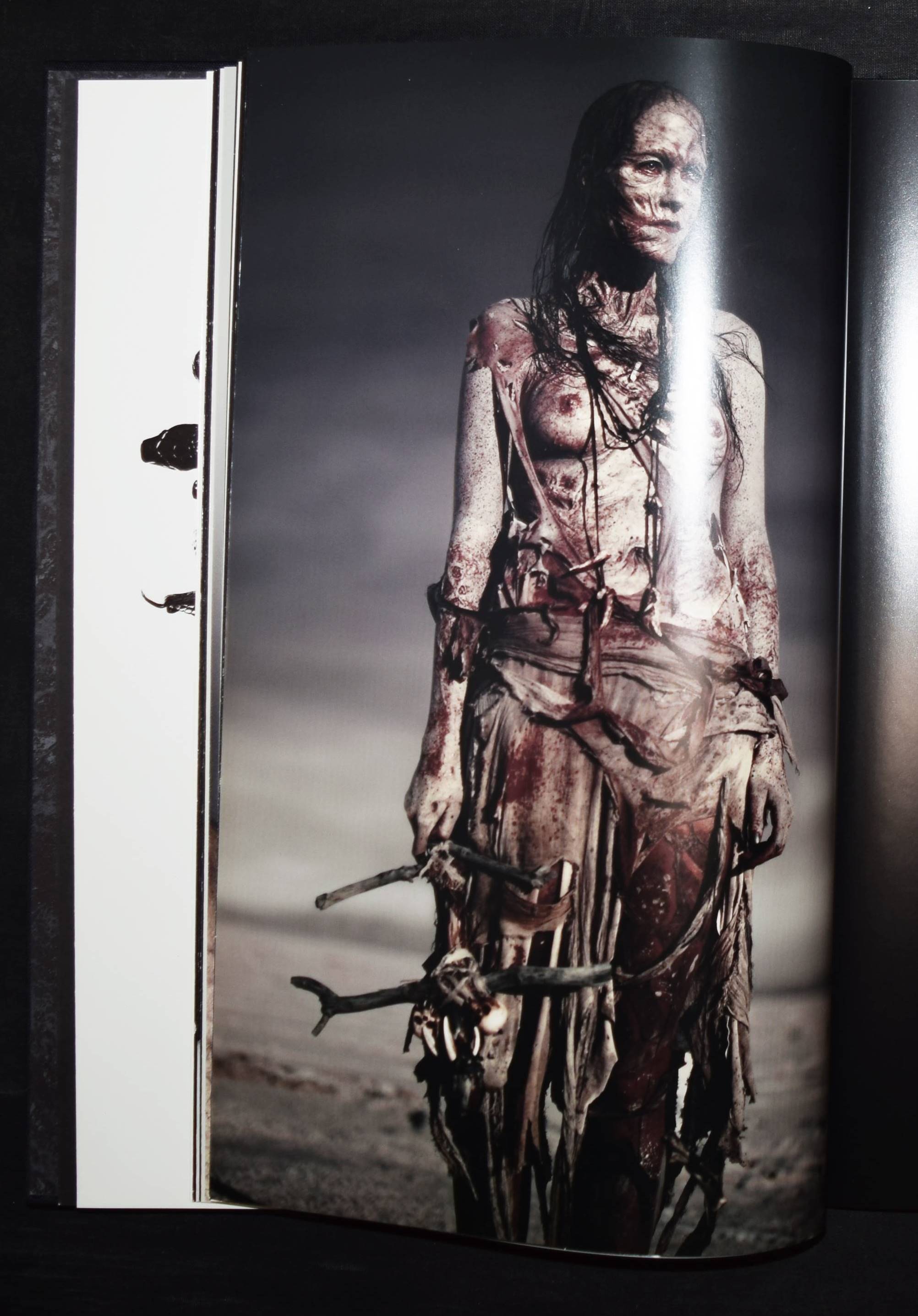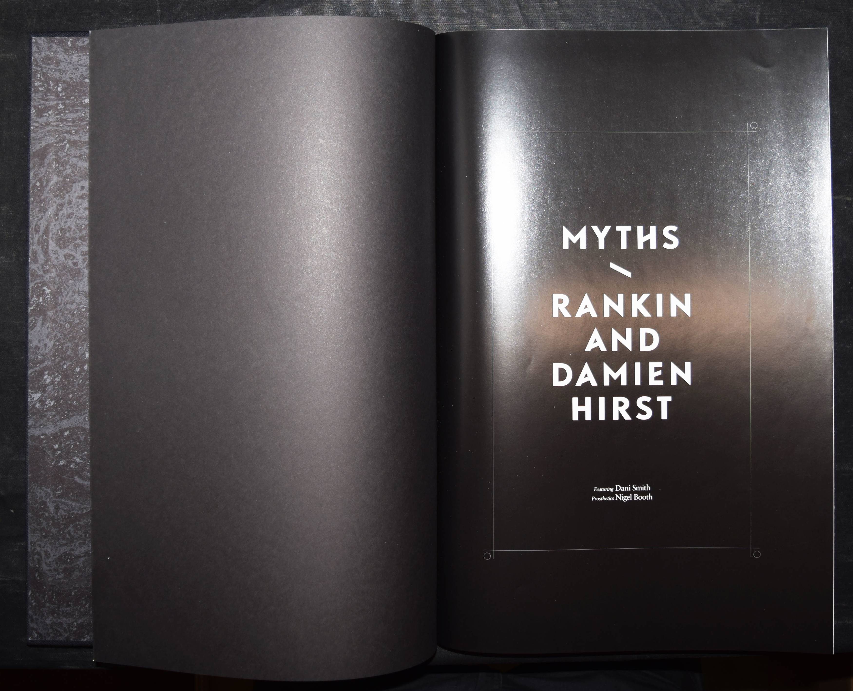 Rankin (Waddell, John) and Damien Hirst. Myths, Monsters and Legends. Featuring Dani Smith. Prosthetics Nigel Booth. London, Rankin Photography 2011. Gr.-4° (44 x 30 cm.). 72 S. mit meist doppelblattgr. Farbtafeln. OLn. mit blindgepr. Rücken- u. Deckeltitel. Erste Ausgabe. – „Myths, Monsters and Legends In this unique art book and epic collaboration, long-term friends, photographer Rankin and artist Damien Hirst, leverage their respective creative mediums and shared dark wit. Inspired by their conversations around myths, monsters and legends, they decided to extend their exploration of the subject by creating something tangible. When Rankin met one of Hirst’s favourite subjects, the pair gained a third collaborator in model, Dani Smith. Originating from Damien’s fascination with the ancient world, and with Rankin keen to push himself creatively beyond the constraints of the expected fashion and beauty photography, the trio worked together to create menacing…“ (Verlagswerbung). – Der schottische Portrait- und Modefotograf J. Wadell Rankin (geb. 1966) gibt seit 2000 sein eigenes Modemagazin „Rank“ heraus. Er fotografierte unter anderen Kate Moss, Heidi Klum, Gisele Bündchen, Keira Knightley, Vivienne Westwood, Katy Perry, Madonna, Cate Blanchett, Nelly Furtado und David Bowie. – Rückendeckel mit leichten Kratzspuren, gutes Exemplar.