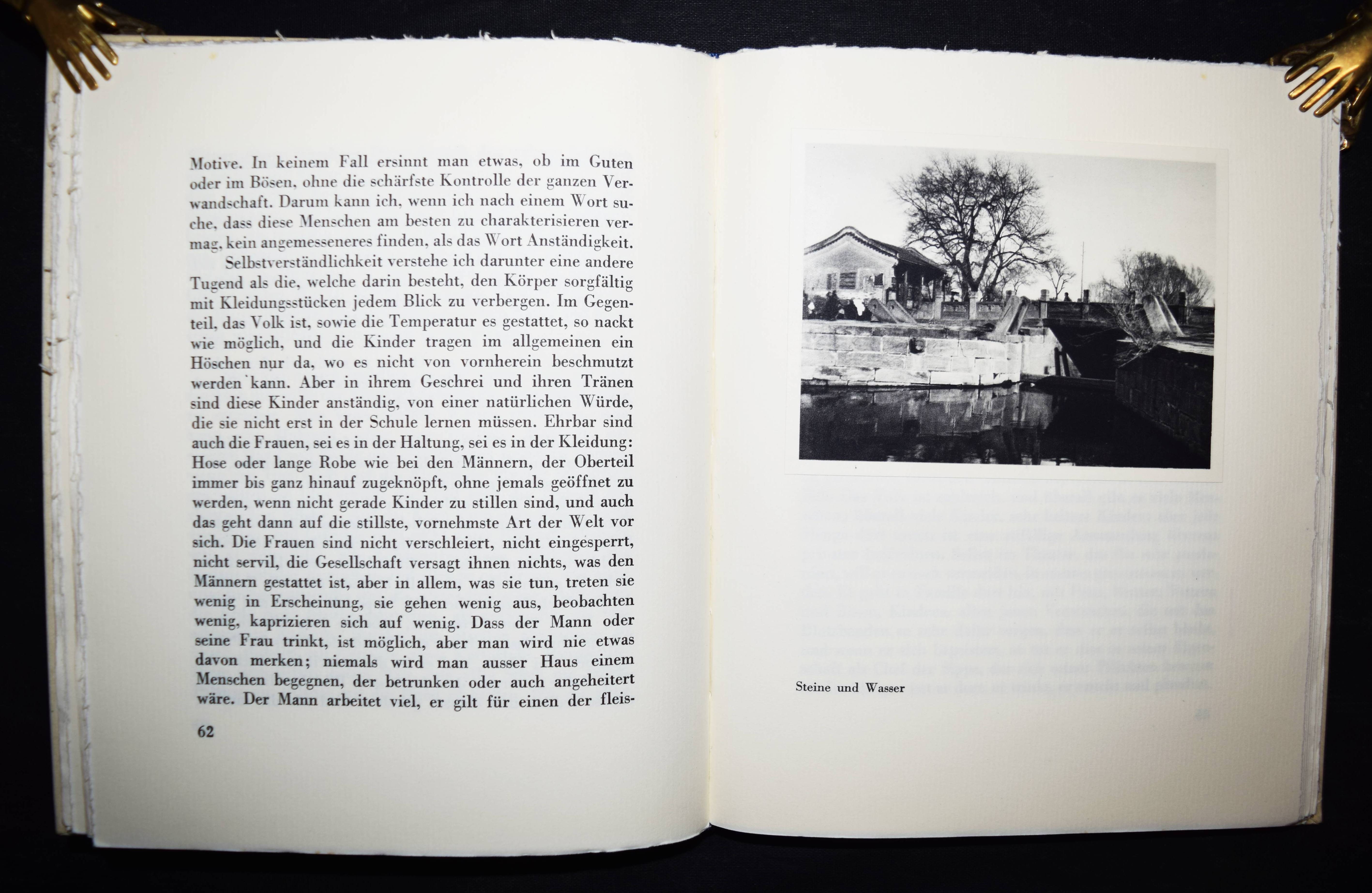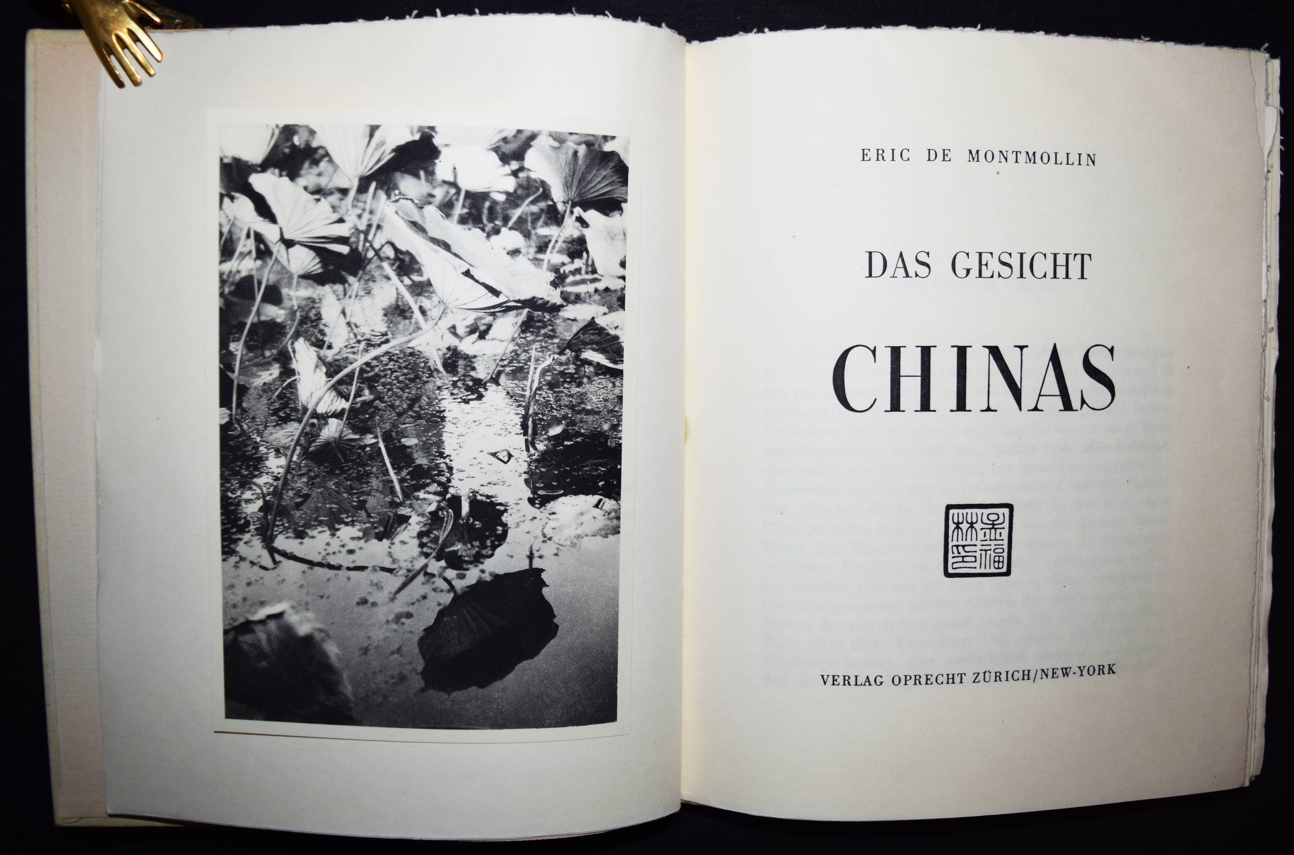 Montmollin, Eric de. Das Gesicht Chinas. Zürich, New York, Verlag Oprecht (1943). 8°. 130 S. mit 42 mont. fotogr. Abb. OPbd. Erste deutsche Ausgabe. – Der Westschweizer Schriftsteller und Journalist E. de Montmollin (1907-2011) arbeitete 1931 bis 1935 als Lehrer in China. – Montmollin wollte mit seinen interessanten Beschreibungen von Land und Leuten und den bemerkenswerten „Fotos einen lebendigen, wirklichkeitsnahen Begriff von China“ (S. 13) geben. – Schönes sauberes Exemplar.
