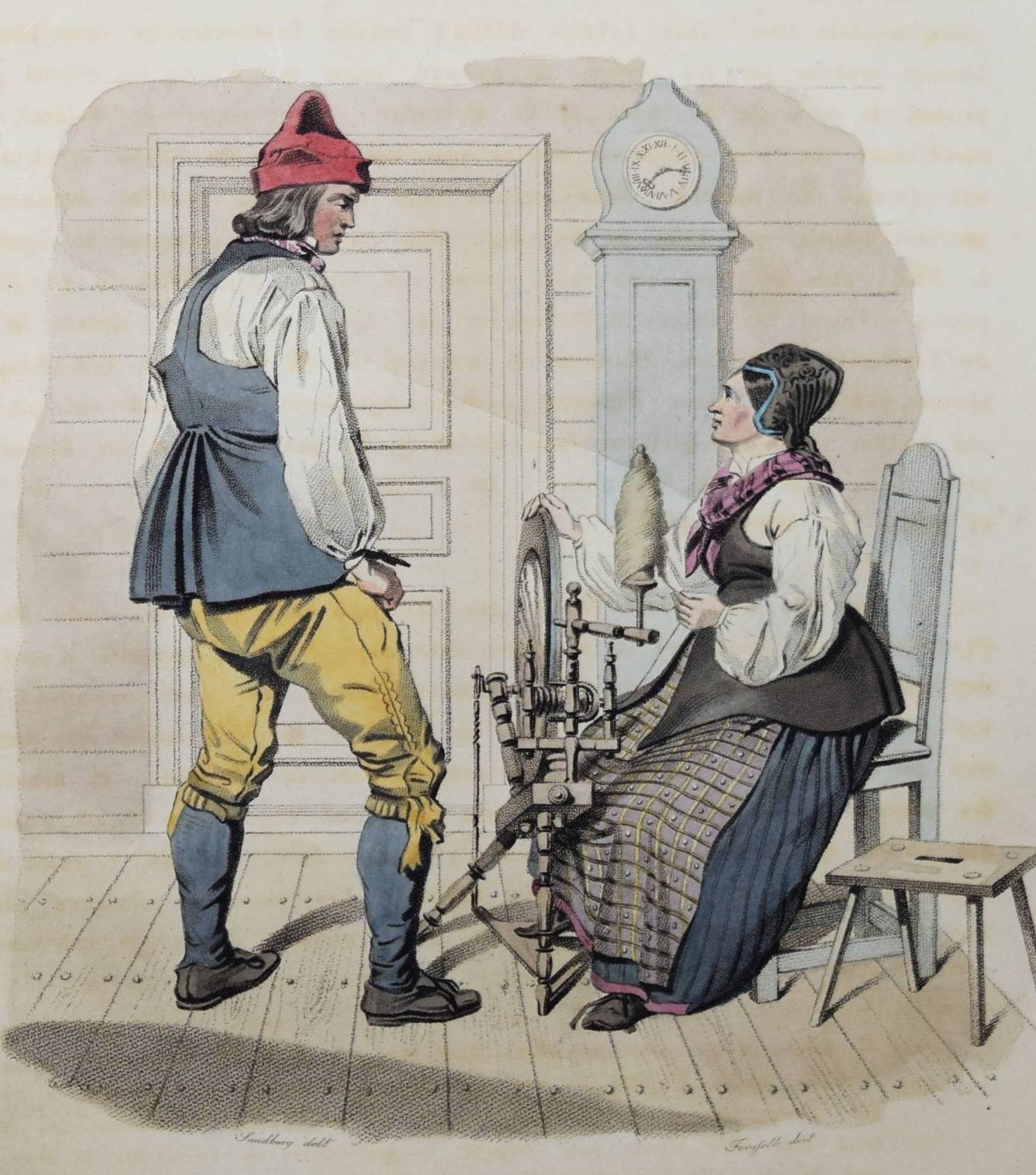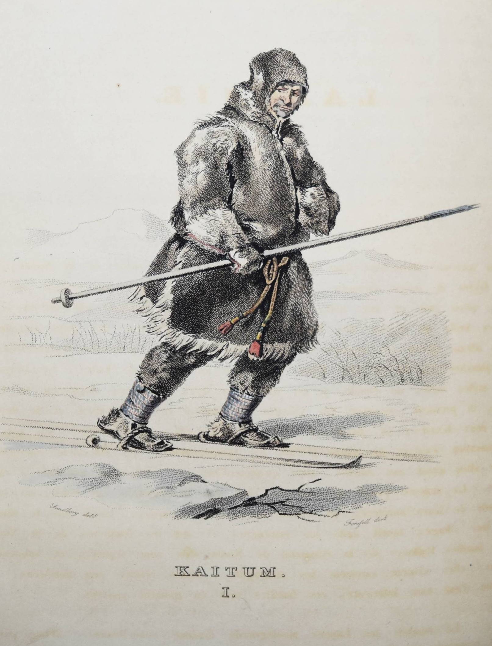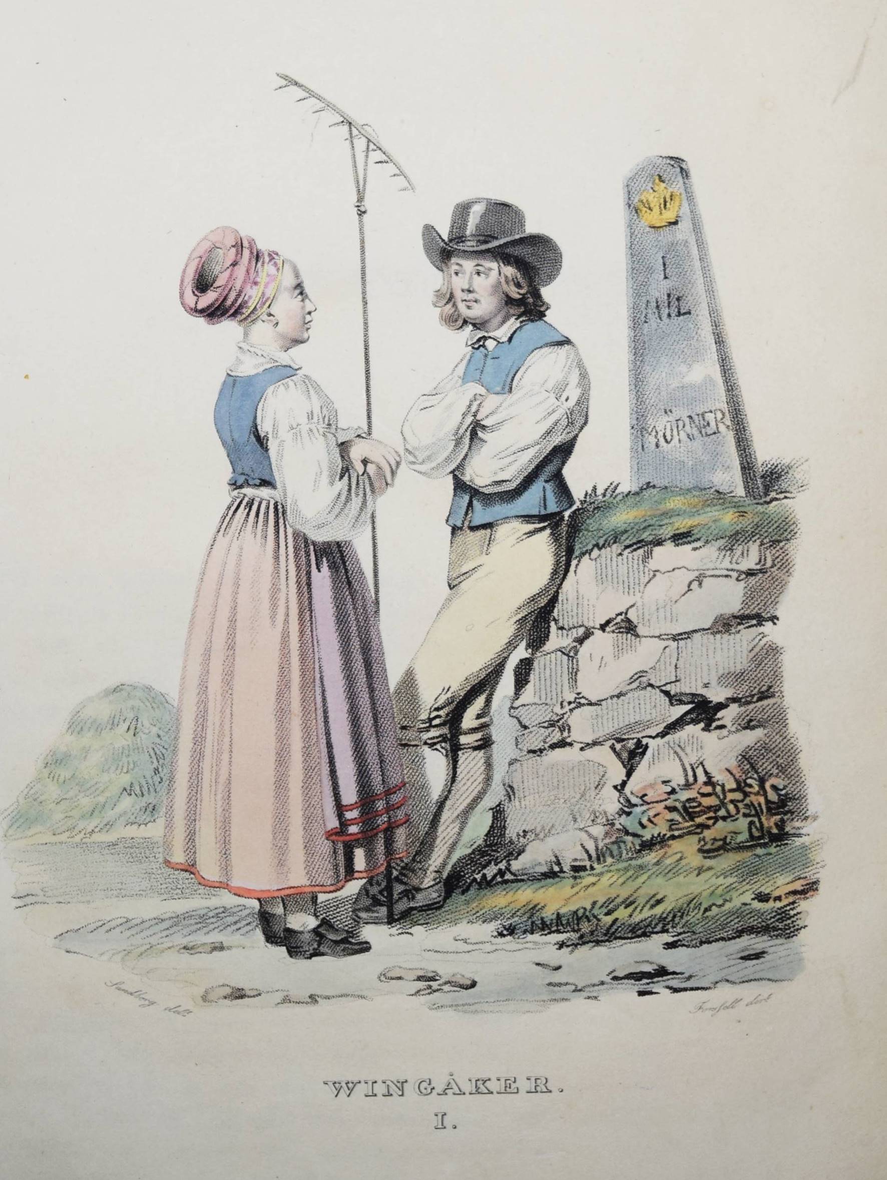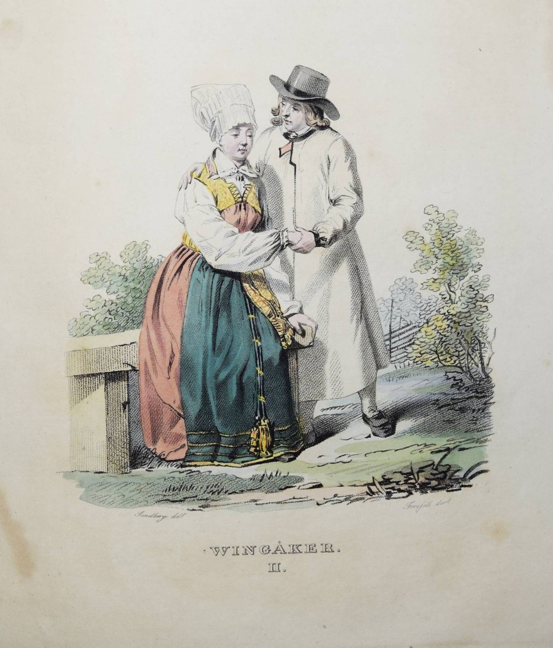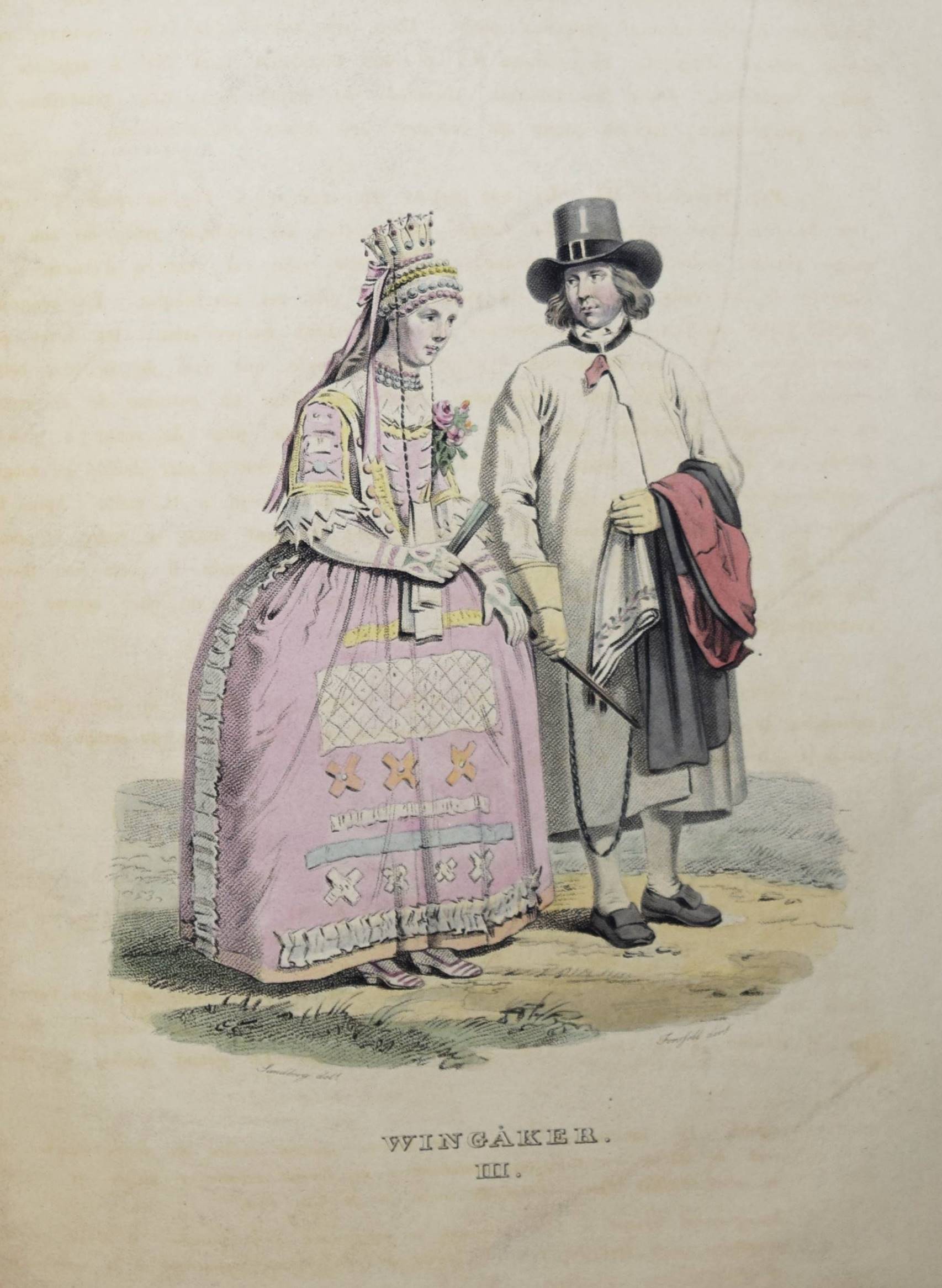 Forssell, C(hristian Didrik). Album pittoresque du Nord. Tableaux des costumes moeurs et usages des paysans de la Suède. (Nebentitel): Le bijou du nord. London, Berlin, A. Asher 1838. Gr.-4°. [3] Bl., 24 S. mit handkol. gestoch. Frontispiz, 15 handkol. Kupfertafeln von Forssell u. Grafströn nach J. G. Sandberg u. 1 lithogr. Musik-Beilage. Blindgepr. OLn. mit goldgepr. Deckeltitel u. Goldschnitt. Colas 1092. Vgl. Colas 1281 u. 1282. – Schön ausgestattetes Album; zuerst 1827 bis 1836 in Lieferungen erschienen. – Die schönen Tafeln zeigen Einwohner aus Helsinki, Schweden und Lappland, darunter auch Robbenjäger auf Skiern und einem Elch-Schlitten sowie ein Lappen-Paar vor einem Zelt. Zwei Tafeln mit Ansichten des Fiellen fjord und von Schloß Gripsholm. – Der schwed. Kupferstecher C. D. Forssell (1777-1852) ging nach seiner Ausbildung als Goldschmied in Stockholm für weitere Studien nach Paris und Amsterdam. Seit 1817 war er Professor an der Kunst-Akademie in Stockholm. – Rücken etwas aufgehellt, Frontispiz im unteren Rand mit restauriertem Eckabriss, nur vereinzelt leicht braunfleckig und etwas gebräunt, sehr gutes Exemplar.