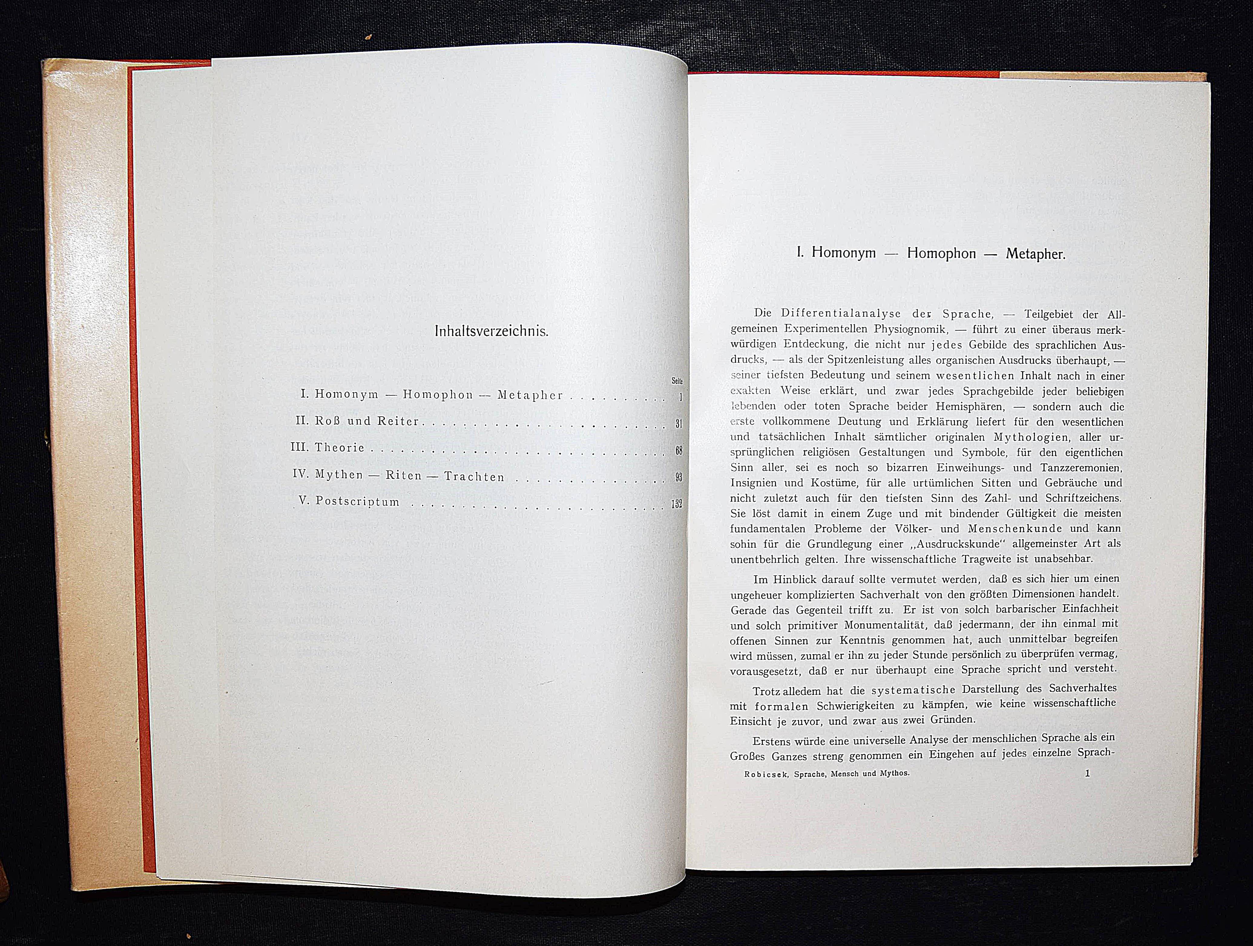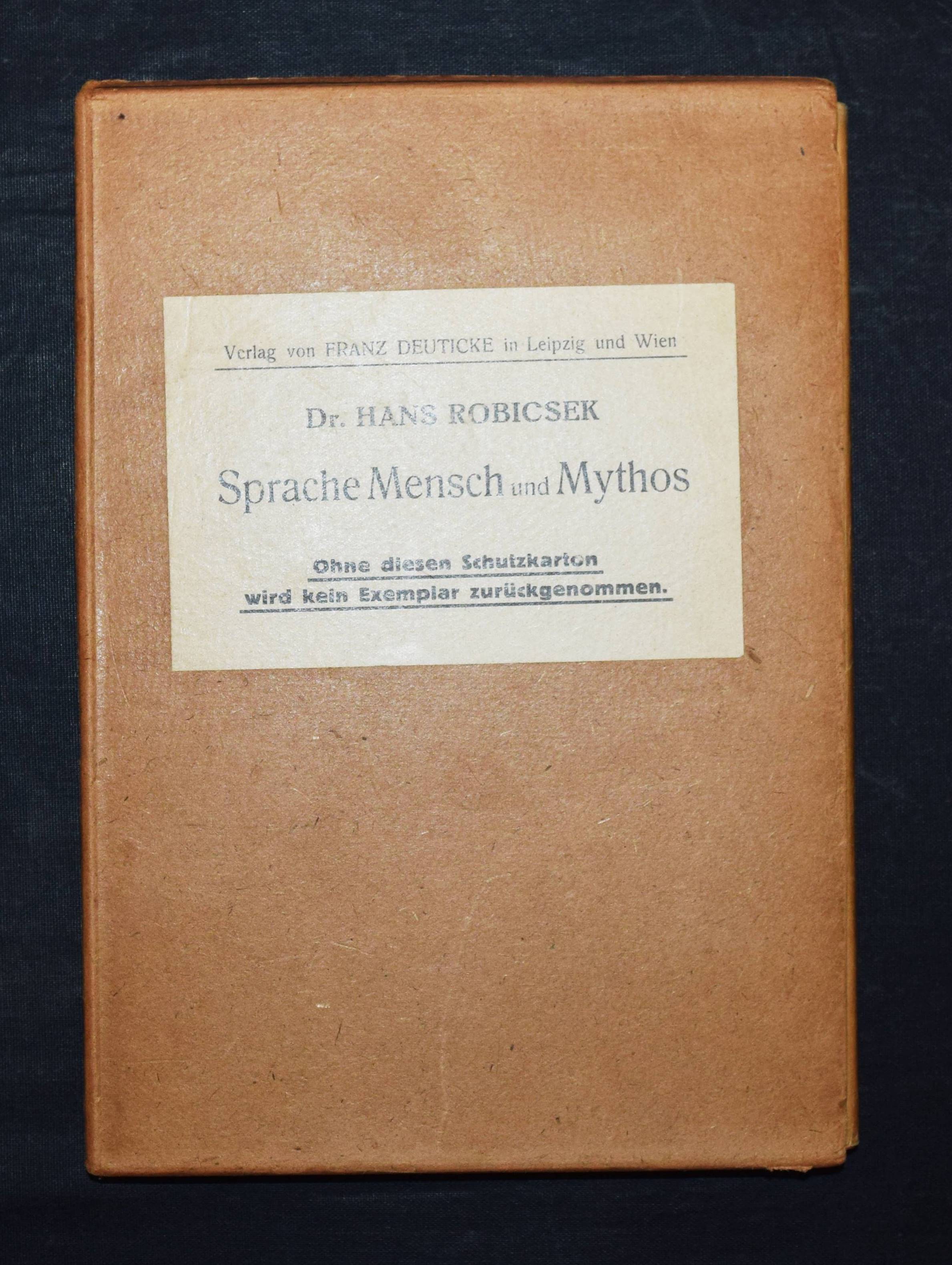 Robicsek, Hans. Sprache, Mensch und Mythos. Einführung in die Differentialanalyse der Sprache. Leipzig, Wien, Deuticke 1932. Gr.-8°. 174 S. mit zahlr. Abb. auf 12 Tafeln. OLn. mit OU. in Orig.-Pappschuber. Erste Ausgabe. – Sehr gutes Exemplar.