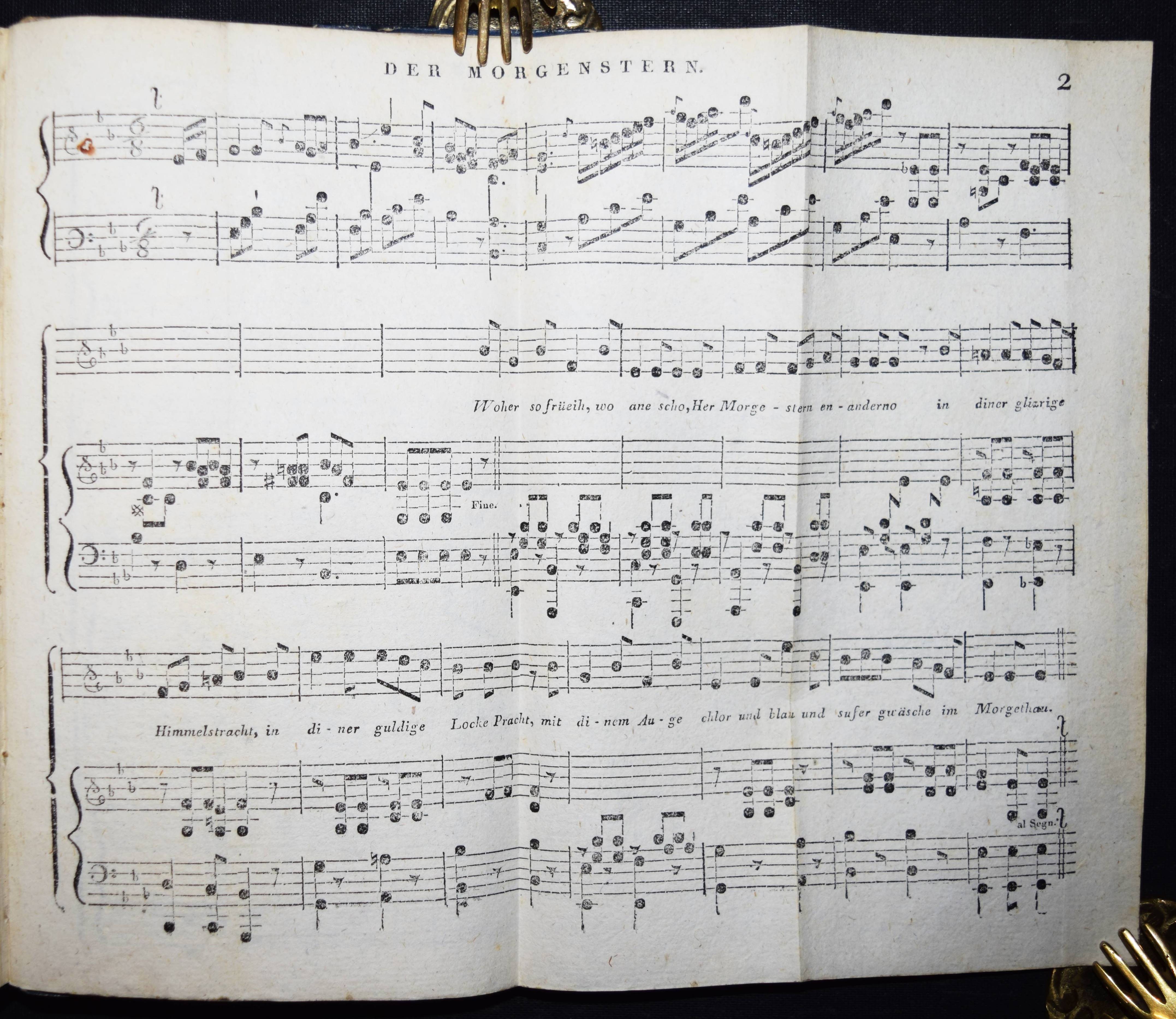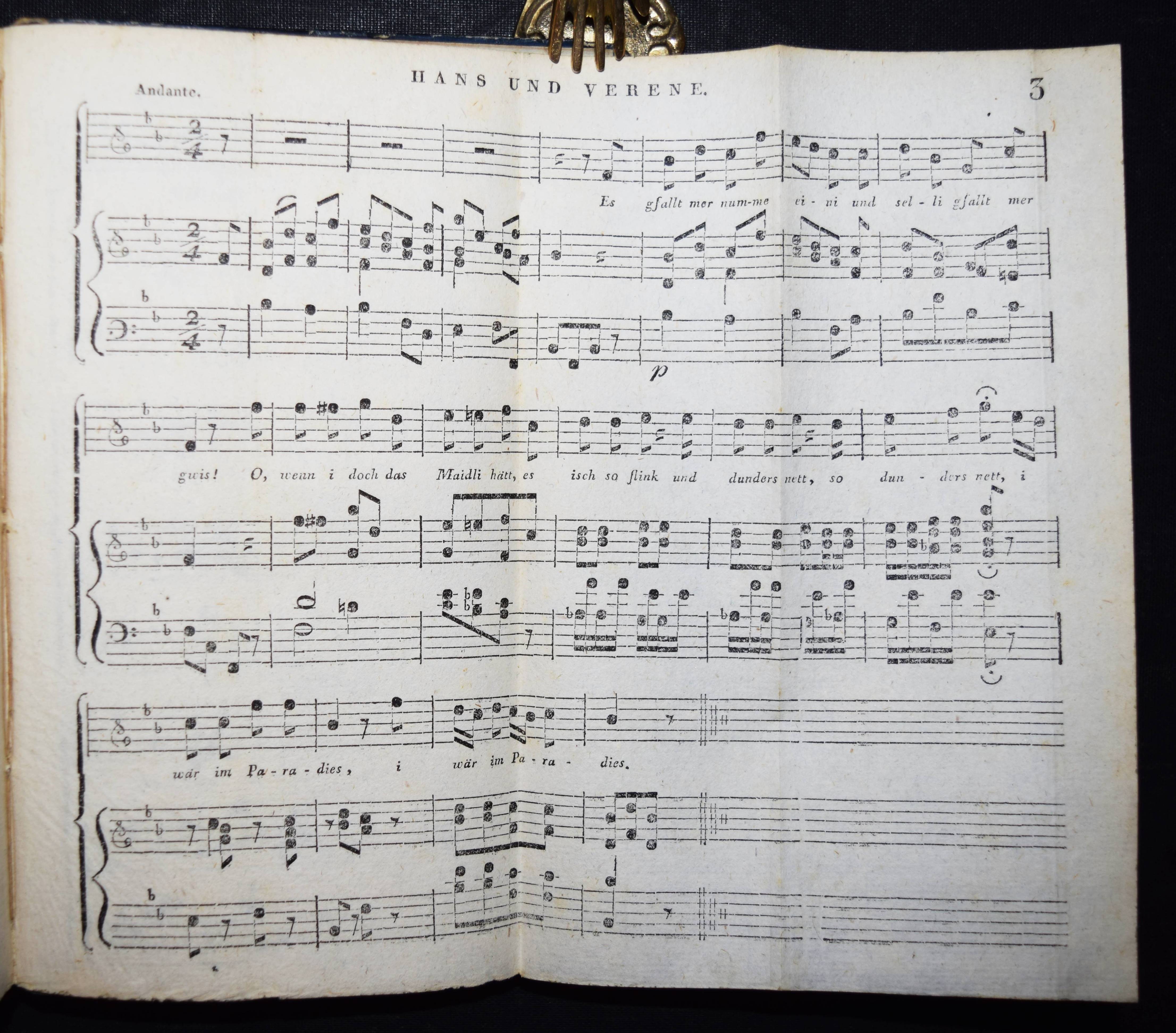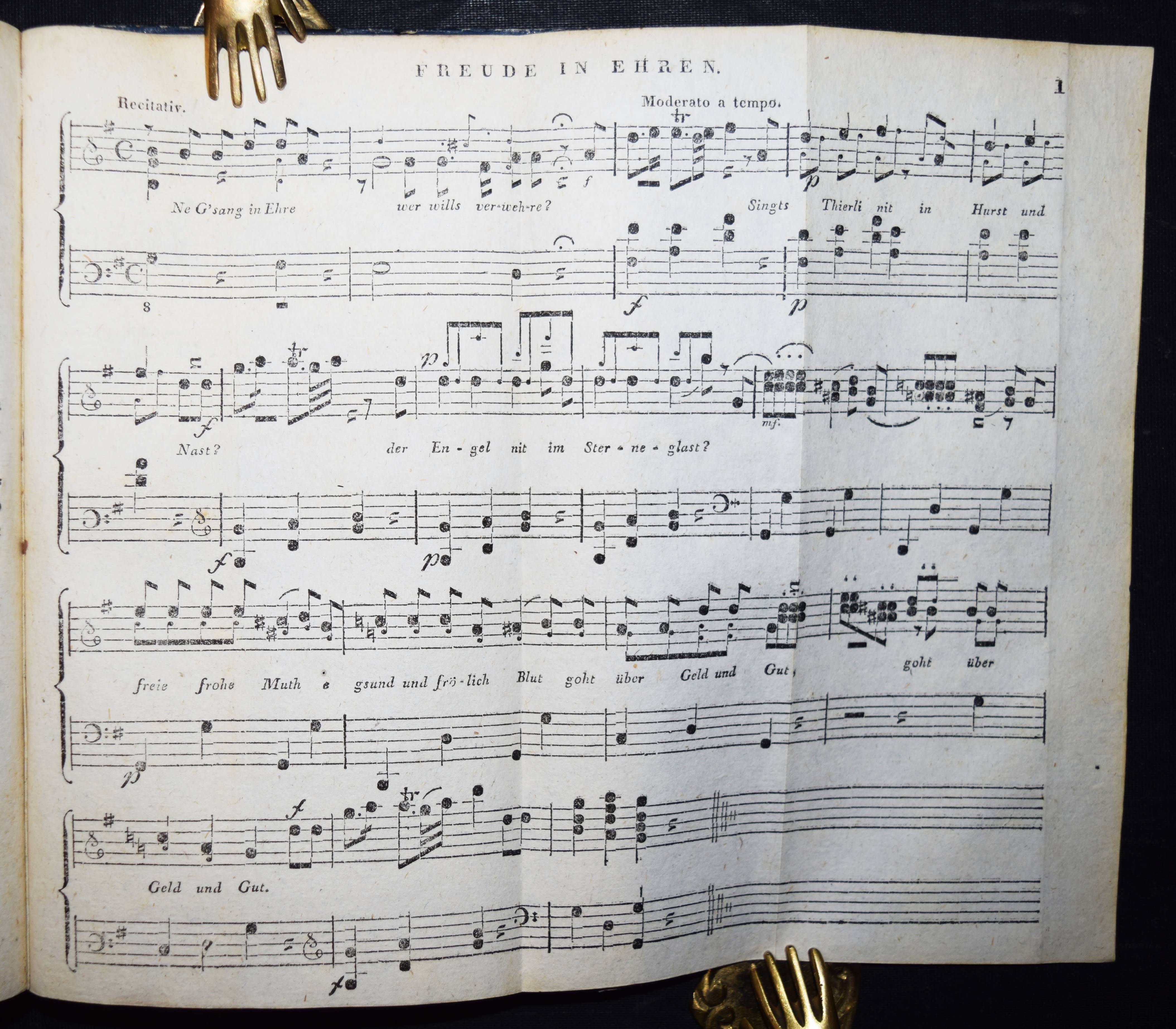 Hebel, J(ohann) P(eter). Allemannische Gedichte. Für Freunde ländlicher Natur und Sitten. 4. Aufl. Karlsruhe, Macklot 1808. 8°. X, 192, 6 S. u. 4 gefalt. Musikbeilagen. Pbd. d. Zt. Goed. VII, 537, 5. – Mit den Vorreden zur ersten bis dritten Auflage sowie mit der Vorrede zur vierten Auflage in Erstdruck, in der Hebel erklärt: „Mehrere Freunde der allemannischen Gedichte haben den Wunsch geäußert, in einer neuen Auflage die Lesarten der ersten wieder hergestellt zu sehen…“, diesem Wunsch kommt Hebel in der vorliegenden Ausgabe nach. – Einband restauriert, Titelblatt im unteren w. Rand mit alt hinterlegtem Abschnitt (kein Textverlust), gutes sauberes Exemplar auf kräftigem Papier.