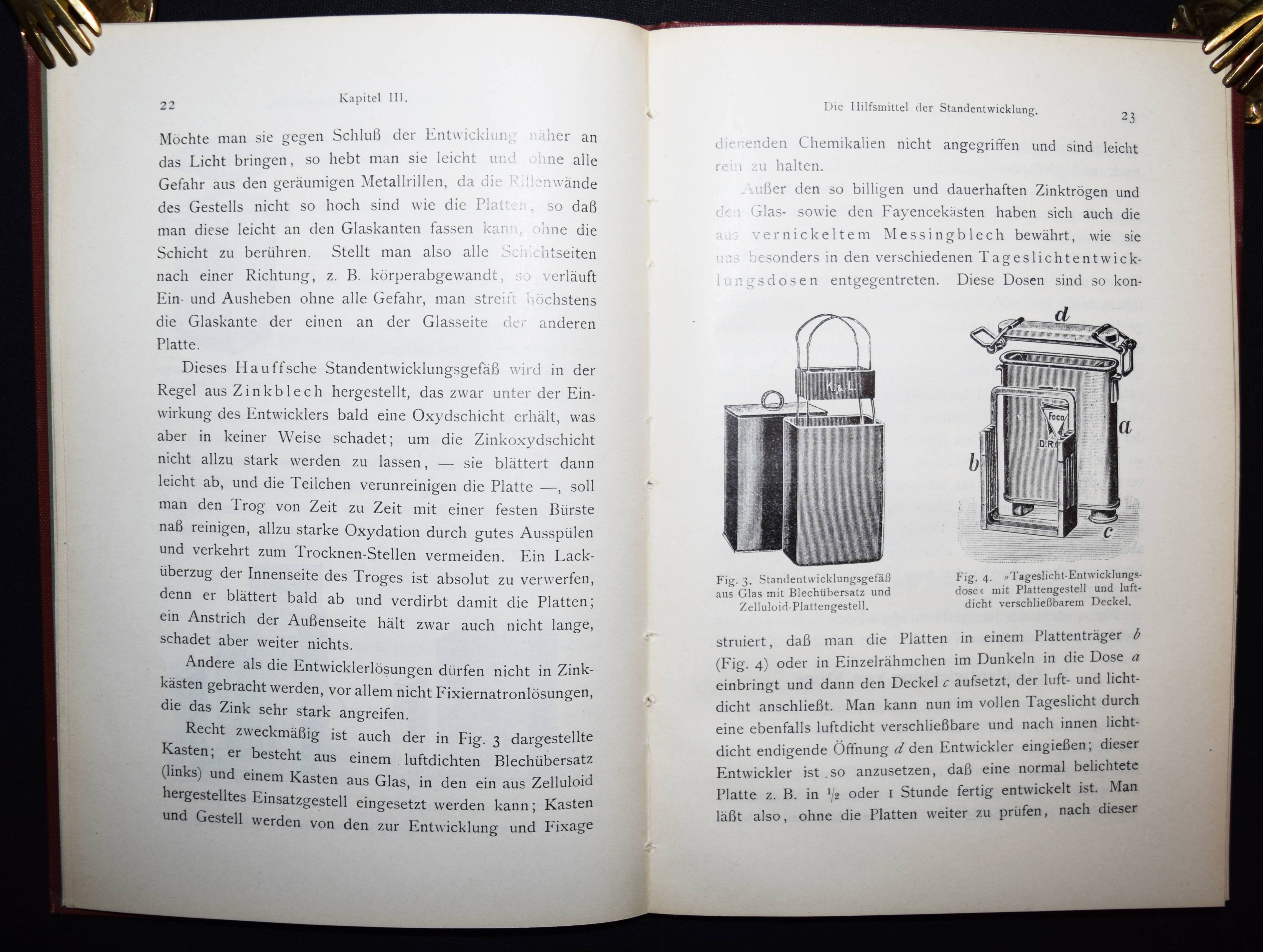 Blech, E(rnst). Die Stand-Entwicklung. 3. Aufl. neubearb. von Wolf-Czapek. Berlin, Union Deutsche Verlagsgesellschaft 1913. 8°. 48 S. mit 13 Abb. OLn. (Photographische Bibliothek, Band 12). Heidtmann 5855. – Die erste Ausgabe erschien 1900 mit dem Titel „Die Stand-Entwicklung als Universal-Methode für alle Zwecke.“ – Exlibris, sehr gutes Exemplar.