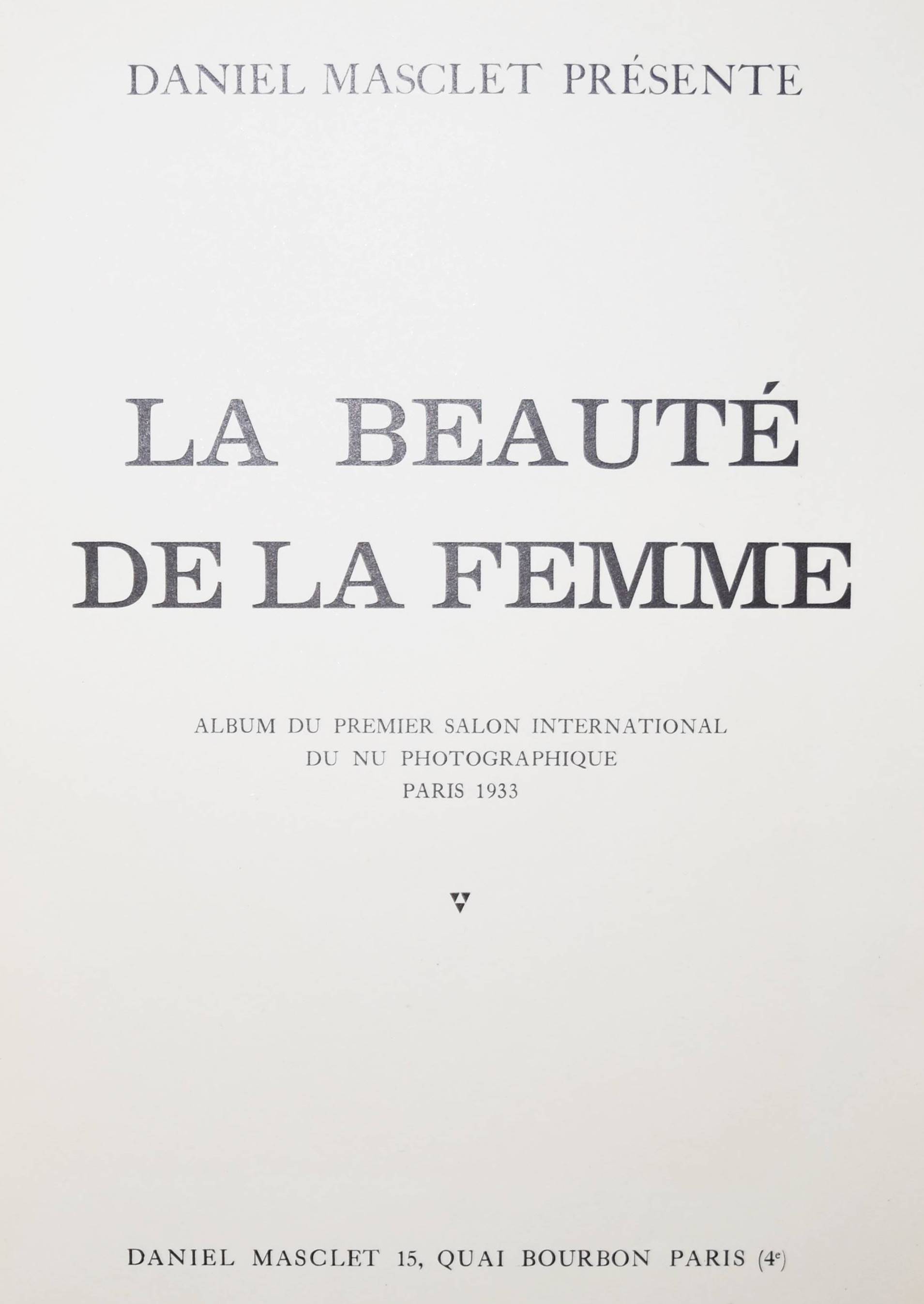 Masclet, Daniel (Ed.). Nus. La beauté de la femme. Album du premier salon international du nu photographique, Paris 1933. Paris, Daniel Masclet 1933. Gr.-4° (32 x 24 cm.). [2] Bl., 96 Tafeln in Kupfertiefdruck, [2] Bl. Orig.-Kartonumschlag mit Kordelheftung (als Blockbuch gebunden). Bertolotti 72 f. Bouqueret, Paris 133 ff. – Einzige Ausgabe. – Mit hervorragenden Akt-Aufnahmen von: Jean Moral, Carlo Leonetti, Drtikol, J. Schuwerack, Andreas Feininger, Gilchrist, Denes Ronay, Manasse, Peter Weller, Christian Aegerter, Ewald Hoinkis, Ludwig Harren, Bruno Schultz, Alfred Grabner, Alois Zych, Jan de Meyere, Willy Zielke, Pietro Sacchi, Pierre Boucher, Frank Davis, Ergy Landau, Bernard Leedham, Hans Robertson, Forman Hanna, Richardson-Cremer, Pecsi, Walter Sussmann, H. v. Perckhammer, Charles Hurault, A. Keith Dannatt, J. Capstack, Nickolas Boris, Baccarini, Franz Fiedler, Franz Feiler, Walden Hammond, Marcel Meys, J. Dudley-Johnston, L. Caillaud, Fred P. Peel, Laure Albin-Guillot, Yva, Man Ray, Moholy-Nagy, Harold Orne, Bertram Park, Maurice Beck, Evansmith, E.-O. Hoppe, Daniel Masclet, William Mortensen, George Platt Lynes, Kalman Szollosy und Verneuil. – „The catalogue contained female nudes by wellknown photographers, and some who were less so: two compositions by Man Ray. „Le Violin d’Ingres“ and one of his innovative „solarizations“, which transformed the photographs into drawings; five works by Dritikol from the early 1930s; a refined torso by Laure Albin-Guillot; a remarkable image of a dancer showing split movements, by the well-known female fashion photographer Yva (who would later teach the secrets of the nude to the very young Helmut Newton); an image using a negative effect by Moholy-Nagy, and three female nudes by Platt Lynes. Male nudes were still barely known to the general public at this time“ (A. Bertolotti). – Rücken am Kapital restauriert, sehr gutes sauberes Exemplar.