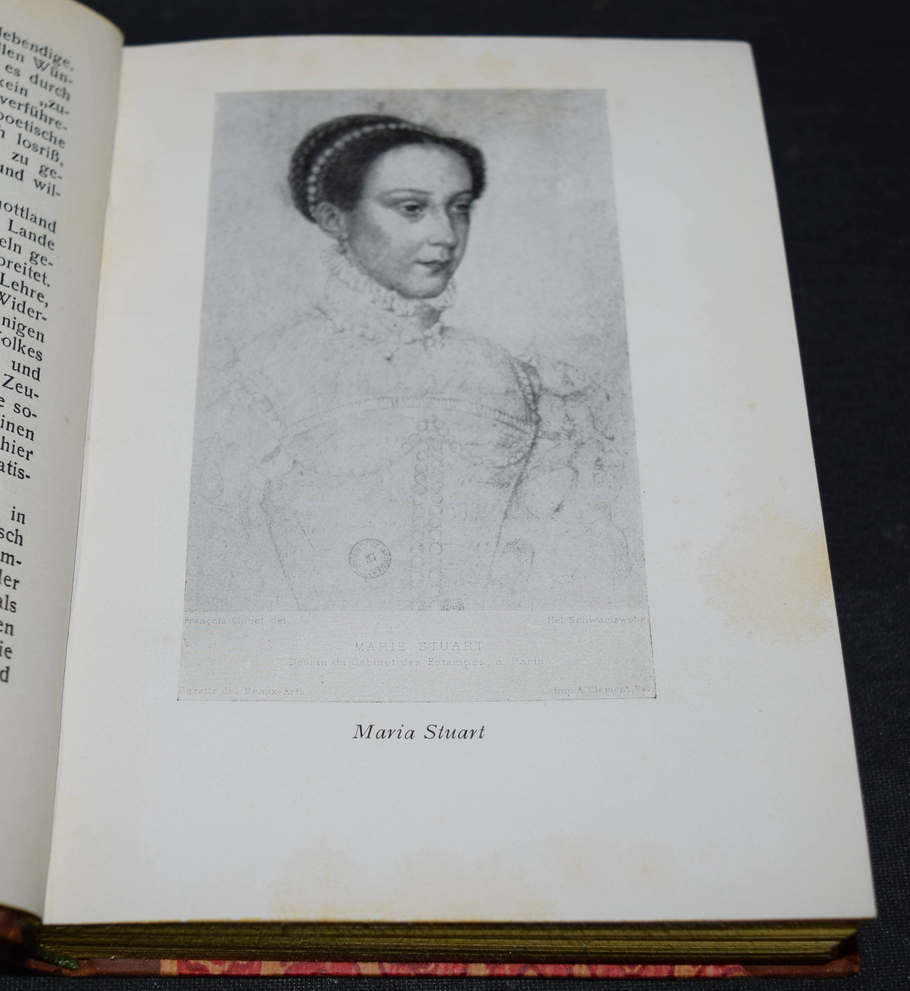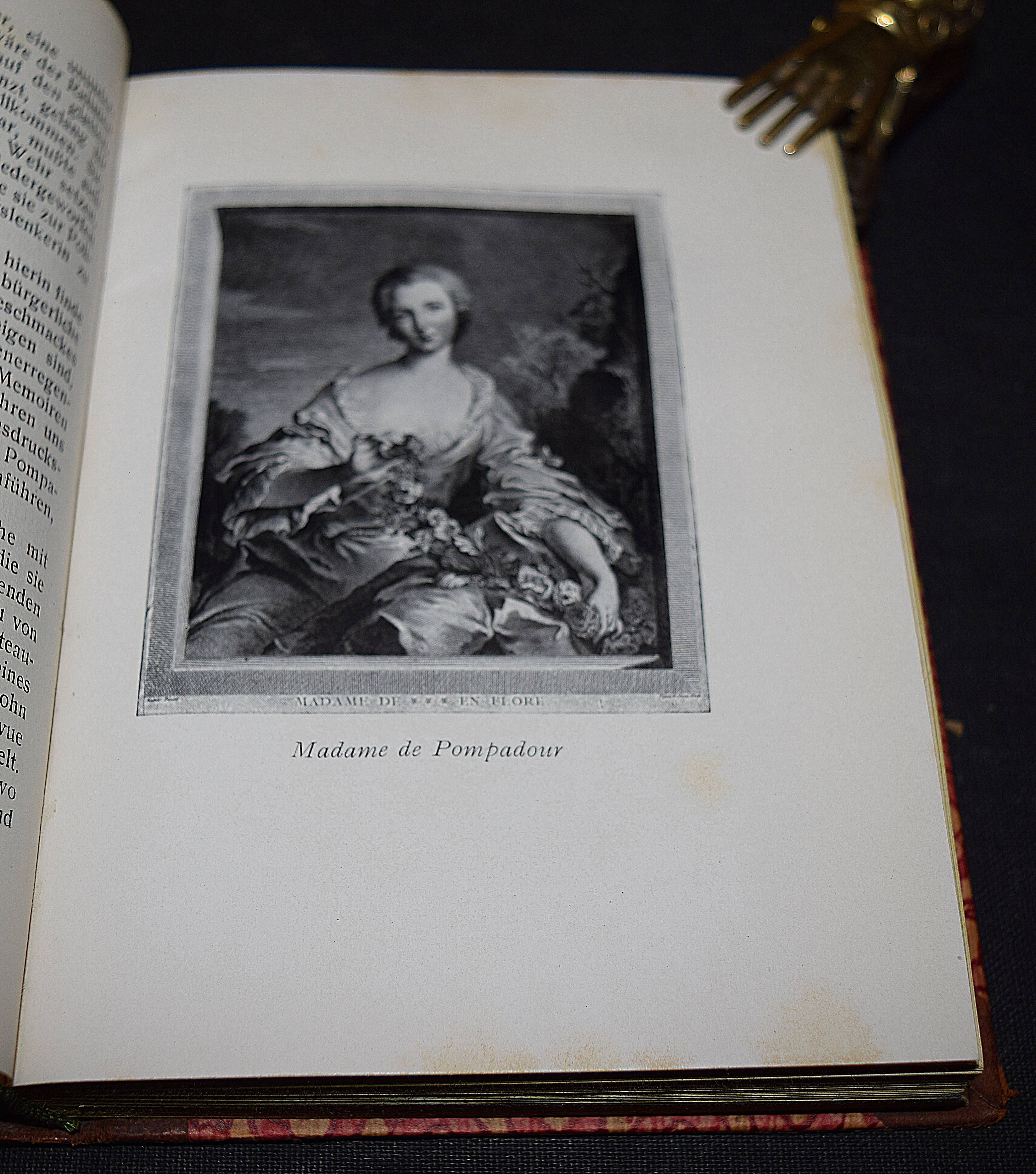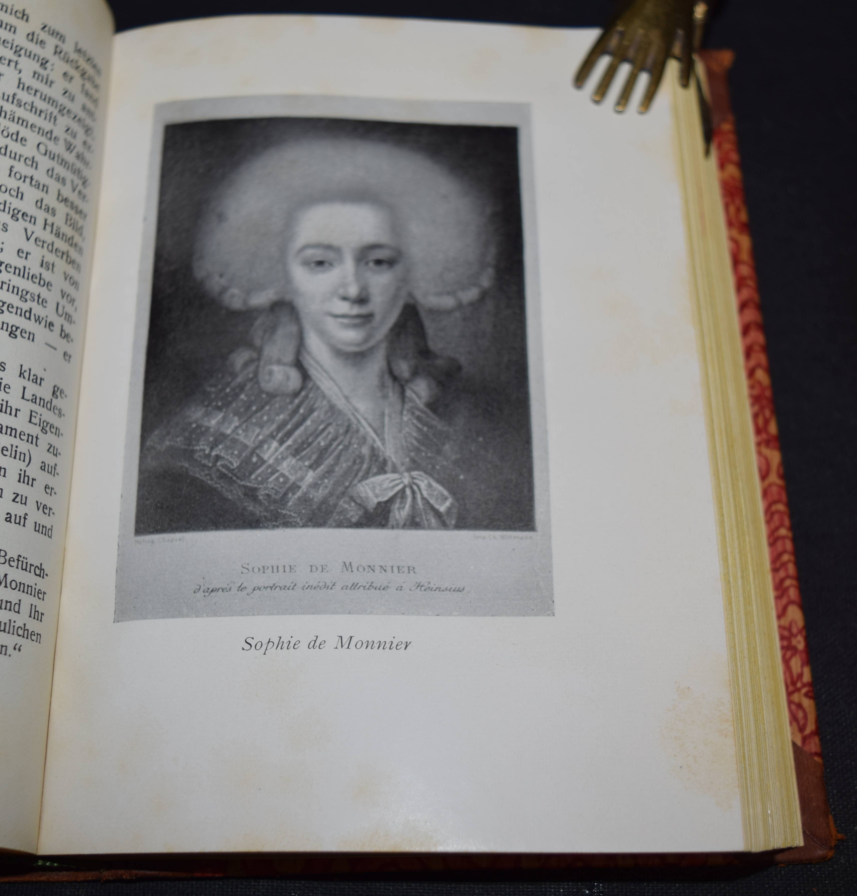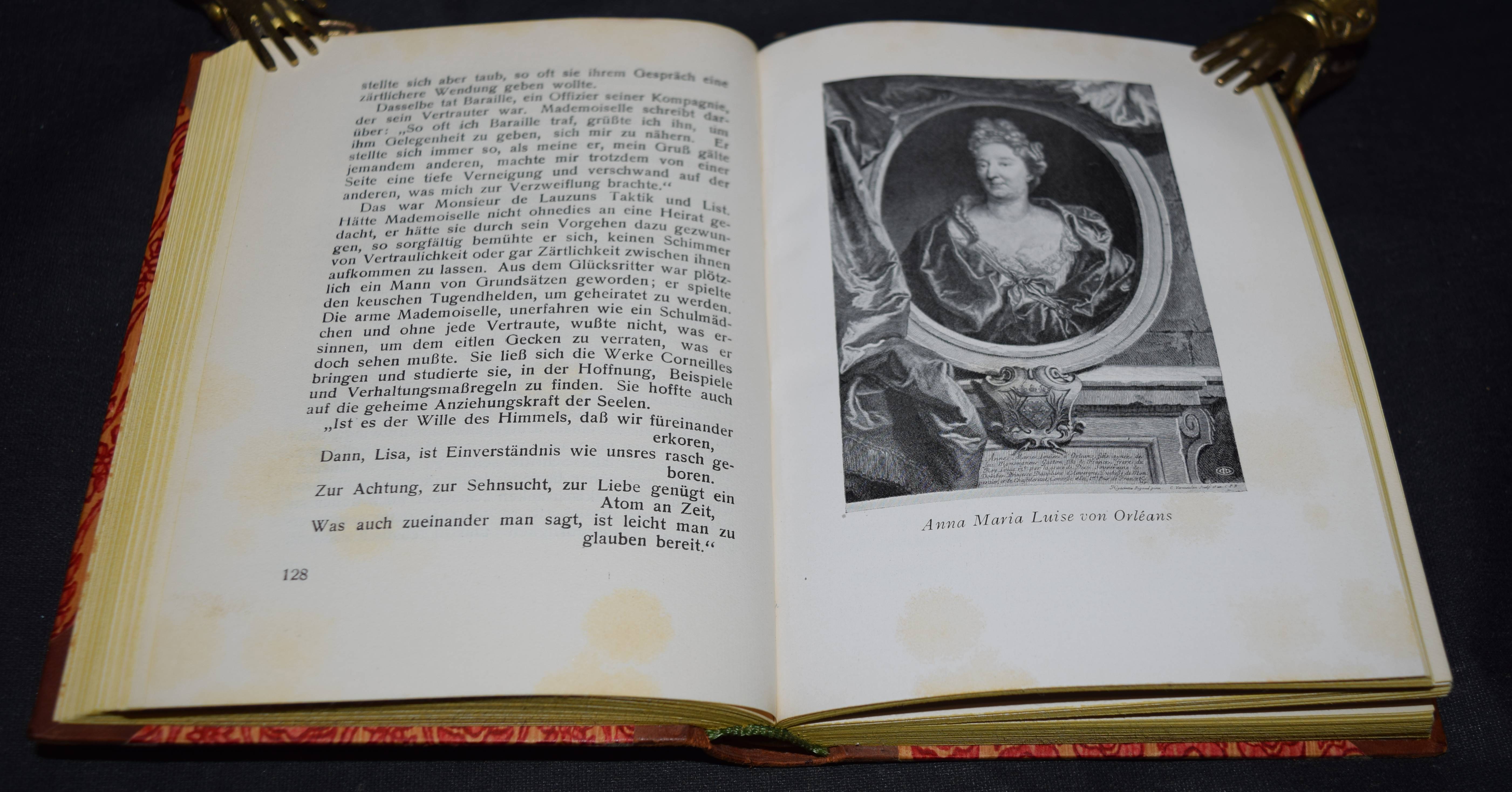 Sainte-Beuve, (Charles Augustin). Frauenbildnisse aus vier Jahrhunderten. (Deutsch von Stefanie Strizek mit einer Einleitung von Hanns Floerke). 3.-5. Tsd. 2 Bände. München, Georg Müller 1923. Kl.-8°. XV, 321, (3) S.; XVIII, 390 S. mit 34 Porträts. OHldr. mit goldgepr. Rückensch. u. dekorativer Rückenverg. Mit 22 Biographien, darunter Maria Stuart, Henriette von Orléans, Elisabeth Charlotte von der Pfalz, Ninon de l’Enclos, Marquise von Caylus, Madame de Pompadour, Marie Antoinette, Maria Antoinette, Maria Theresia und Bettina von Arnim. – Gelenke tewas berieben, Vorsätze u. Tafeln etwas braunfleckig, N.a.V., sonst gut erhalten.