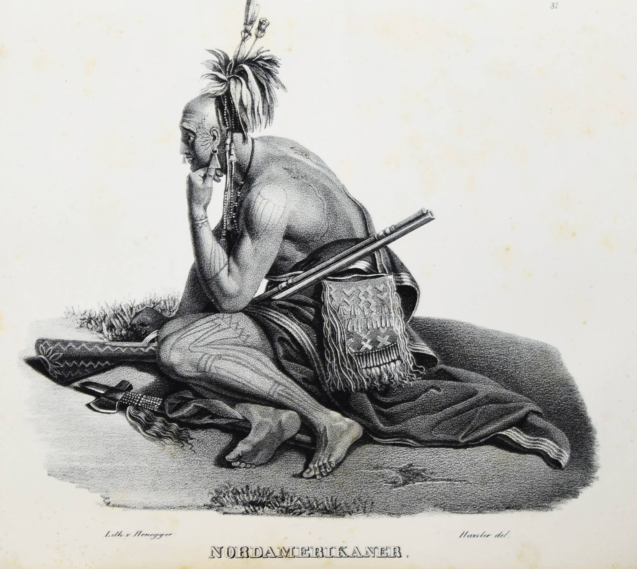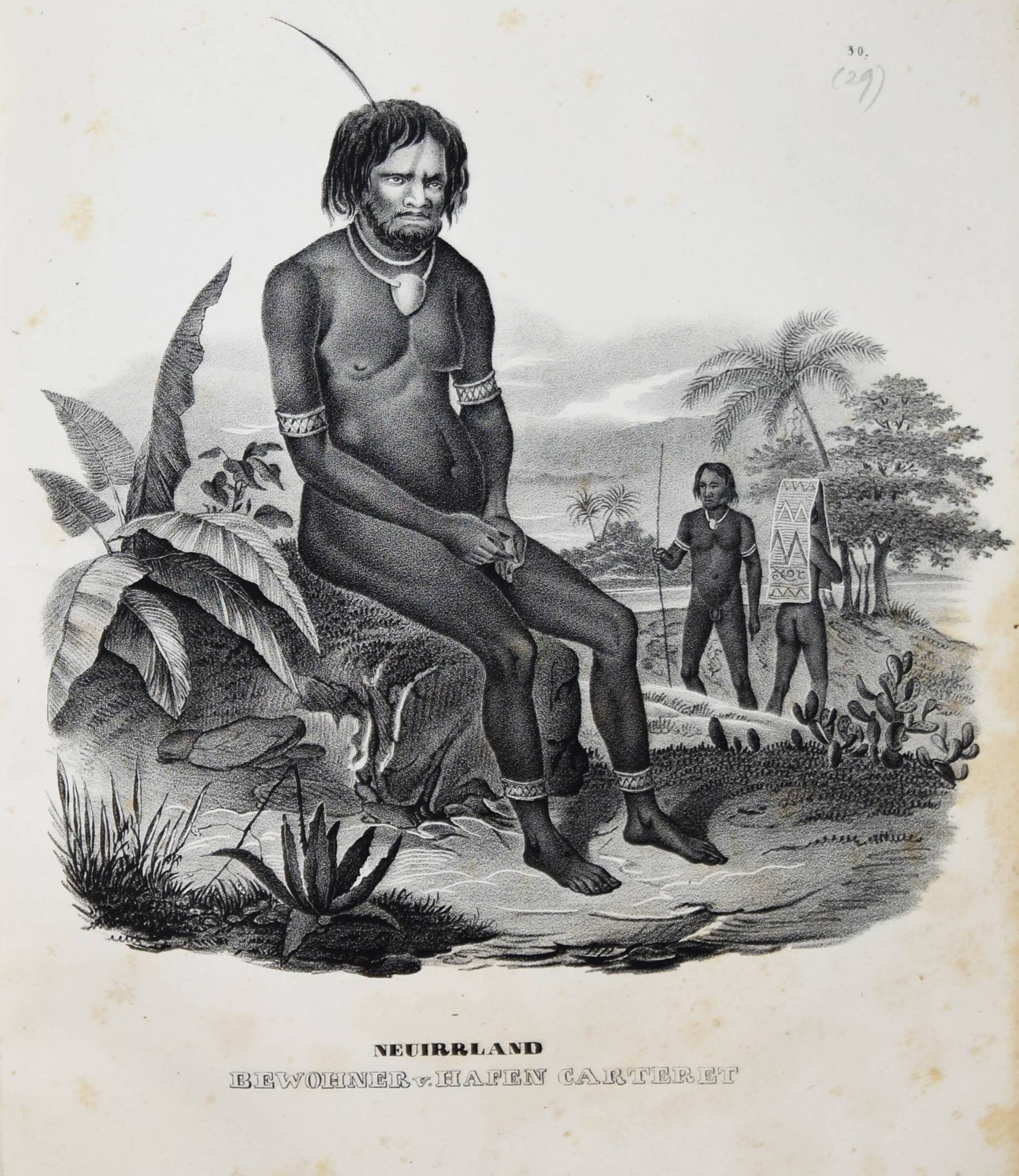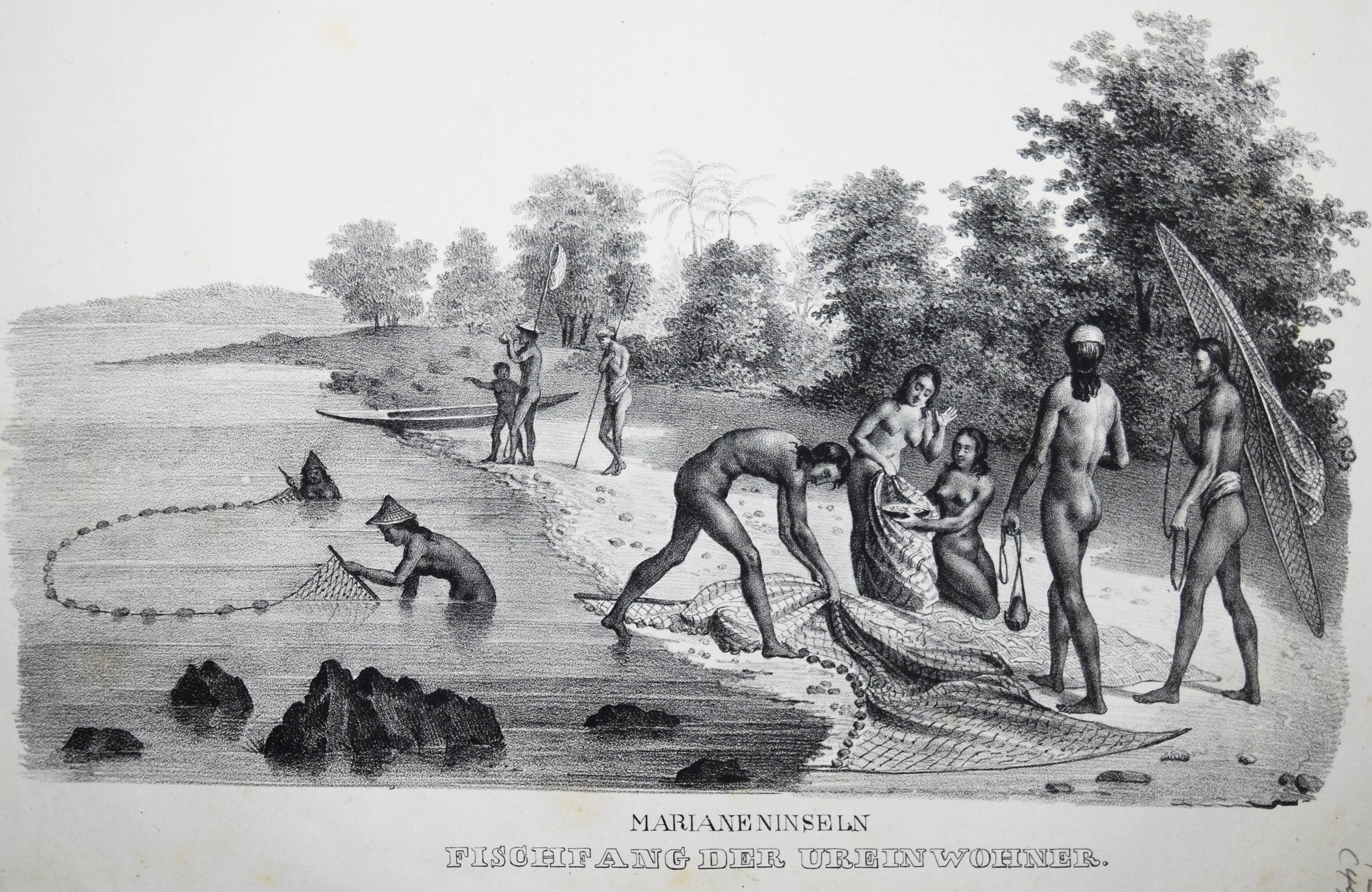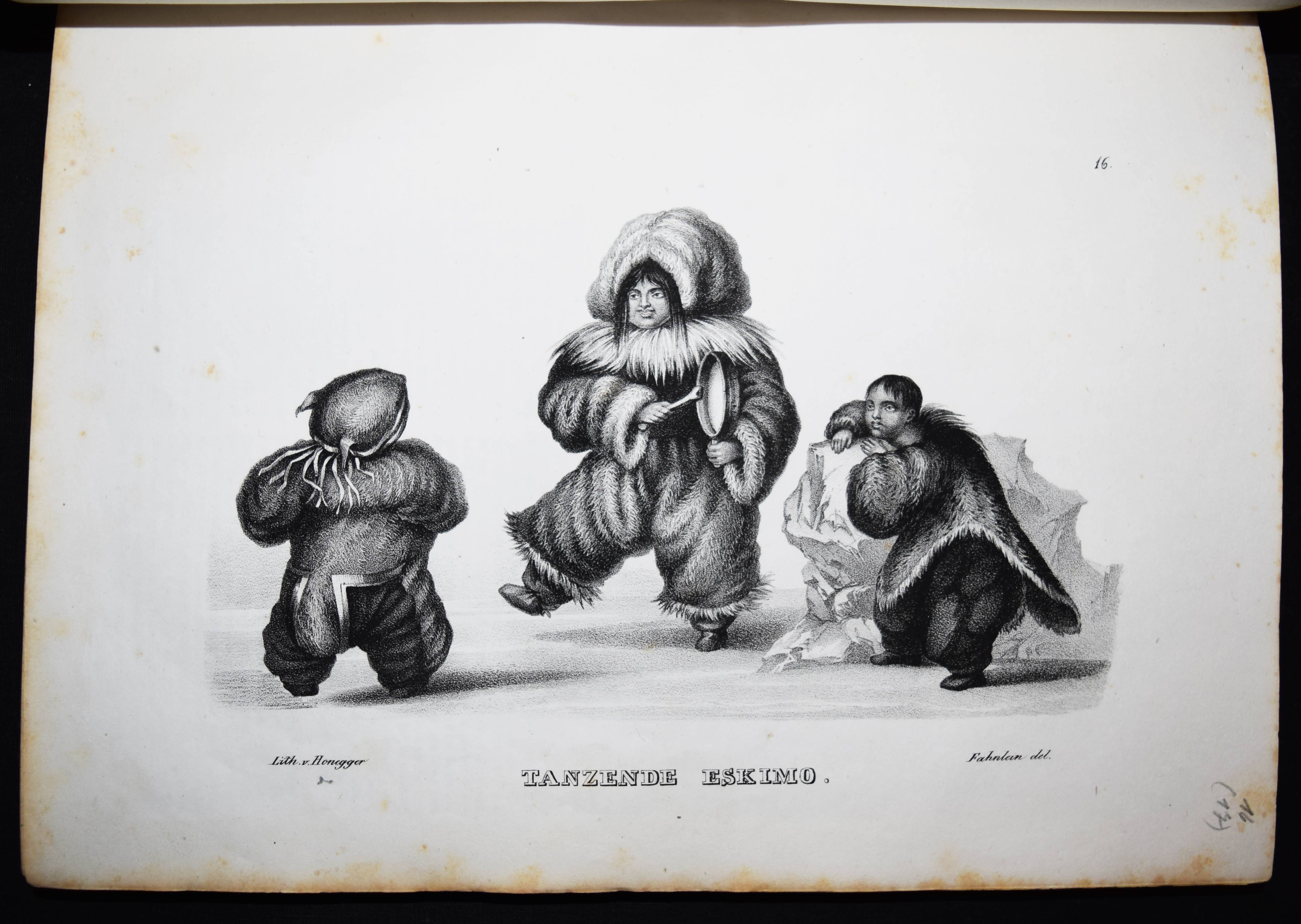Schinz, H(einrich) R(udolf). Naturgeschichte und Abbildungen der Menschen und der Säugethiere. Nach den neuesten Systemen und den besten Originalen bearbeitet. Band I u. II, 1 (von 3). Zürich, Brodtmann u. J. J. Honnegger 1824 u. (1834). Gr.-4° (33 x 24 cm.). [4] Bl.; 124 S. mit 63 lithogr. Tafeln von Fuchs, Scheuchzer, Wegner, Balder u. a.; VI, 417 S. Halblederband der Zeit mit goldgepr. Rückensch. u. dezenter Rückenverg. (Band I mit beigebundenen vord. Orig.-Lieferungsumschlag, „2. Heft“) Leemann-van Elck, Die zürcherische Buchillustration von den Anfängen bis um 1850, S. 207. Nissen, ZBI 3673 (Band II in 2. Ausg. von 1840). – Eines der schönsten Werke zur Naturgeschichte des 19. Jahrhunderts. – Ohne den Tafelband von Brodtmann zu den Säugetieren. – Die schönen Tafeln zeigen verschiedene Menschenrassen in ihren Trachten, darunter deutsche und ausländische Fürsten und Eingeborene aus allen Kontinenten (Georgier, Chinesen Tchonka spielend, Einheimische aus Mosambique und Bahia, Hottentotten, Patagonier, Javaner, Eskimos und Neuseeländer sowie Cooks „Auslandung zu Tannau“. Eine Tafel mit nordamerikanischen Indianern, gezeichnet von Karl Bodmer (1809-1893), der von 1832 bis 1834 mit Maximilian, Prinz zu Wied, das Innere Nordamerikas bereiste und mit Schinz in wissenschaftlichem Kontakt stand). – Heinrich Rudolf Schinz (1777-1861) kehrte nach seinem Studium der Medizin in Würzburg und Jena nach Zürich zurück. Er war Lehrer und auch Rektor der Industrieschule, Prof. für Zoologie an der neugegründeten Universität Zürich, Begründer und Konservator der Zürcher Zoologischen Sammlung, Oberrichter, Grossrat, Präsident der Naturforschenden Gesellschaft Zürich, Initiant, Mitgründer und später Präsident der Schweiz. Naturforschenden Gesellschaft. – Abweichend gebunden, Einbande etwas berieben, Band I ohne den lithogr. Titel, die Tafeln im Rand teils stärker finger- und braunfleckig, sonst nur stellenweise etwas braunfleckig und gebräunt, sonst gut erhalten.