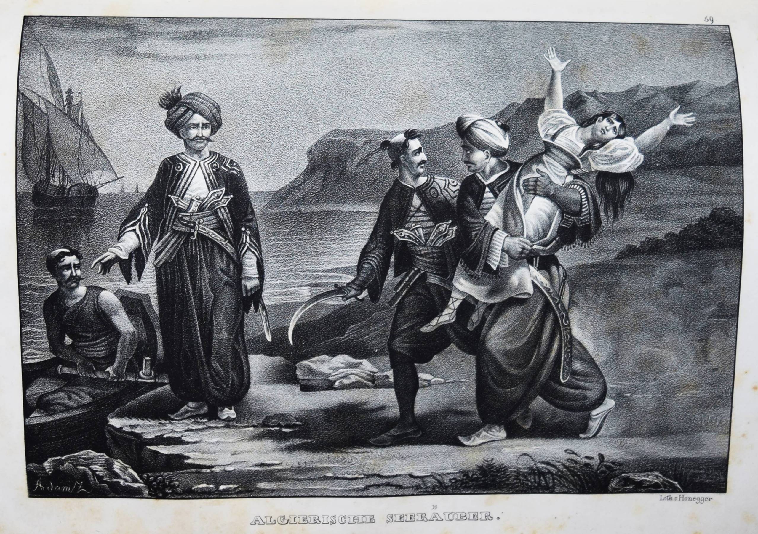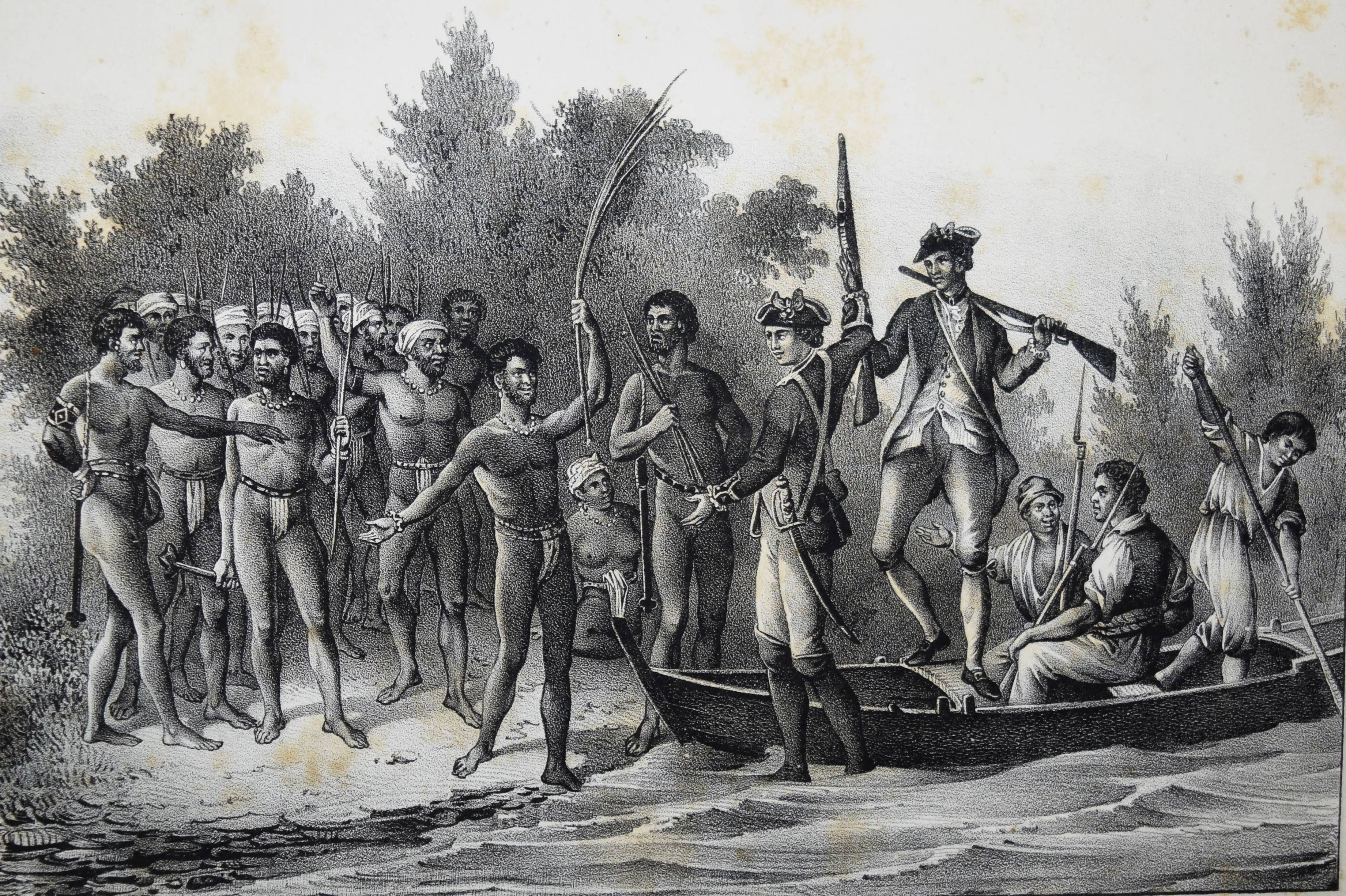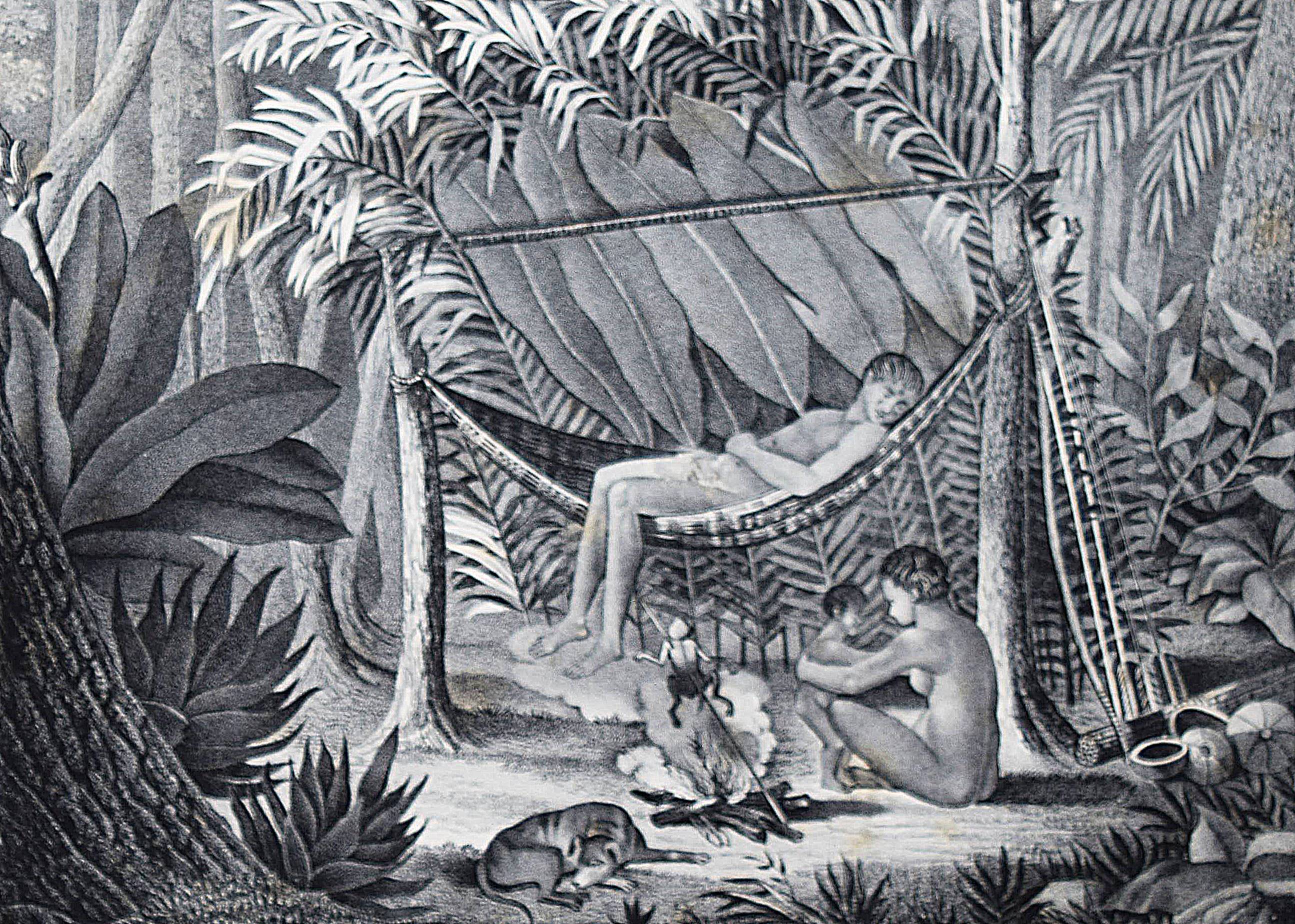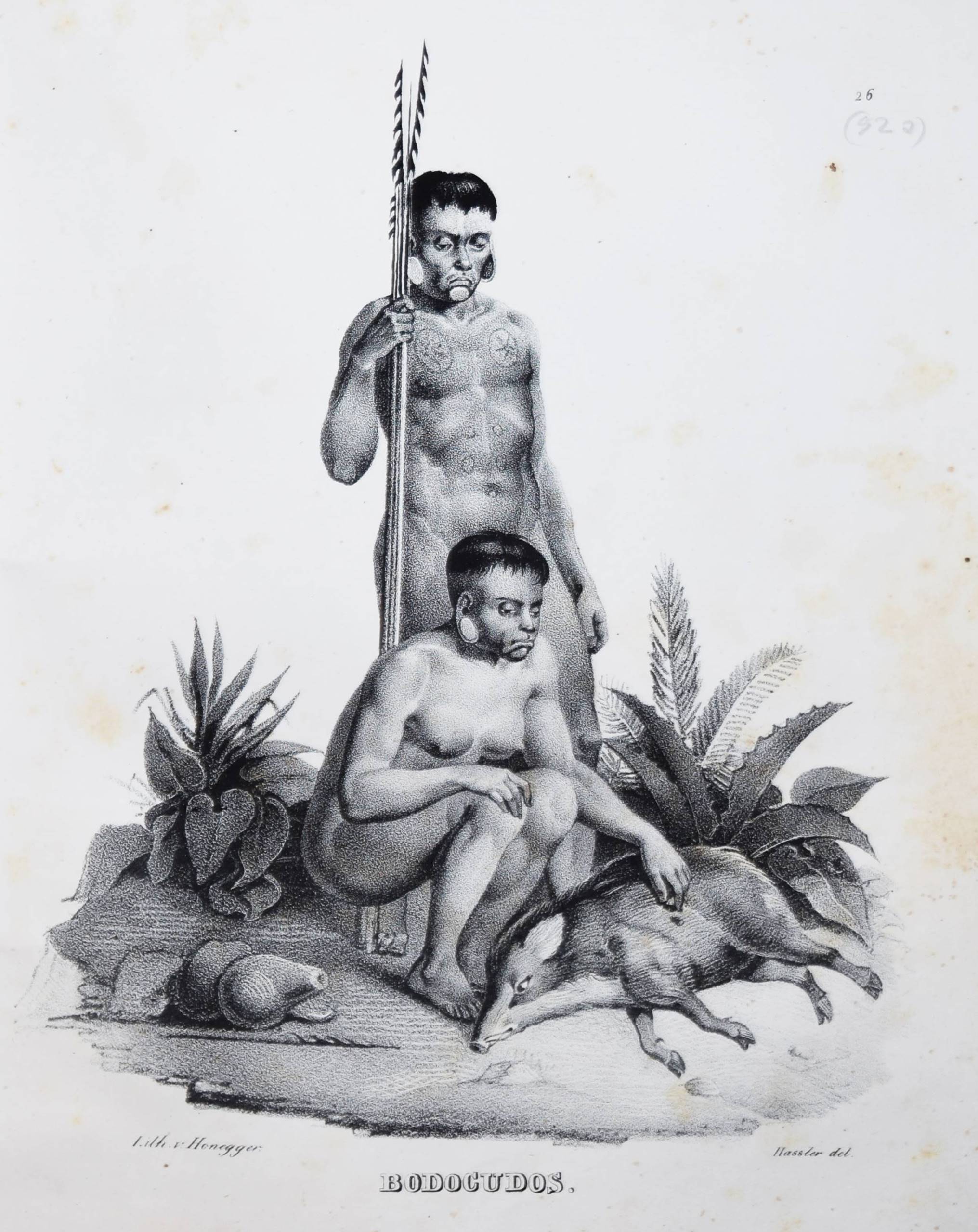 Schinz, H(einrich) R(udolf). Naturgeschichte und Abbildungen der Menschen und der Säugethiere. Nach den neuesten Systemen und den besten Originalen bearbeitet. Band I u. II, 1 (von 3). Zürich, Brodtmann u. J. J. Honnegger 1824 u. (1834). Gr.-4° (33 x 24 cm.). [4] Bl.; 124 S. mit 63 lithogr. Tafeln von Fuchs, Scheuchzer, Wegner, Balder u. a.; VI, 417 S. Halblederband der Zeit mit goldgepr. Rückensch. u. dezenter Rückenverg. (Band I mit beigebundenen vord. Orig.-Lieferungsumschlag, „2. Heft“) Leemann-van Elck, Die zürcherische Buchillustration von den Anfängen bis um 1850, S. 207. Nissen, ZBI 3673 (Band II in 2. Ausg. von 1840). – Eines der schönsten Werke zur Naturgeschichte des 19. Jahrhunderts. – Ohne den Tafelband von Brodtmann zu den Säugetieren. – Die schönen Tafeln zeigen verschiedene Menschenrassen in ihren Trachten, darunter deutsche und ausländische Fürsten und Eingeborene aus allen Kontinenten (Georgier, Chinesen Tchonka spielend, Einheimische aus Mosambique und Bahia, Hottentotten, Patagonier, Javaner, Eskimos und Neuseeländer sowie Cooks „Auslandung zu Tannau“. Eine Tafel mit nordamerikanischen Indianern, gezeichnet von Karl Bodmer (1809-1893), der von 1832 bis 1834 mit Maximilian, Prinz zu Wied, das Innere Nordamerikas bereiste und mit Schinz in wissenschaftlichem Kontakt stand). – Heinrich Rudolf Schinz (1777-1861) kehrte nach seinem Studium der Medizin in Würzburg und Jena nach Zürich zurück. Er war Lehrer und auch Rektor der Industrieschule, Prof. für Zoologie an der neugegründeten Universität Zürich, Begründer und Konservator der Zürcher Zoologischen Sammlung, Oberrichter, Grossrat, Präsident der Naturforschenden Gesellschaft Zürich, Initiant, Mitgründer und später Präsident der Schweiz. Naturforschenden Gesellschaft. – Abweichend gebunden, Einbande etwas berieben, Band I ohne den lithogr. Titel, die Tafeln im Rand teils stärker finger- und braunfleckig, sonst nur stellenweise etwas braunfleckig und gebräunt, sonst gut erhalten.