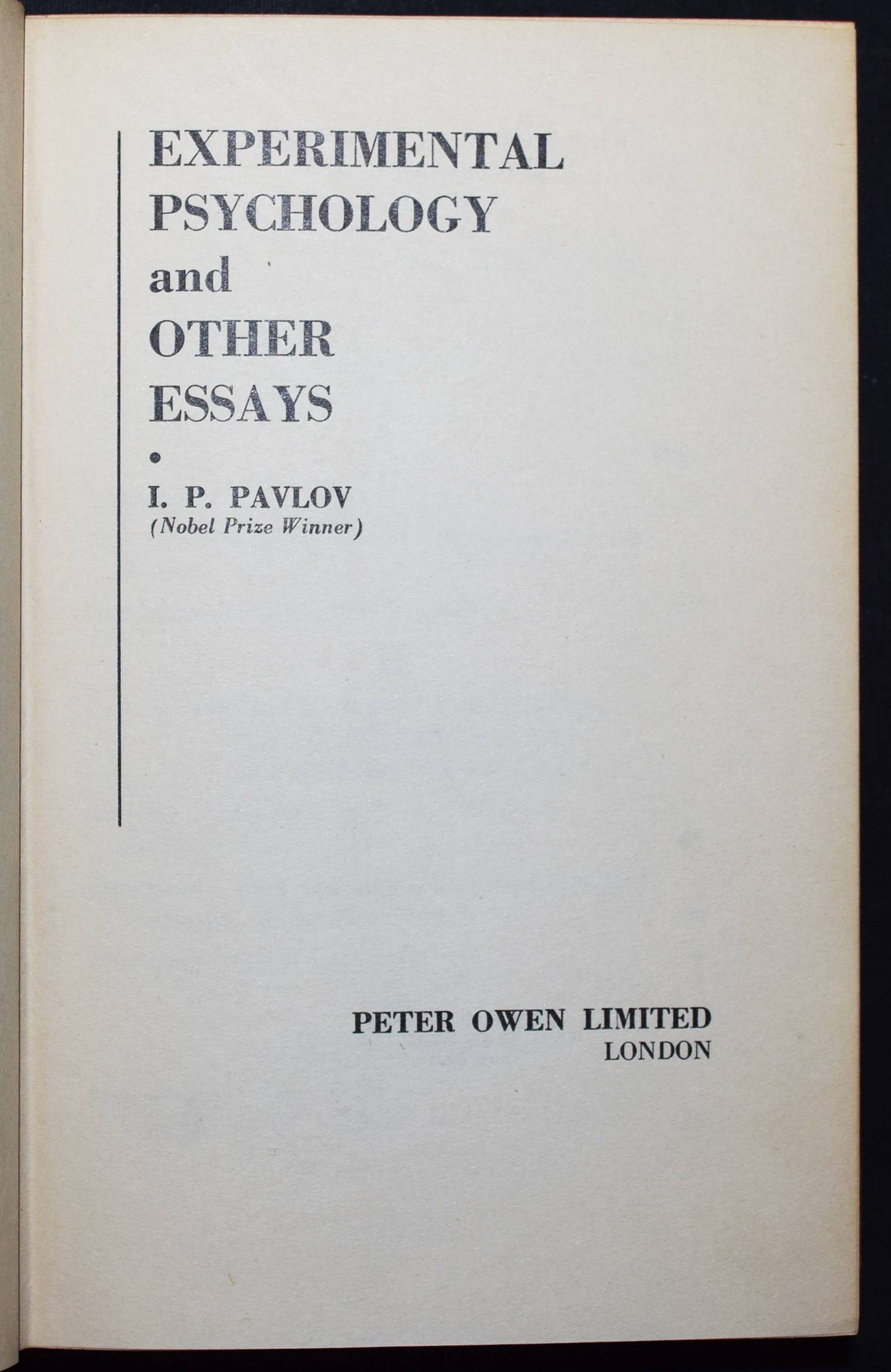 Pavlov, I(van) P(etrovich). Experimental Psychology, and other essays. London, Peter Owen (1958). 8°. 653 S. mit Portrait u. 3 Tafeln. OLn. mit OU. Schutzumschlag am Rücken etwas gebräunt und fleckig, gutes Exemplar.