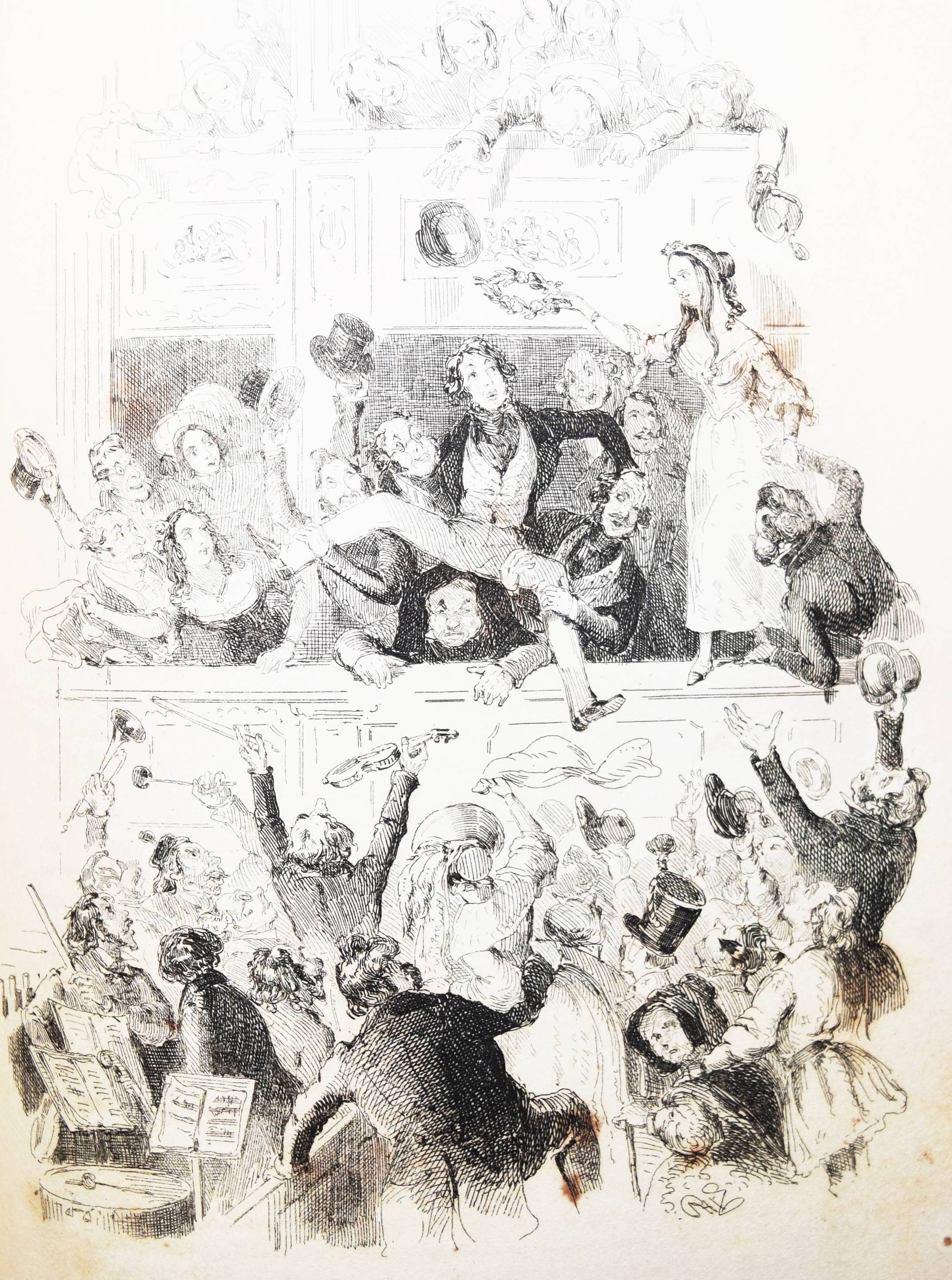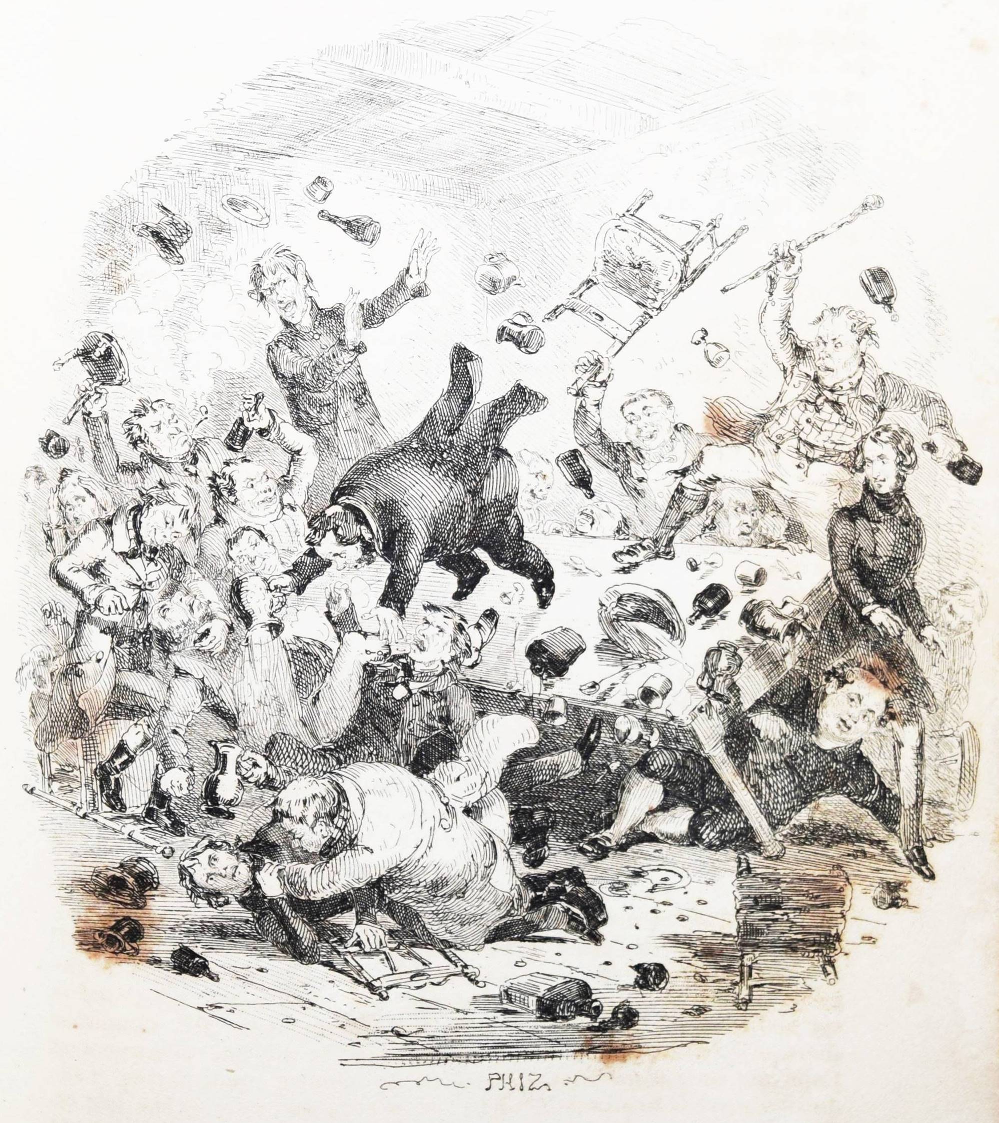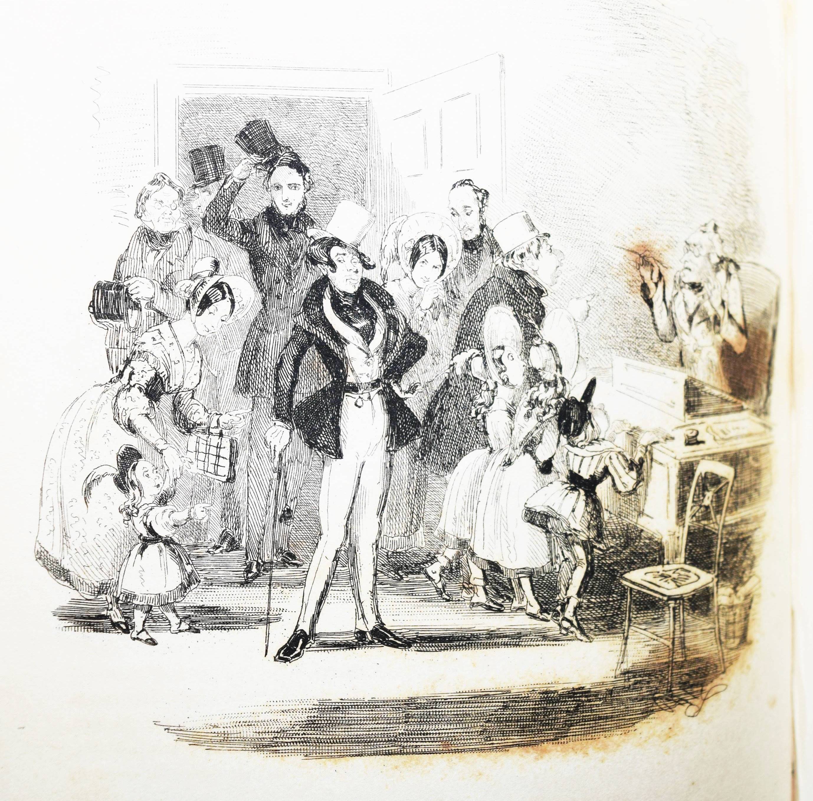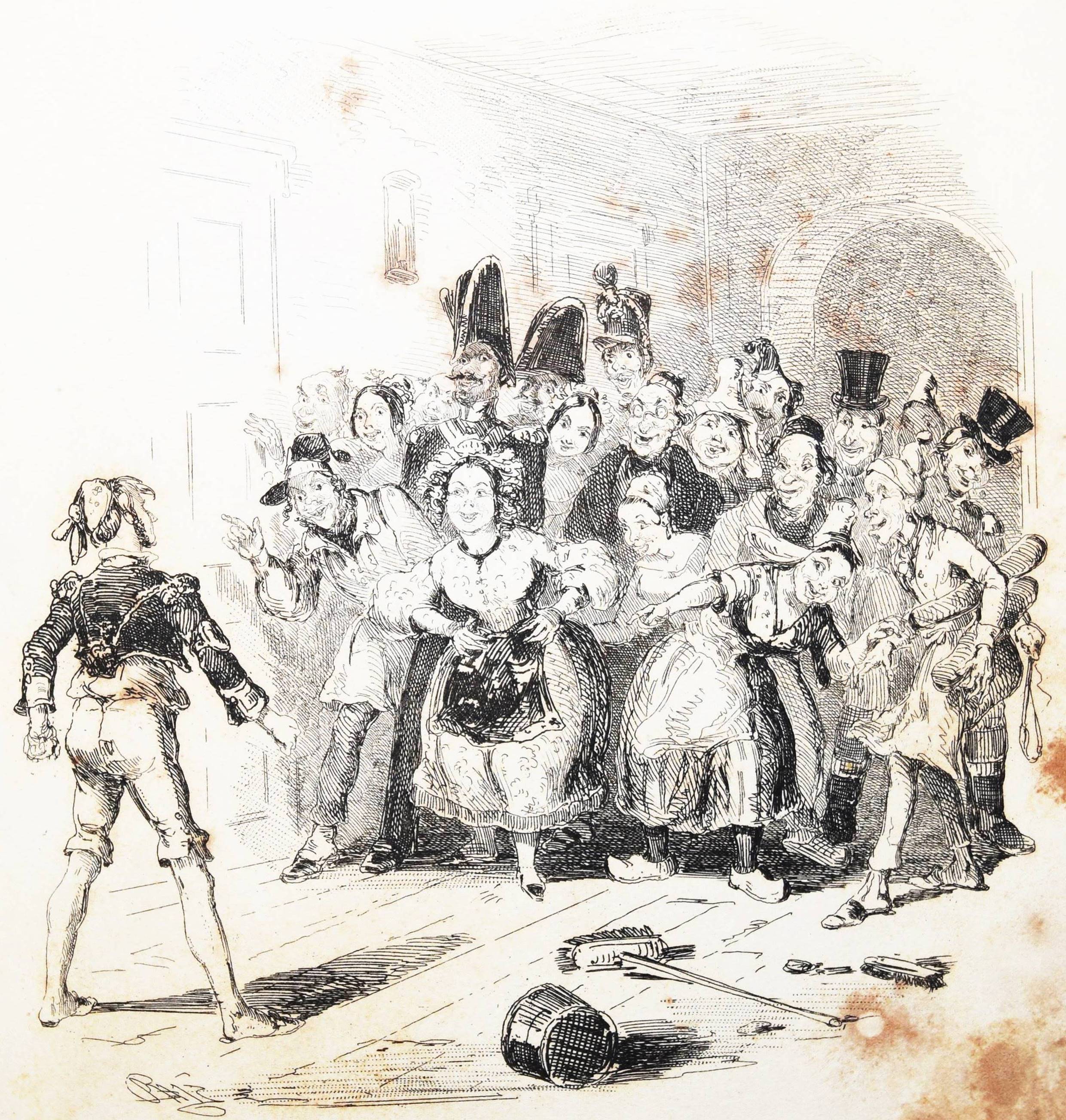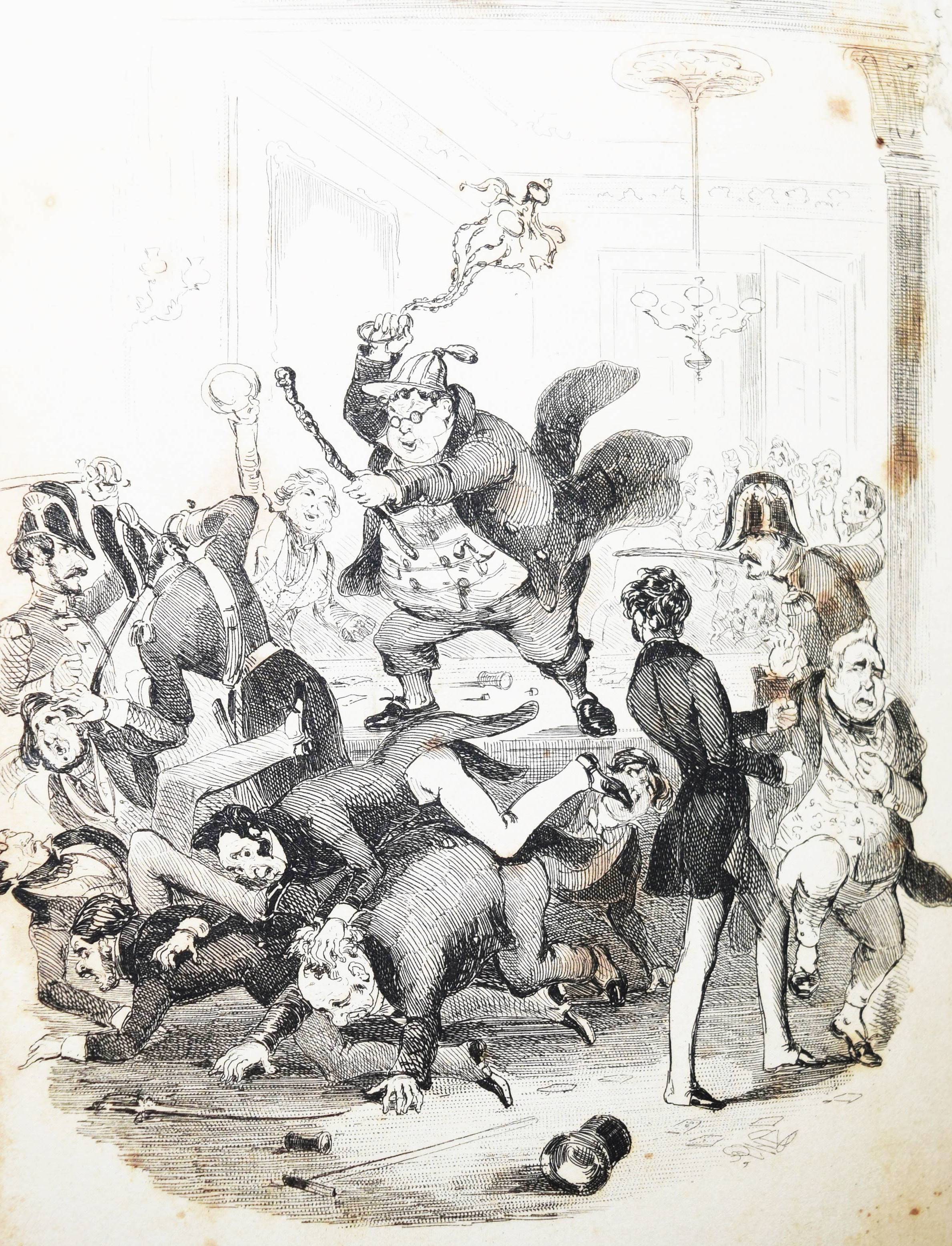 (Lever, Charles James). The confessions of Harry Lorrequer. With numerous illustrations by Phiz (d. i. Hablot Knight Browne). Dublin, W. Curry 1839. 8°. Gestoch. Frontispiz, gestoch. illustr. Titel, XV, 344 S. mit 20 Radierungen. Hldr. d. Zt. mit goldgepr. Rückentitel u. Rückenvergoldung. Seltene erste Buch-Ausgabe des humoristischen Romans, der in Dublin und München spielt. Der Roman wurde zuerst 1837 ff. im Dublin University Magazine veröffentlicht. Es handelt sich um den ersten Roman des irischen Schriftstellers und Mediziners C. J. Lever (1806-1872). – Die seinerzeit sehr erfolgreichen Romane spielen oft im Studenten-Milieu. Lever hatte bevor er sein Medizinstudium in Dublin begann, bereits Kanada und Deutschland bereist, wo er sich in Jena als Student ausgab und Goethe getroffen hat. – Der berühmte englische Illustrator H. K. Browne (Phiz) wurde besonders durch seine Illustrationen der Werke seines Freundes C. Dickens bekannt. – Vord. Innengelenk etwas angeplatzt, das Frontispiz, der illustrierte Titel und die Tafeln teils stärker braunfleckig, gutes dekorativ gebundenes Exemplar.
