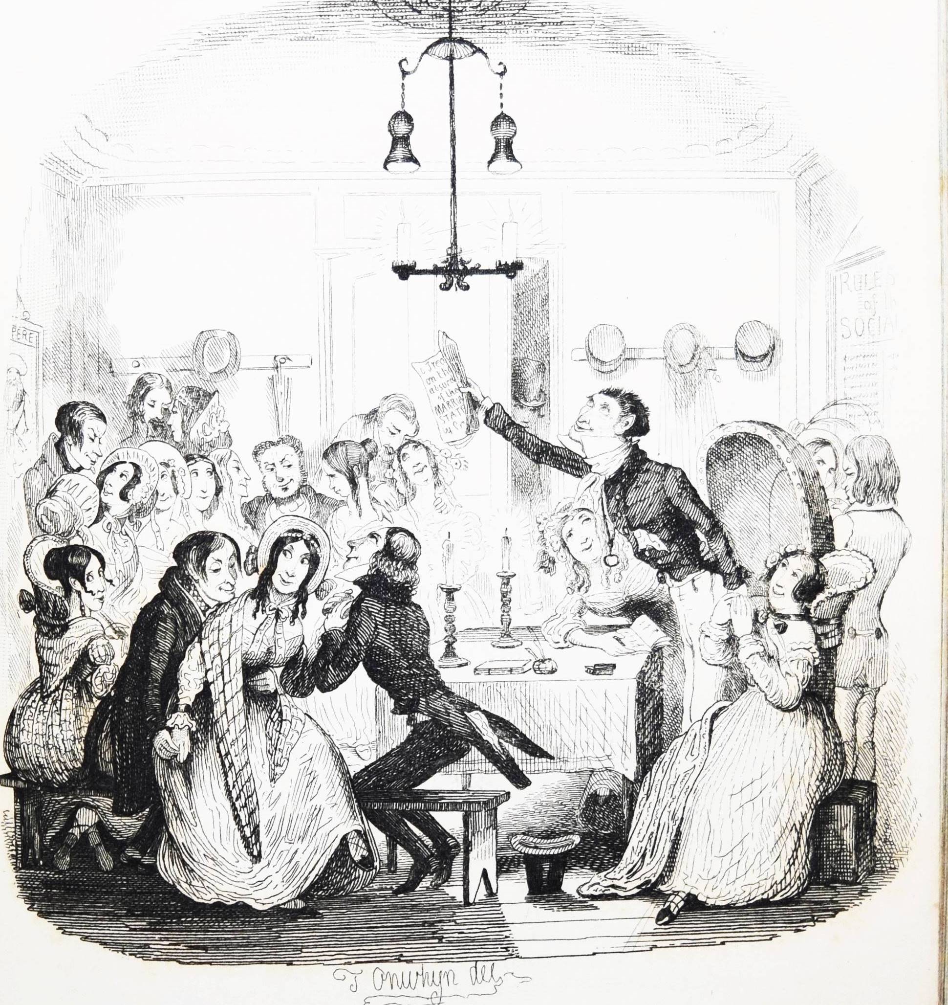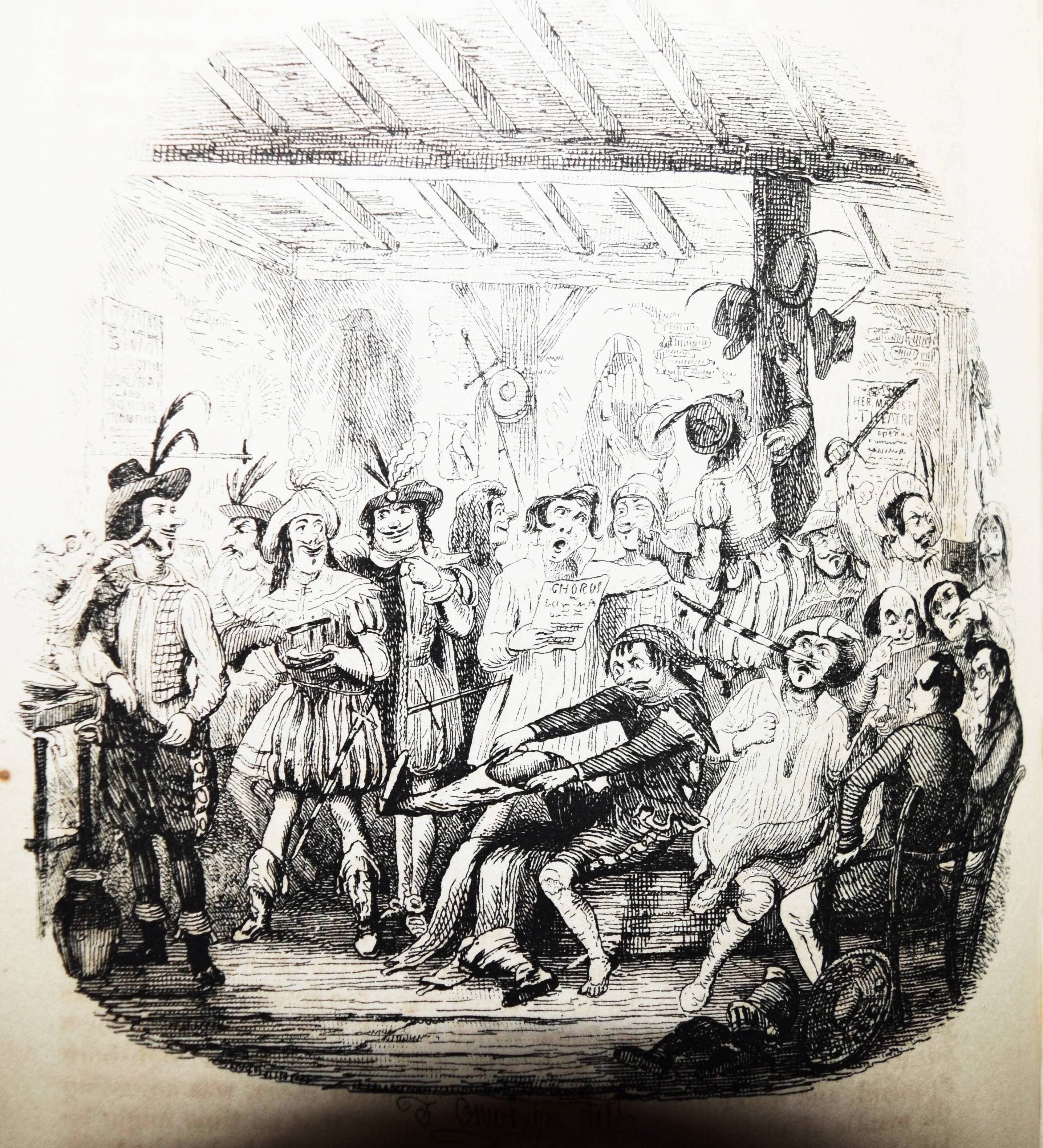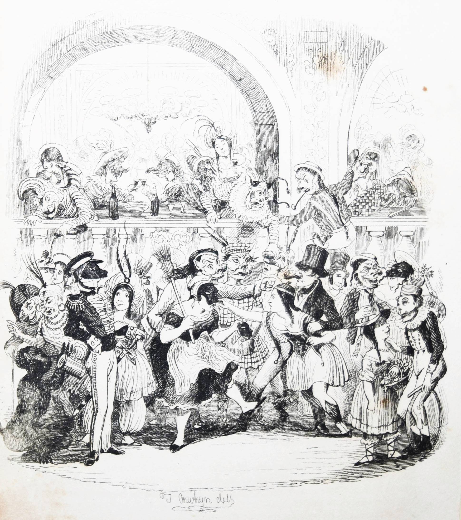 Cockton, Henry. Life and adventures of Valentine Vox, the ventriloquist. London, Willoughby and Co. 1848. 8°. XX, 620 S. mit gestoch. Frontispiz, gestoch. illustr. Titel u. 60 gestoch. Tafeln von T(homas) Onwhyn. Hldr. mit goldgepr. Rückenschild u. Rückenverg. Zweite Ausgabe. – Erschien zuerst 1839 bis 1840 in Lieferungen. – „Popularised by Charles Dickens, it was an immediate success, enjoying great popularity and acclaim. Illustrations by Thomas Onwhyn were a prominent feature of this, and most of Henry Cockton’s later novels. The first three chapters are set ‚in one of the most ancient and populous boroughs in the county of Suffolk‘, a thinly disguised Bury St. Edmunds… Valentine Vox was lauded as one of most amusing and entertaining works of the year, rivalling the popularity of Dickens’s novels“ (Wikipedia). – Frontispiz, der illustr. Titel und die Tafeln etwas fleckig, gutes dekorativ gebundenes Exemplar.