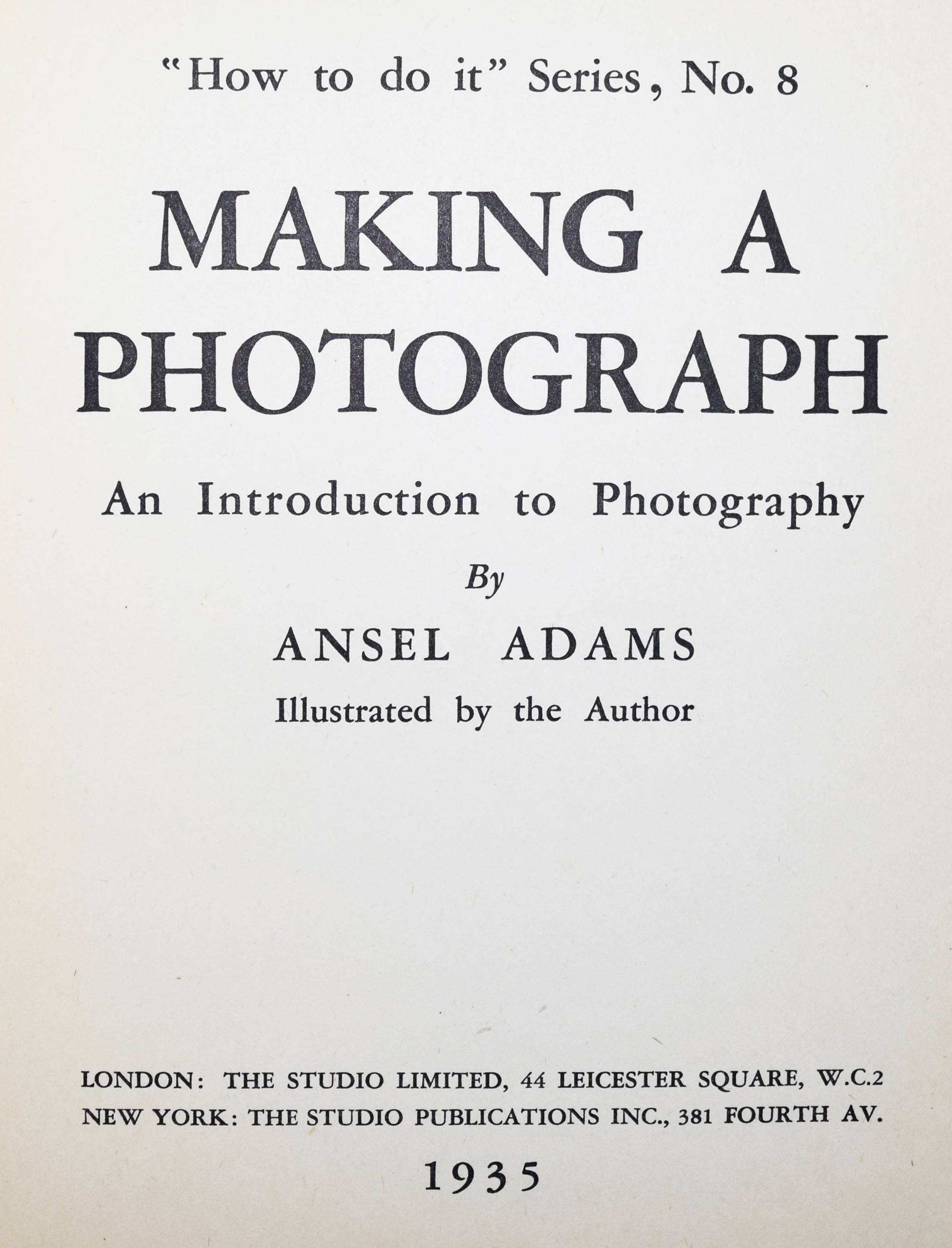 Adams, Ansel (Easton). Making a photograph. An introduction to photography. Illustrated by the author. London, New York, The Studio 1935. Gr.-8°. 96 S. mit 33 mont. Autotypien. Illustr. Orig.-Halbleinenband. (″How to do it“ series, vol. 8). Roosens and Salu 60. – Seltene erste Ausgabe der zweiten Buch-Veröffentlichung (nach „Taos Pueblo“, 1930) des berühmten amerik. Fotografen. – Die hervorragenden Tafeln sind auf dünnes Papier gedruckt und lackiert, dadurch wirken sie wie Orig.-Abzüge. – „Die Photos sind so gut wiedergegeben, dass ein Buchladen „Making a Photograph“ vor ein paar Jahren als „mit Originalphotos ausgestattet“ bewarb und zu einem Preis von 3500 Dollar anbot! Natürlich wies ich die Leute sofort auf ihren Fehler hin“ (Ansel Adams, Autobiographie, München 1987, S. 174). – „Ansel Adams (1902-1984) strebte Zeit seines Lebens grösstmögliche Tiefenschärfe und Detailzeichnung an. Mit dem vorliegenden Lehrbuch erreichte er mit dieser Forderung erstmals internationale Anerkennung. Das Buch ist für die ausserordentliche Qualität der darin montierten Drucke bekannt, einige davon zählen heute zu den Ikonen der Photographie … Die vorliegende Erstausgabe von 1935 unterscheidet sich erheblich von der 1939 erschienenen «revised edition»“ (H. R. Gabathuler). – Einband etwas berieben, Kapital unauffällig restauriert, sonst gut erhalten. – Rare first edition of the second book publication (after “Taos Pueblo”, 1930) by the famous American photographer. Photographer. – The excellent plates are printed on thin paper and varnished, making them look like original prints. – “The photos are so well reproduced that a bookstore advertised ‘Making a Photograph’ a few years ago as ‘equipped with original photos’ and offered it at a price of 3500 dollars! Of course, I immediately pointed out their mistake” (Ansel Adams, Autobiography, Munich 1987, p. 174). – “Throughout his life, Ansel Adams (1902-1984) strove for the greatest possible depth of field and detail. With this textbook, he achieved international recognition for the first time. The book is known for the exceptional quality of the prints mounted in it, some of which are among the icons of photography today … This first edition from 1935 differs considerably from the “revised edition” published in 1939” (H. R. Gabathuler). – Binding somewhat rubbed, capital inconspicuously restored, otherwise in good condition.