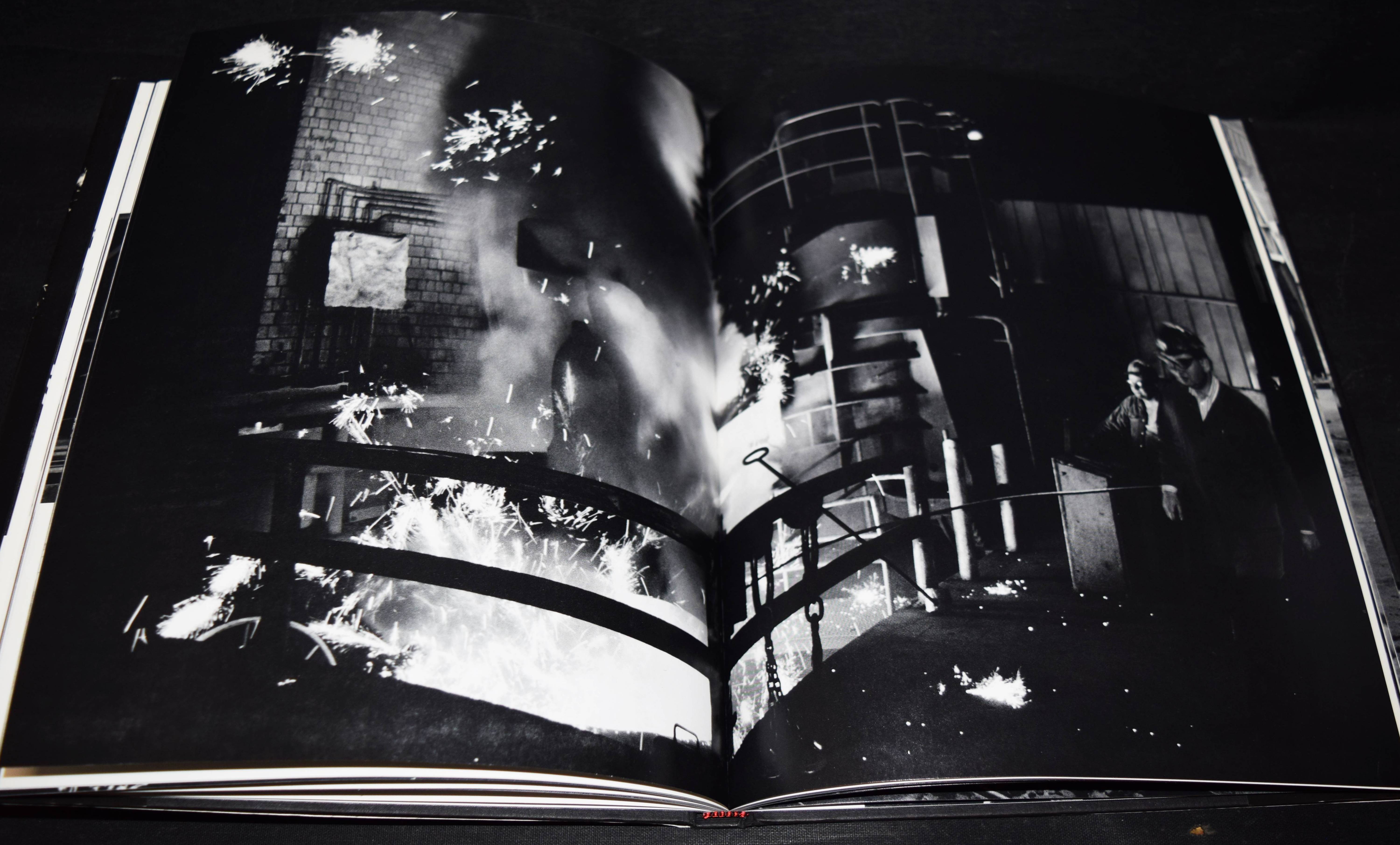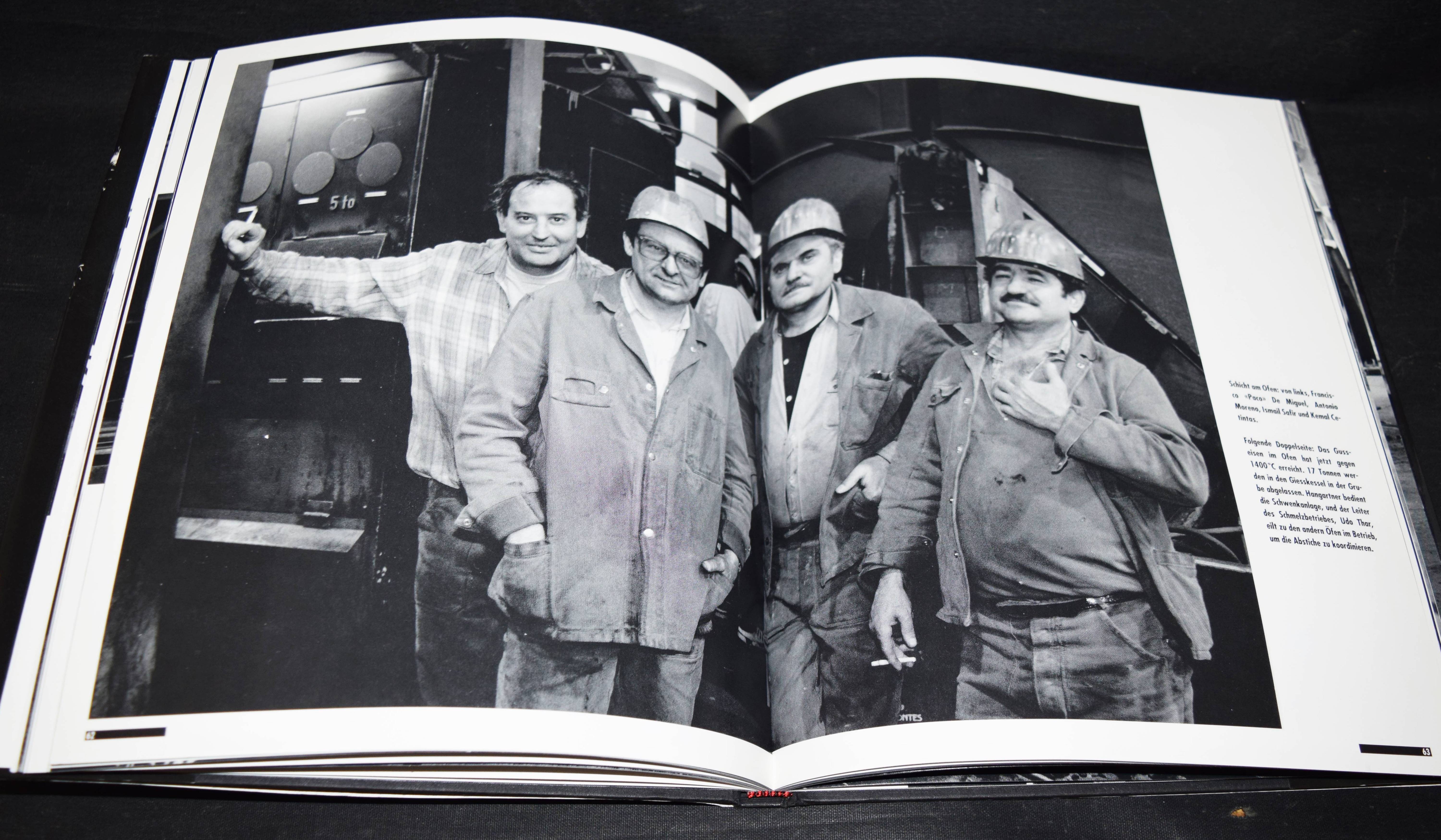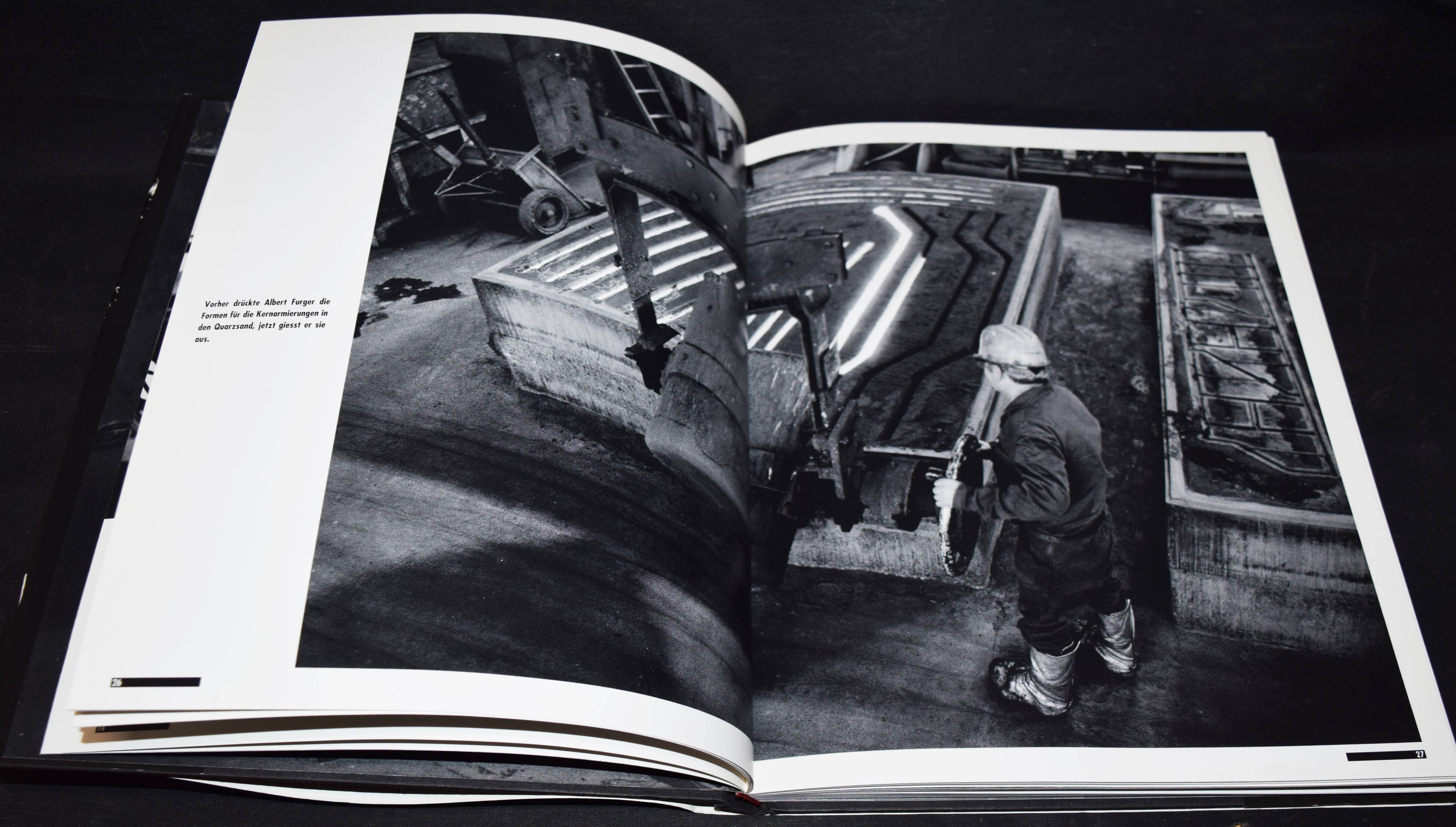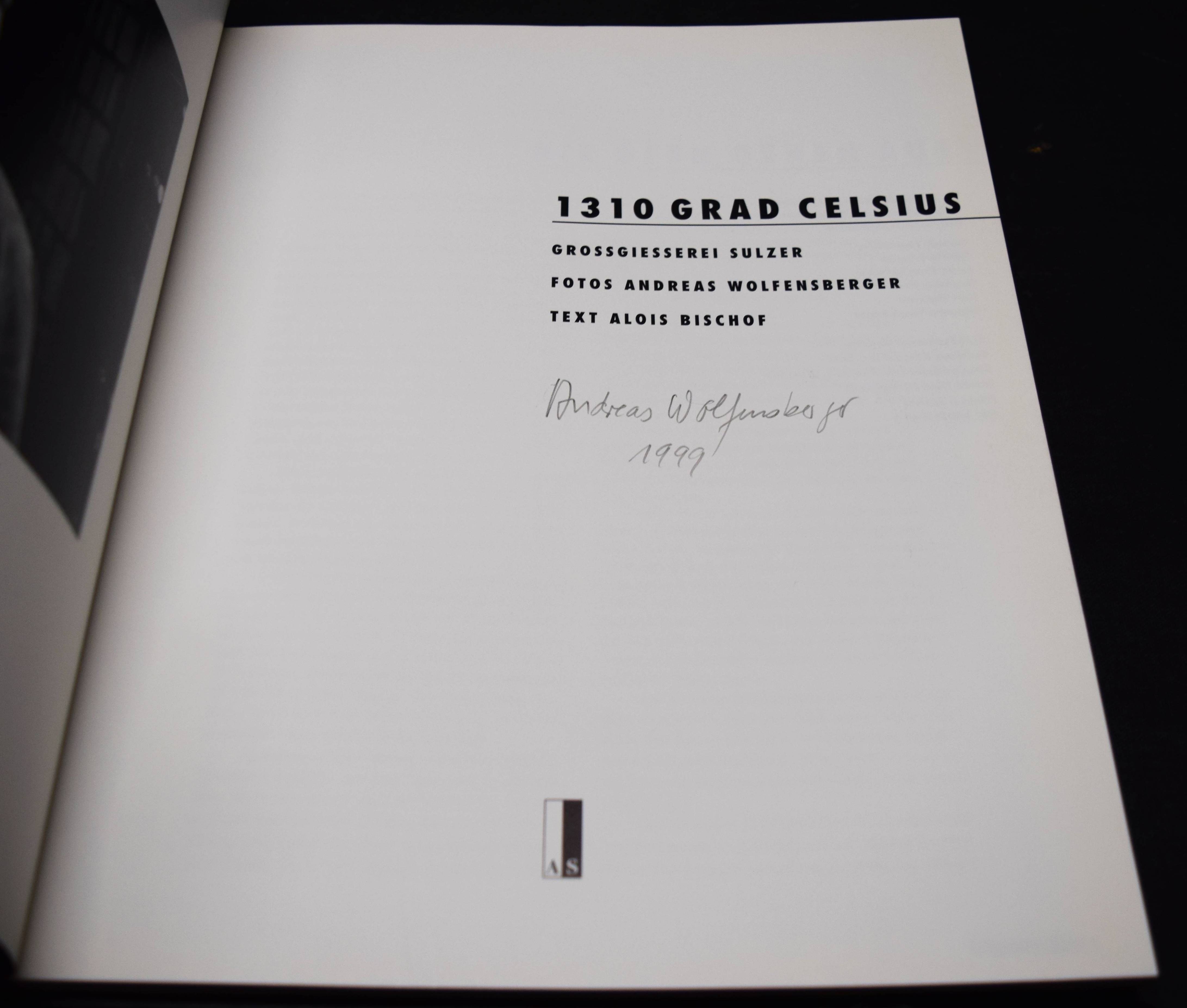 Wolfensberger – Bischof, Alois. 1310 Grad Celsius. Grossgiesserei Sulzer. Fotos: Andreas Wolfensberger. Zürich, AS Buchkonzept (1993). 4°. 106 S. mit teils doppelblattgr. Tafeln. OPbd. mit illustr. OU. Erste Ausgabe. – Von A. Wolfensberger auf dem Titelblatt signiert. – „Zu Beginn der 90er wurde die Schliessung der Grossgiesserei Sulzer beschlossen, und er, der Fotograf, entschloss sich, das Ende dieser Epoche zu dokumentieren. Den schwarzweissen Bildband 1310 Grad Celsius, Grossgiesserei Sulzer, erschienen 1993 im AS Verlag Zürich, realisierte er zwischen Februar und Juni 1993. Mit dem Text von Alois Bischof wurde es das Erinnerungsbuch für die Giesser, Ingenieure und Mitarbeiter, welche diese Kraftmaschinen über Jahrzehnte produzierten und die Firma Sulzer weltberühmt machten! Sie durften das Buch, als Geschenk der Firma, am Tag des Abschieds mit nach Hause nehmen“ (A. Wolfensberger, Vita). – Tadellos.
