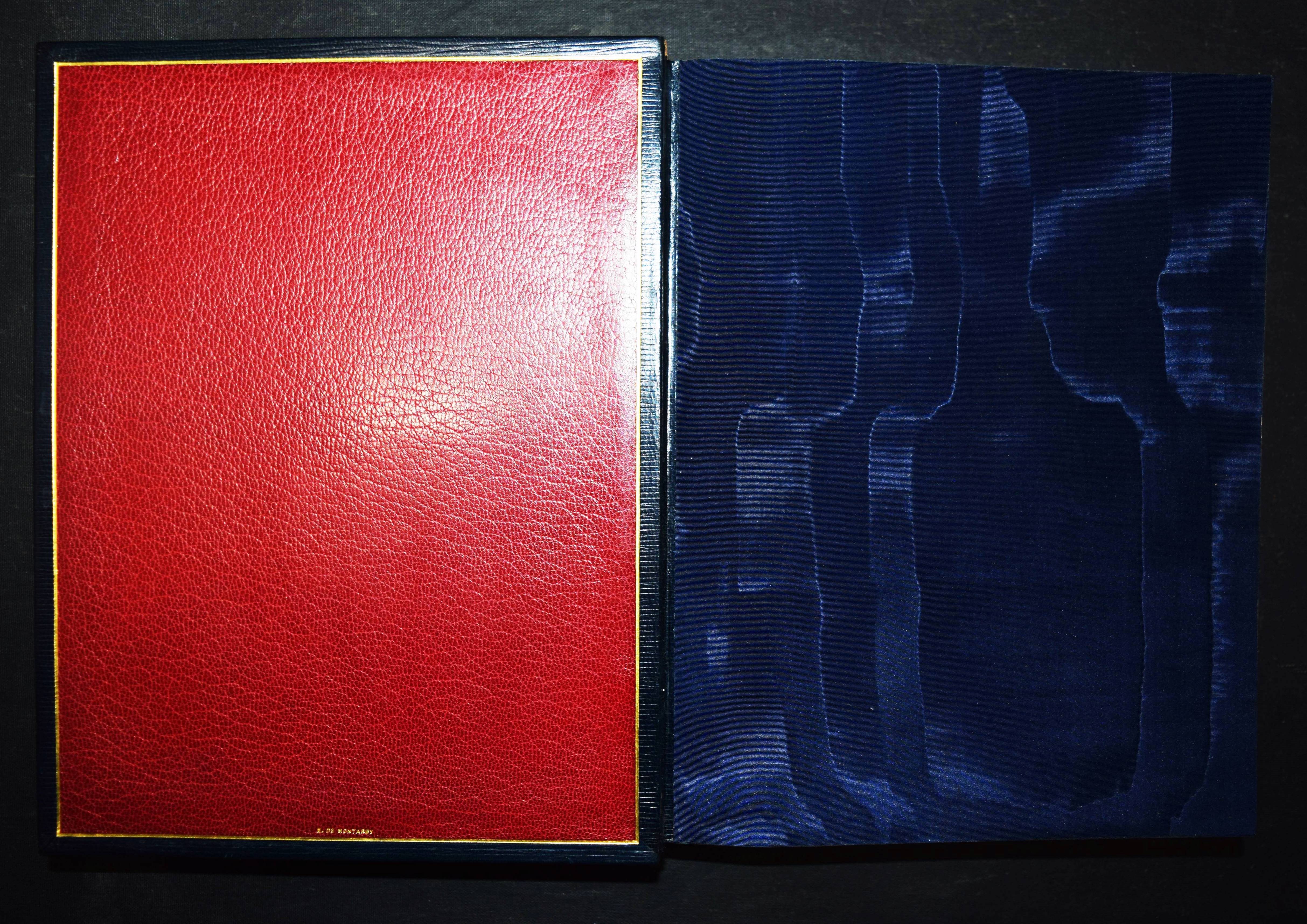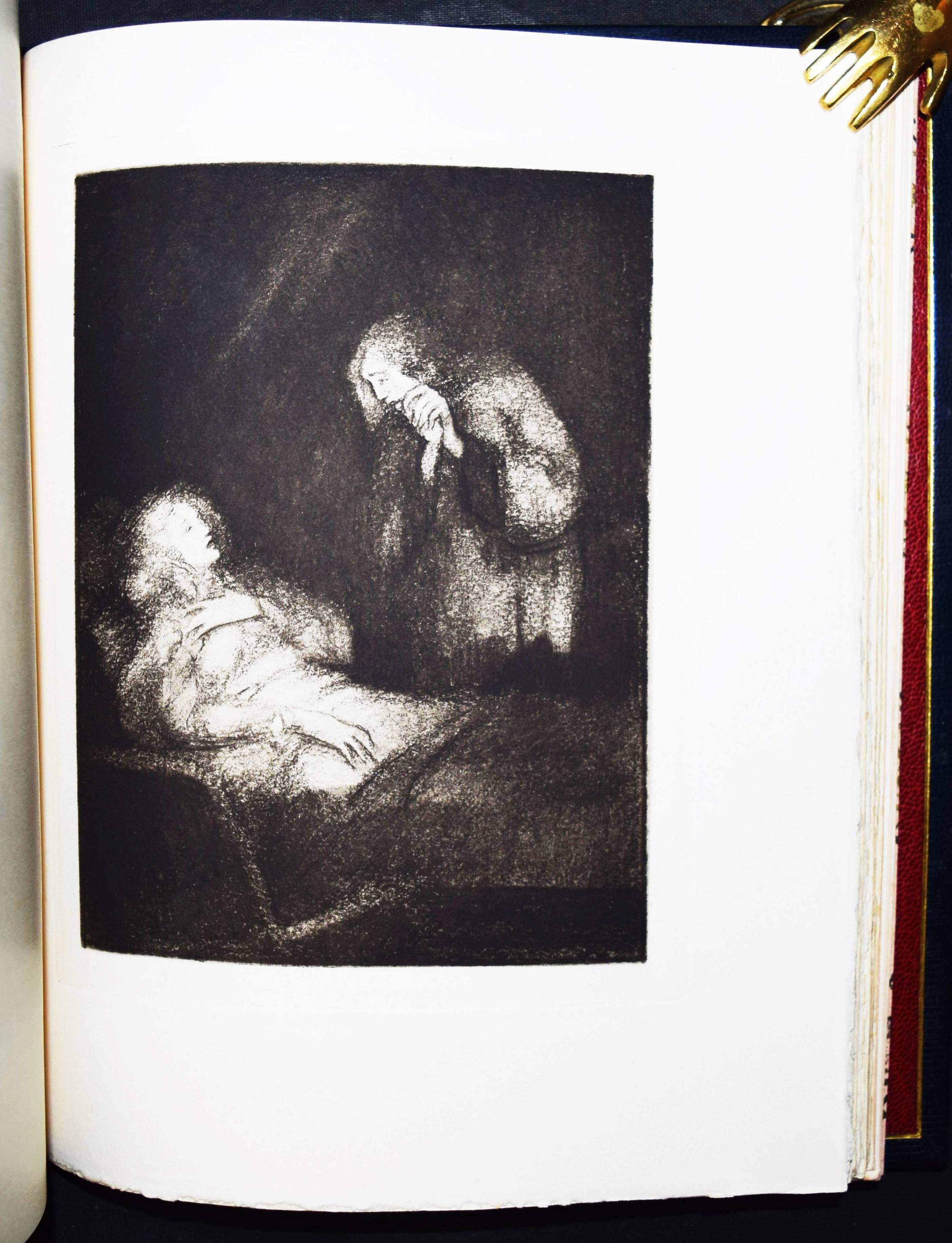 Lamartine, Alphonse de. Jocelyn. Illustrations de Georges Bouisset. Paris, Editions du Loup 1928. Kl.-4° (26 x 20,5 cm.). [10] Bl., 288 S., [3] B. mit 52 (4 ganzs.) Orig.-Radierungen und einigen Schmuckvignetten. Schwarzer Maroquineinband mit goldgepr. Rückentitel, 4 Zierbünden, Rückenverg., goldgepr. Deckelfiletten u. Kopfgoldschnitt (Orig.-Umschlag beigebunden, sign. E. de Montarby) in gefüttertem Orig.-Pappschuber mit Lederkanten. Bibliographie lacunaire des Éditions du Loup 6. – Eines von 350 num. Exemplaren auf „Vélin pur fil des papeteries d’Arches“ (GA 400 Exemplare). – Die wohl schönste Ausgabe des Pariser Verlags „Editions du Loup“ von Maurice Wolff (1869-1933). – Außergewöhnlich schönes Exemplar im signierten Handeinband.