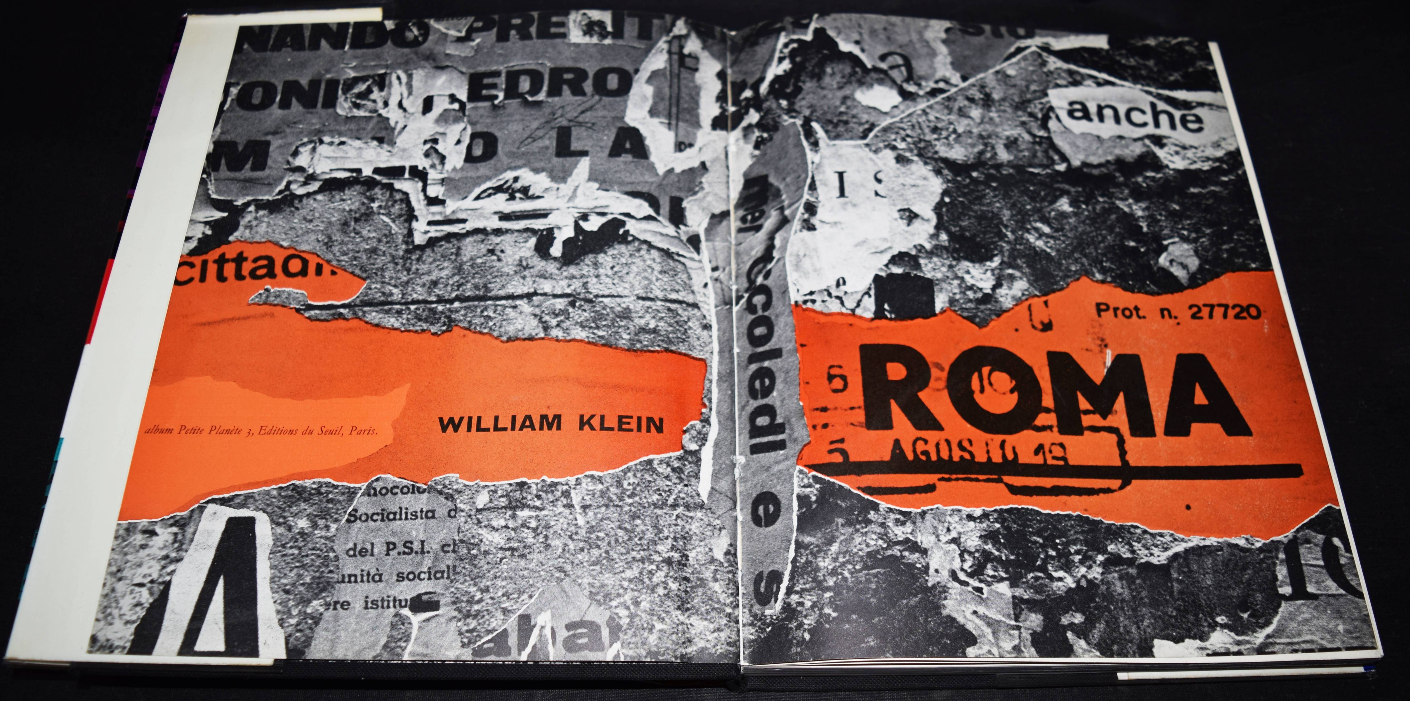 Klein, William. Roma. Paris, Editions du Seuil (1959). 189 S. mit teils doppelblattgr. Duetone-Tafeln. Orig.-Leinenband mit farbig illustr. Schutzumschlag. (Album petite planète, No. 3). Auer 388. Koetzle 232 f. (mit 4 Abb.). The Open Book 178. Roth, The Book of 101 Books 140 ff. (zus. mit New York 1956, Moscow 1964 u. Tokyo 1964). – Erste französische Ausgabe, die amerik. Originalausgabe erschien 1958. – Mit eigenhändiger Widmung von W. Klein „à Jean Prasteau bien venue à ma Rome – qui est peut-etre aussi la votre. en haute sympathie William Klein“. – „Die vibrierende Ungeduld, mit der William Klein sich der Kamera bedient, wirkt als bahne sich ein Tachismus der Fotografie an. Wer genau hinblickt, gewahrt, was wie Auflösung scheint, ist tatsächlich ein intensiveres, zeitgemäseres Sehen und Fotografieren als bisher“ (L. F. Gruber in Koetzle). – Der franz. Journalist, Schriftsteller und Historiker Jean Prasteau (1921-1997) wurde 1993 mit dem Prix Cazes für sein Buch „Les grandes heures du Faubourg St-Germain“ ausgezeichnet. – Schutzumschlag am Kapital mit unauffällig restaurierter Fehlstelle (2-7 mm.), sehr schönes Exemplar. – First French edition, the American edition was published in 1958. With handwritten dedication by W. Klein “à Jean Prasteau bien venue à ma Rome – qui est peut-etre aussi la votre. en haute sympathie William Klein” – “The vibrating impatience with which William Klein makes use of the camera seems as if a tachism of photography is in the offing. If you look closely, you will see that what appears to be a dissolution is in fact a more intense, more contemporary way of seeing and photographing than before” (L. F. Gruber in Koetzle). – The french journalist, writer and historian Jean Prasteau (1921-1997) was awarded the Prix Cazes in 1993 for his book “Les grandes heures du Faubourg St-Germain”. – Dust jacket with inconspicuous restored loss at the spine (2-7 mm.), a very nice copy.