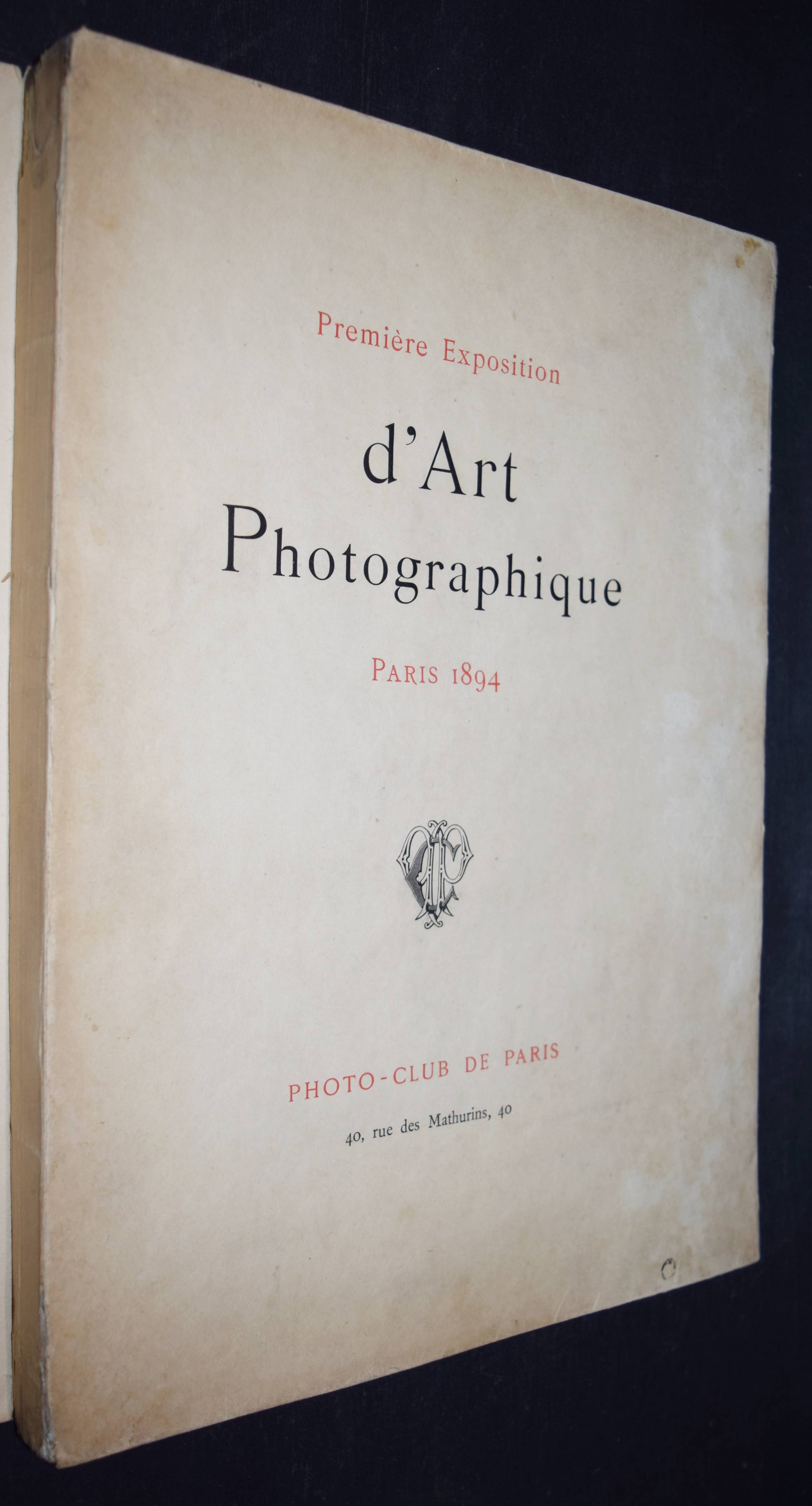 (Lereguet, Maurice et Paul Bourgeois, ed.). Première Exposition d’Art Photographique. Paris 1894. (Préface de Armand Dayot). Paris, Photo-Club de Paris 1894. Folio (40 x 30 cm.). 3, (5) S., 56 Tafel in Héliogravure, [2] Bl. Orig.-Pappband mit Schutzumschlag. Auer 74. Nicht bei Rossens/Salu. – Eines von 30 Exemplaren der Vorzugsausgabe auf Japan impérial (Gesamtauflage 500 Exemplare). – Sehr seltener Katalog zur ersten französischen Ausstellung mit kunstfotografischen Werken und weltweit eine der bedeutendsten im ausgehenden 19. Jahrhundert. – Die Normalausgabe enthält nur 25 Tafeln; hier sind alle Tafeln zweifach vorhanden und außerdem sind 6 weitere Tafeln beigebunden. – Mit Aufnahmen von Bernhard Alfieri, James Craig Annan, Paul Bourgeois, Michel Bovy, Maurice Bucquet, Robert Demachy, Rudolf Eickemeyer, Emma Justine Farnsworth, Joseph Ginot, Edouard Hannon, Frederick H. Hollyer, Michel Kotchoubey, Bernhard Lintott, Constant Puyo, Henry Peach Robinson, Adolf Carl v. Rothschild, Antonio Ruffo, Charles Scholik, Hans Schramm, Alfred Stieglitz, Hans Watzek u. a. (eine vollständige Liste liegt bei). – Die weltweit erste Ausstellung mit kunstfotografischen Werken veranstaltete die englische Pictorialisten-Vereinigung „Linked Ring“ im Oktober 1893 in der Dudley Gallery in London. – „Erstmals wurde eine neue Ästhetik der Photographie formuliert, die für den Photographen die gleichen bildnerischen Freiheiten beanspruchte, wie sie der Maler besaß, der seine Themen frei gestaltet, der ausläßt oder verändert, was seine Komposition beeinträchtigen würde. Hat nicht auch der Photograph das Recht, so wurde gefragt, das Bild durch manuelle Eingriffe zu verändern, um Grenzen seines Mediums zu überwinden, die ihn in seiner Ausdrucksmöglichkeit einschränken? Manipulative Drucktechniken wurden möglich mit dem Gummibichromatverfahren (Gummidruck), das 1894 von A. Rouillé-Ladèveze eingeführt und ein Jahr später von Robert Demachy popularisiert wurde“ (H. Gernsheim S. 723). – Umschlag etwas angestaubt und gering fleckig, sehr schönes Exemplar. – One of 30 copies of the special edition on Japan impérial (GA 500 copies). – Very rare catalog of the first French exhibition of art photography and one of the most important in the world at the end of the 19th century. – The normal edition contains only 25 plates; here all plates are in duplicate and 6 additional plates are bound in. – With photographs by Bernhard Alfieri, James Craig Annan, Paul Bourgeois, Michel Bovy, Maurice Bucquet, Robert Demachy, Rudolf Eickemeyer, Emma Justine Farnsworth, Joseph Ginot, Edouard Hannon, Frederick H. Hollyer, Michel Kotchoubey, Bernhard Lintott, Constant Puyo, Henry Peach Robinson, Adolf Carl v. Rothschild, Antonio Ruffo, Charles Scholik, Hans Schramm, Alfred Stieglitz, Hans Watzek and others (a complete list is enclosed). – The world’s first exhibition of art photography was organized by the English Pictorialist Association “Linked Ring” in October 1893 at the Dudley Gallery in London. – The world’s first exhibition of art photography was organized by the English Pictorialist Association Linked Ring in October 1893 at the Dudley Gallery in London. – For the first time, a new aesthetic of photography was formulated, which claimed the same pictorial freedom for the photographer as the painter had, who freely arranged his subjects, omitting or changing what would impair his composition. Does not the photographer also have the right, it was asked, to alter the image through manual intervention in order to overcome the limitations of his medium that restrict his expressive possibilities? Manipulative printing techniques became possible with the gum bichromate process (gum printing), which was introduced in 1894 by A. Rouillé-Ladèveze and popularized a year later by Robert Demachy (H. Gernsheim p. 723). – Cover somewhat dusty and slightly stained, a very nice copy.