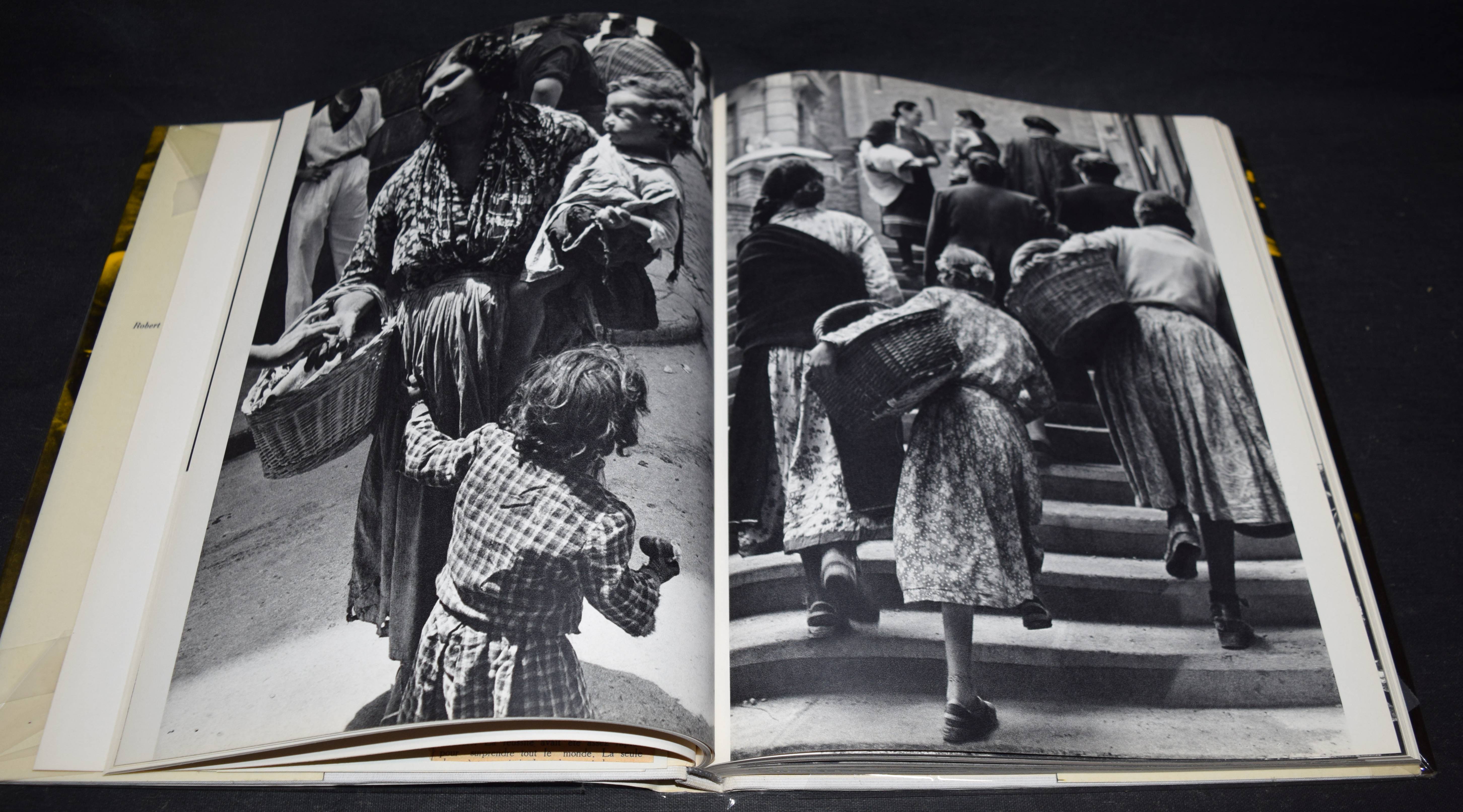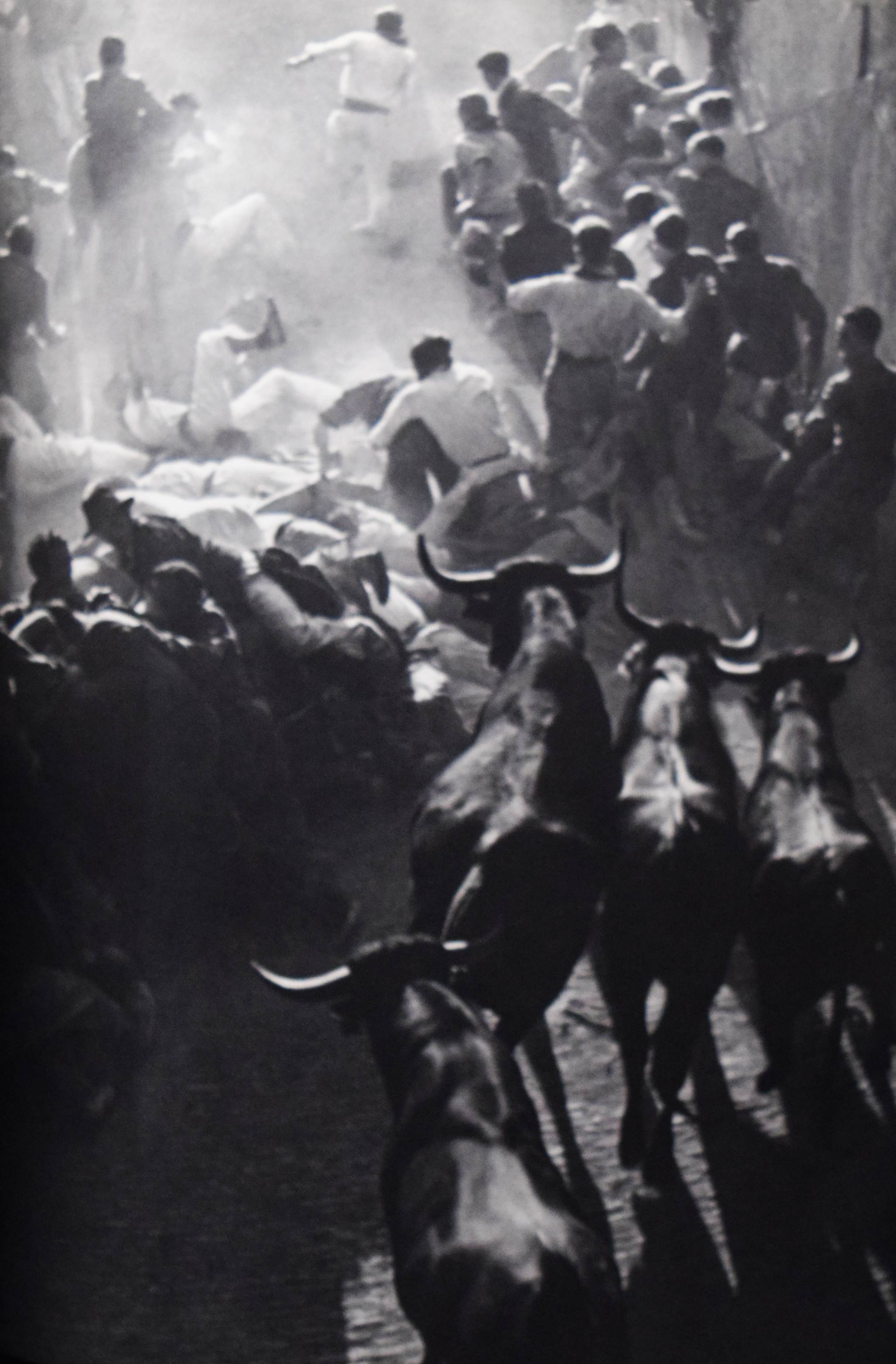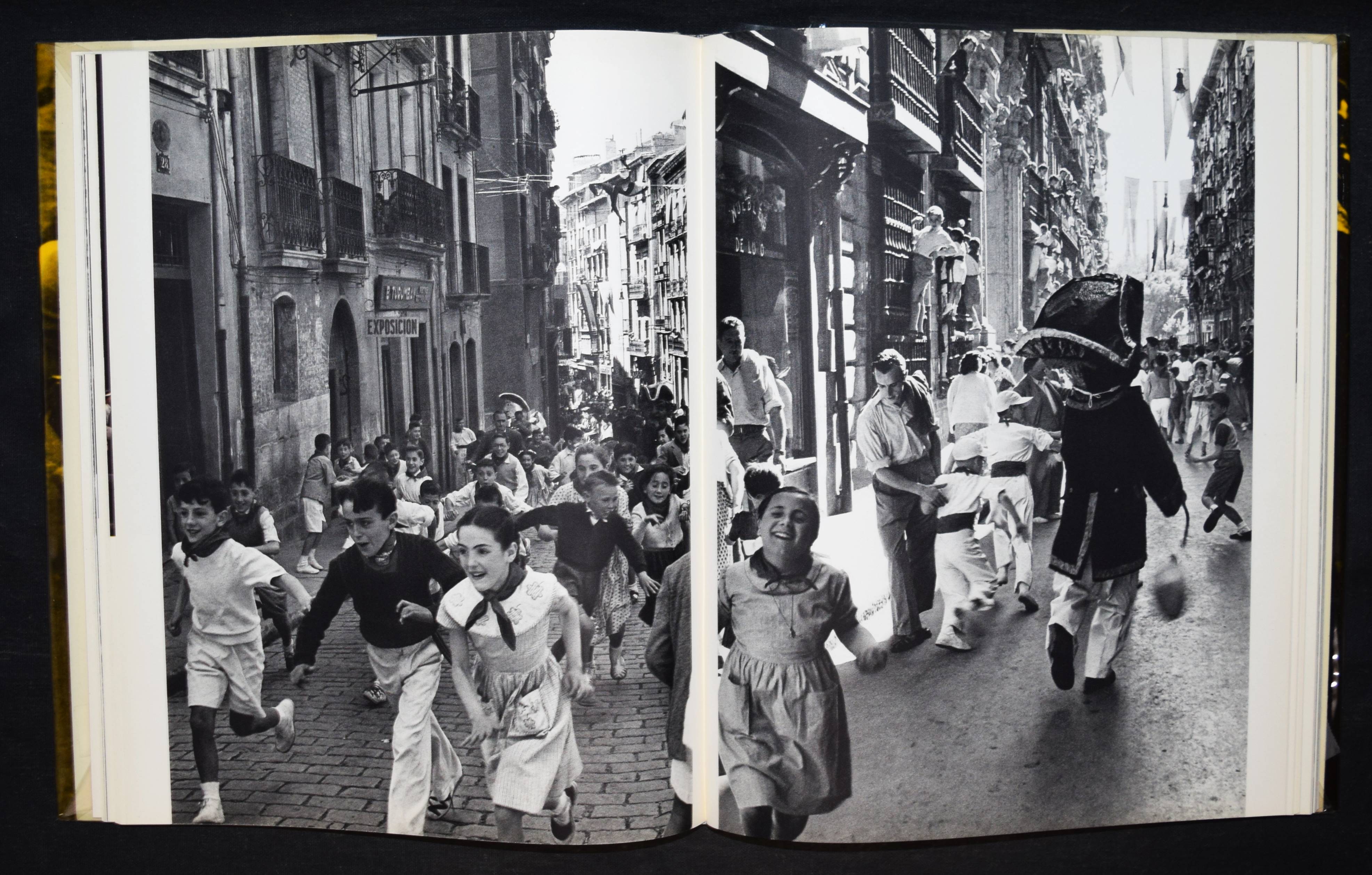 Morath – Aubier, Dominique (d. i. Marie-Louise Labiste). Guerre à la tristesse. Photographies de Galle, Chapresto, Nisberg et Inge Morath. (Paris), Delpire (1955). 4°. [129 S. mit zahlr. teils farb. Abb. auf Tafeln. OLn. mit farbig illustr. OU. Koetzle 312. Lederman/Yatskevich 132 f. – Erste Ausgabe der ersten Buch-Veröffentlichung der österr. Magnum Fotografin I. Morath (1923-2002). – Mit eigenhändiger Widmung von D. Aubier auf dem Titel und Orig.-Photographie, Portrait der Autorin von Inge Morath (17,5 x 12 cm.), rücks. mit eigenhändiger Widmung von D. Aubier und Stempel der Fotografin. – Erschien im selben Jahr auch in deutscher Übersetzung mit dem Titel „Fiesta in Pamplona“ bei Manesse in Zürich. – „Ihr fotographisches Handwerkszeug stammt aus der ‚Schule‘ von Henri Cartier-Bresson und der Magnum-Fotografie der 50er Jahre. … Inge Morath war und ist in diesem Sinne eine Reise- und Reportagefotografin, deren Bildmaterial für die Printmedien vorgesehen ist. Doch daneben entsteht als direkte Antwort auf das ‚bestellte‘ Bild eine Flut von ‚freien‘ Bildern, ein Reservoir an intimen und persönlichen Fotos, deren Zweckfreiheit ihnen eine gleichsam novelistische Erzählebene ermöglicht“ (M. Zuckriegl in Koetzle). – „Aubier’s text that filled with observations – at times philosophical – and anecdotes about Spanisch daily life and the rituals of the bullfight that further deepen Morath’s personal and intimate photographs. Through the interplay of words and images the viewer senses the tradition, ceremony and anticipation that underlie the San Fermin Festival“ (Lederman/Yatskevich). – Die franz. Schriftstellerin D. Aubier (1922-2014) lebte seit 1960 in Carboneras (Provinz Almeria). – Sehr gutes Exemplar.