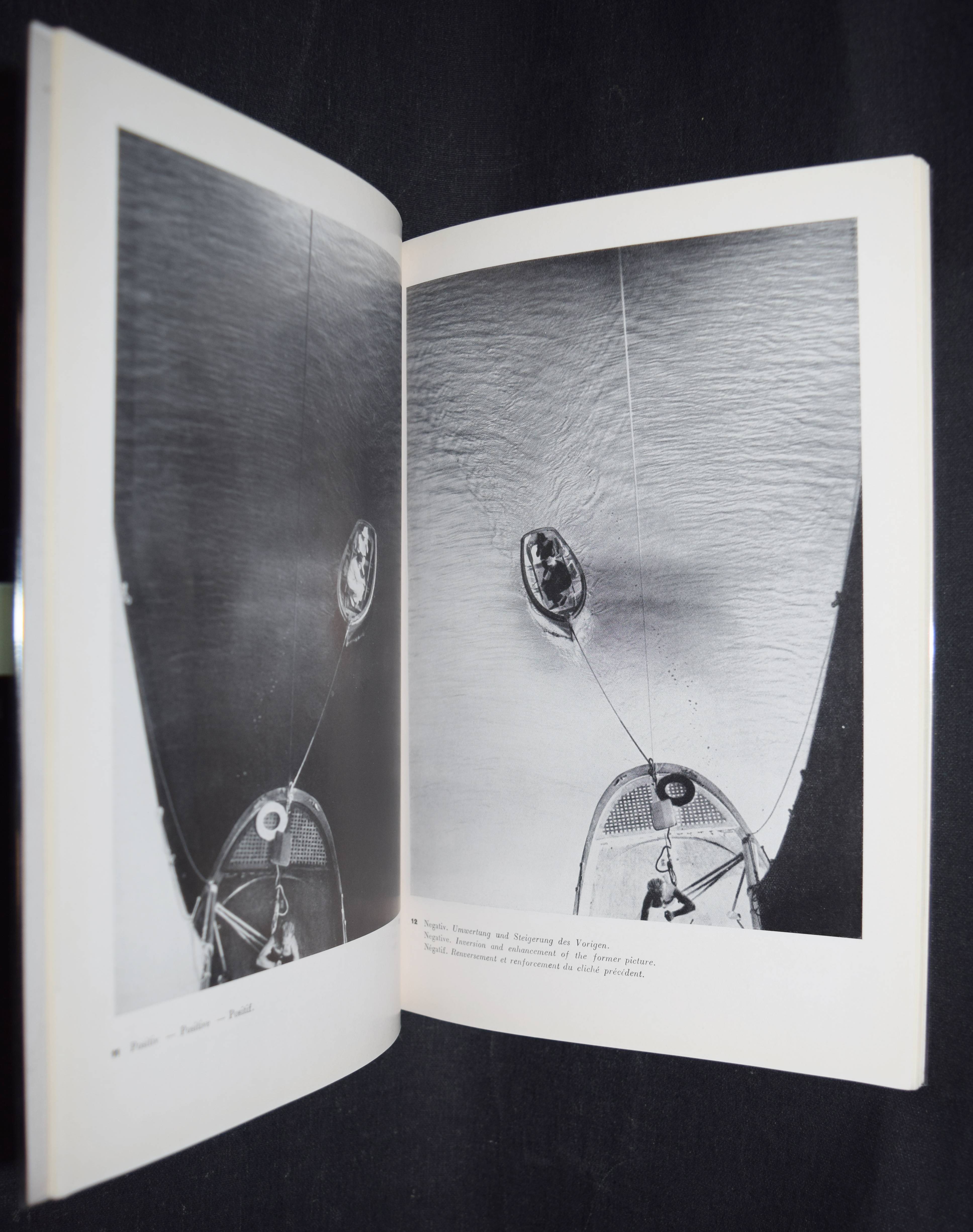 Moholy-Nagy, L(ászló). 60 Fotos. 60 photos. 60 photographies. Herausgegeben von Franz Roh. Berlin, Klinkhardt & Biermann 1930. Gr.-8°. 60 S., [2] Bl. mit 60 Abb. auf Tafeln. Illustr. Orig.Kartonumschlag. (Fototek, Band 1). Auer 158. Dokumentations-Bibliothek VI, 307. Heidtmann 5508. Heiting/Jaeger I, 332 ff. (mit mehreren Abb.). Koetzle 276 (mit Abb.). – Erste Ausgabe. – Buchgestaltung und Typographie: Jan Tschichold. – Mit Einführungen in Deutsch, Englisch und Französisch von F. Roh: „Moholy-Nagy und die neue Fotografie“ und „Der literarische Foto-Streit“. – I. „Hervorragender Querschnitt durch das photographische Werk Moholy-Nagys“ (H. Bolliger). – „Moholys künstlerisches Credo stellte auch die Fotografie absolut in den Rahmen seiner pädagogischen Absicht des ‚Neuen Sehens‘“ (A. Haus in Koetzle). – Moholy wollte die herkömmliche „natürliche“ Wahrnehmung durch den industriellen Blick der Fotografie ersetzen. Die Welt zeigt sich aus bis dahin fast unbekannten Perspektiven, die abgebildeten Gegenstände ordnen sich zu abstrakten Rhythmen unter dem neutralen Auge der Kamera“ (J. Fiedler in Bauhaus, S. 295). – Der ungarisch-US-amerikanische Maler, Photograph, Typograph und Bühnenbildner Laszló Moholy-Nagy (1895-1946) war von 1923 bis 1928 Lehrer am Bauhaus. – Umschlag minimal angestaubt, sehr gutes Exemplar.