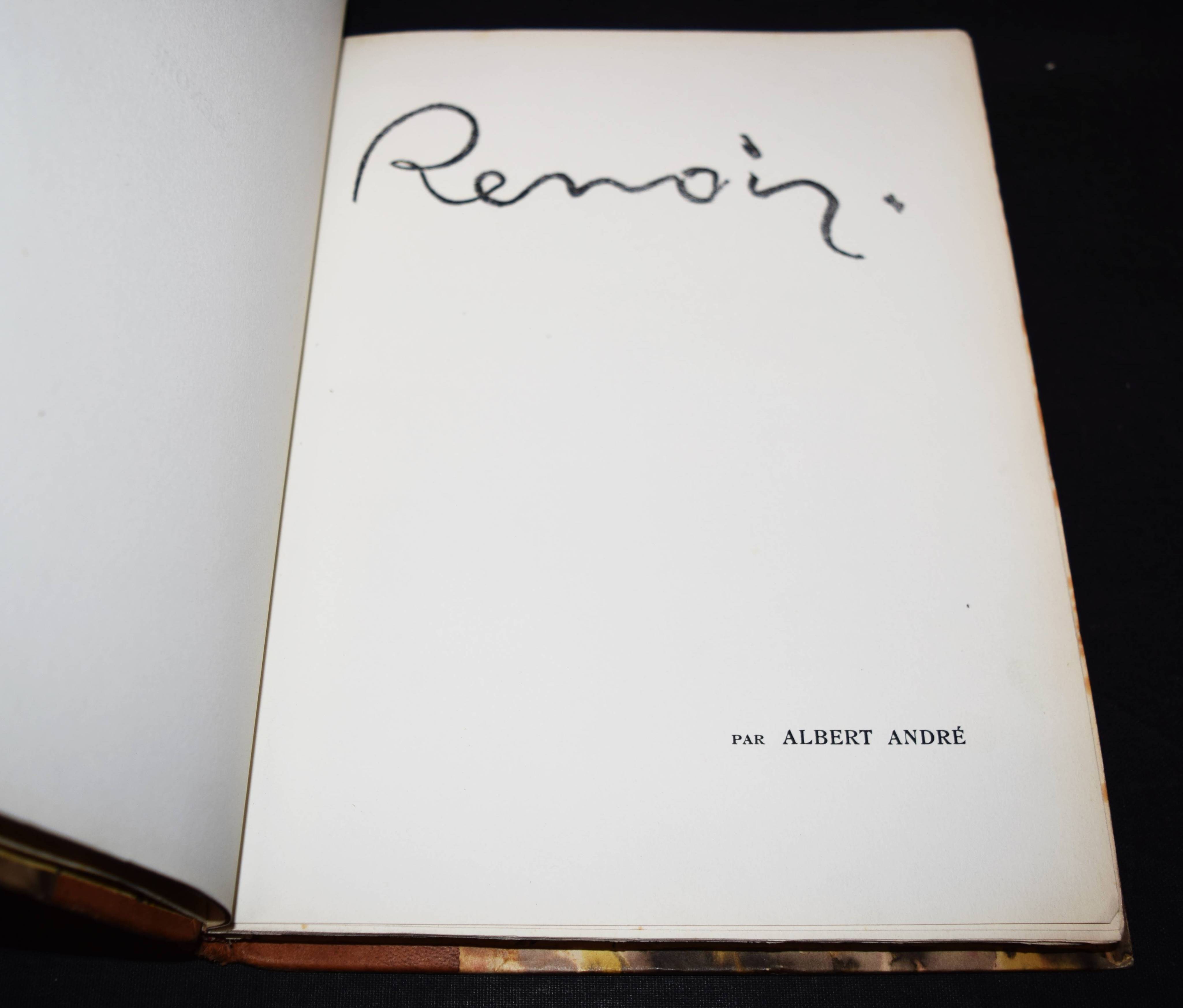 Renoir – André, Albert. (Pierre-Auguste) Renoir. (Paris, Crès um 1920). 4°. 37 S., 1 Bl. u. zahlr. Abb. auf 40 Tafeln. Hldr. d. Zt. mit goldgepr. Rückenschild u. Rückenverg. (Orig.-Umschlag beigebunden). (Éditions des Cahiers d’aujourd’hui). Erste Ausgabe, selten. – Zeitgenöss. Exlibris, schönes dekorativ gebundenes Exemplar.