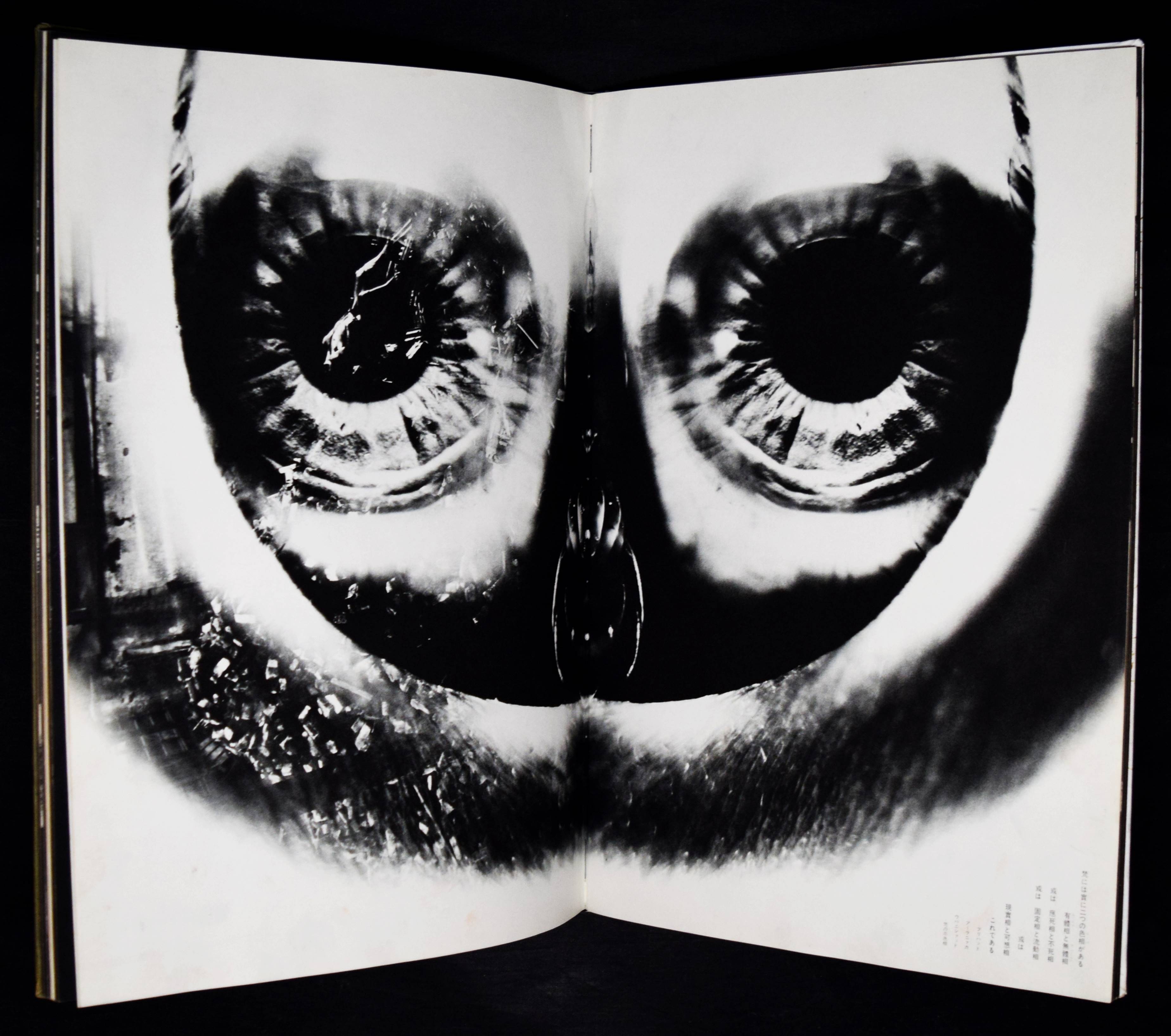 Hosoe, Eikoh. Barakei Sguei-sha. (Killed by roses). (Introduction by Yukio Mishima. Design by Kohei Sugiura). Tokyo, Shueisha (1963). Folio (42 x 27 cm.). [104] S. mit 43 Tafeln in Sheet-fed gravure, 2 gefalt. Beilagen u. Orig.-Rechnung für einen dänischen Kunden des Verlags vom 18. August 1964. Illustr. OLn. mit Orig.-Baubinde (″Obi“) u. Klarsichtschutzumschlag in illustr. Orig.-Pappkassette. Auer 422. Heiting/Kaneko 368 f., 279. The Open Book 194 f. Parr/Badger I, 280 f. (mit mehreren Abb.). Roth, The Book of 101 Books 164 ff. – Erste Ausgabe, das wohl wichtigste japanische Fotobuch der 60er Jahre. – Von E. Hosoe und Y. Mishima im Impressum signiert. Eines von 1500 num. Exemlaren. – „Eikoh Hosoe’s first edition of Killed By Roses is so splendidly packaged that just opening it is a plearure – and the seduction doesn’t stop there. Within a black-and-white cardboard case printed an both sides with photos of carved pendants in thick chains and a fine shower of text is a glossy color cover featuring a photogram of symbolic elements plucked from Hosoe’s hallucinatory narrative, the title superimposed in classical Greek lettering. … The photos that make up the body of the book are inky, sometimes high-constrast gravures that bleed right to the edge of the page and often extend across the entire open spread, given extra impact to images that are already quite arresting. Even if the subject of Hosoe’s photographs weren’t zje author Yushi Mishima, the book would be remarkable for its humid mix of eroticism and myth, queer kitsch and high art“ (A. Roth). – „Both Japanese editions of Barakei (Killed by Roses) are significant, not only because of the remarkable collaboration between Eikoh Hosoe and Yukio Mishima, but also because they were designed by the two most influential Japanese graphic designers of the postwar years – the first edition by Kohei Sugiura and the second by Tadanori Yokoo. Each is an original working of the material in its own right, and the second, one of the most complex bookworks ever made, also memorializes a definingmoment in Japanese culture. … In his preface to the first edition, Mishima was equally disingenous: ‚One day without warning, Eikoh Hosoe appeared before me, and transported me bodily to a strange world.‘ That world, he continued, was ‚abnormal, warped, sarcastic, grotesque, savage, and promiscuous‘. Mishima allowed Hosoe unprecedented directorial freedom, but as in other such close collaborations between photographer and subject, just who had the ultimate control is open to question. What emerged was a series of extraordinary theatrical tableaux – Japanese surrealism meets Italien mannerism – that certainly contributed to the iconicity of Mishima, the samurai saviour of the country’s soul. Hosoe’s images were baroque, kitsch, frequently sadomasochistic, disturbingly narcissistic and clearly homoerotic, despite the presence of women in a number of the pictures“ (Parr/Badger). – Die Kassette etwas berieben, der Acetat-Schutzumschlag um unteren Rand mit kl. Läsuren, vord. Innengelenk minimal angeplatzt, sehr gutes Exemplar mit der fast immer fehlenden Orig.-Bauchbinde. – First edition, probably the most important Japanese photo book of the 60s. – Signed by E. Hosoe and Y. Mishima in the imprint. One of 1500 num. Copies. – The box somewhat rubbed, the acetate dust jacket around the lower edge with small tears, the front inner hinge minimally chipped, a very good copy with the almost always missing original belly band.