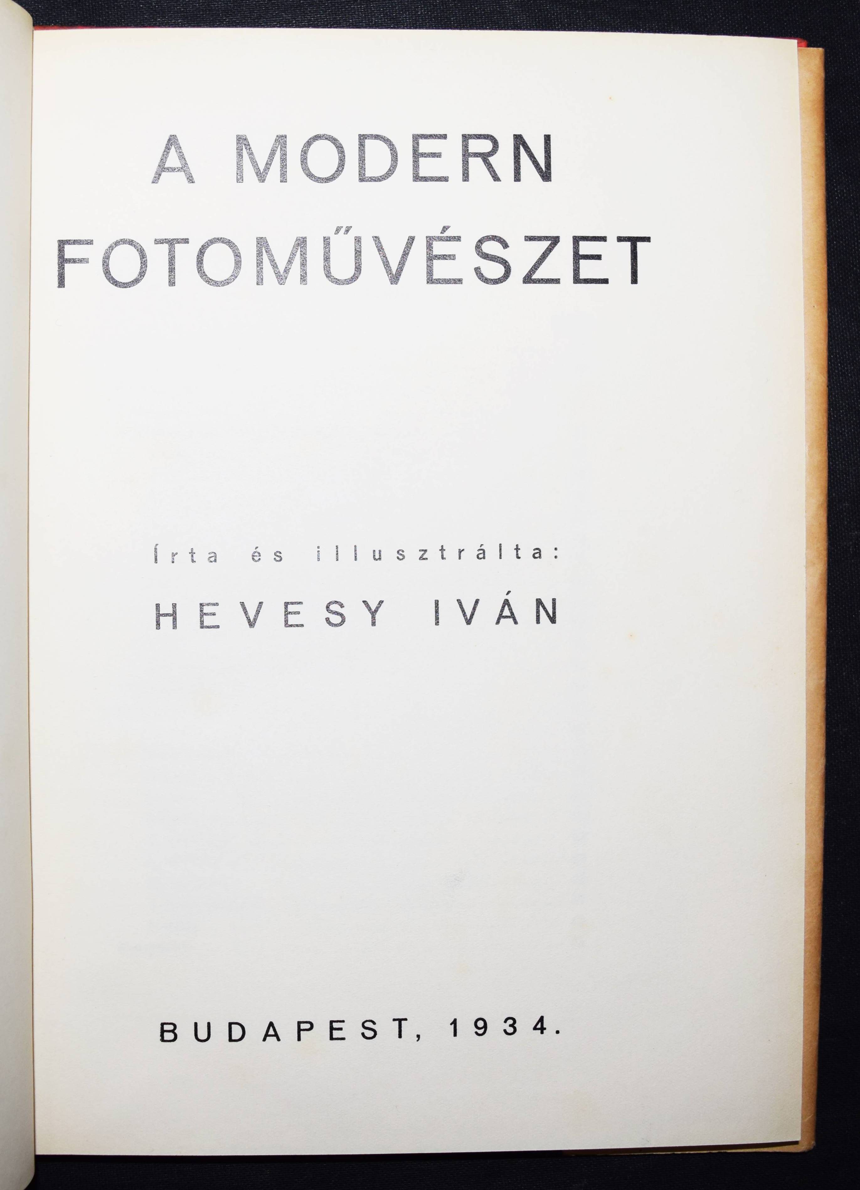 Hevesy, Ivan. A modern fotomüvészet. Irta és illusztrálta. Budapest, Selbstverlag 1934. 8°. 112 S. mit 32 Tafeln in Heliogravure. OHln. mit silberger. Rücken- u. Deckeltitel u. illustr. Orig.-Schutzumschlag. Einzige Ausgabe, selten. – Der bedeutende ungarische Fotograf, Schriftsteller und Film- und Kunst-Kritiker I. Hevesy (1893-1966) war 1917 und 1918 Herausgeber der expressionistischen Zeitschrift „Jelenkor“. Hevesy war eng mit L. Moholy-Nagy, Bela Uitz und Sandor Bortnyk befreundet. Auch seine Frau Kata Kálmán (1909-1978) war als Fotografin bekannt. – Vorsätze etwas stockfleckig, sehr gutes Exemplar. – Only edition, rare. – The important Hungarian photographer, writer and film and art critic I. Hevesy (1893-1966) was editor of the expressionist magazine “Jelenkor” in 1917 and 1918. Hevesy was a close friend of L. Moholy-Nagy, Bela Uitz and Sandor Bortnyk. His wife Kata Kálmán (1909-1978) was also known as a photographer. – Endpapers somewhat foxed, very good copy.
