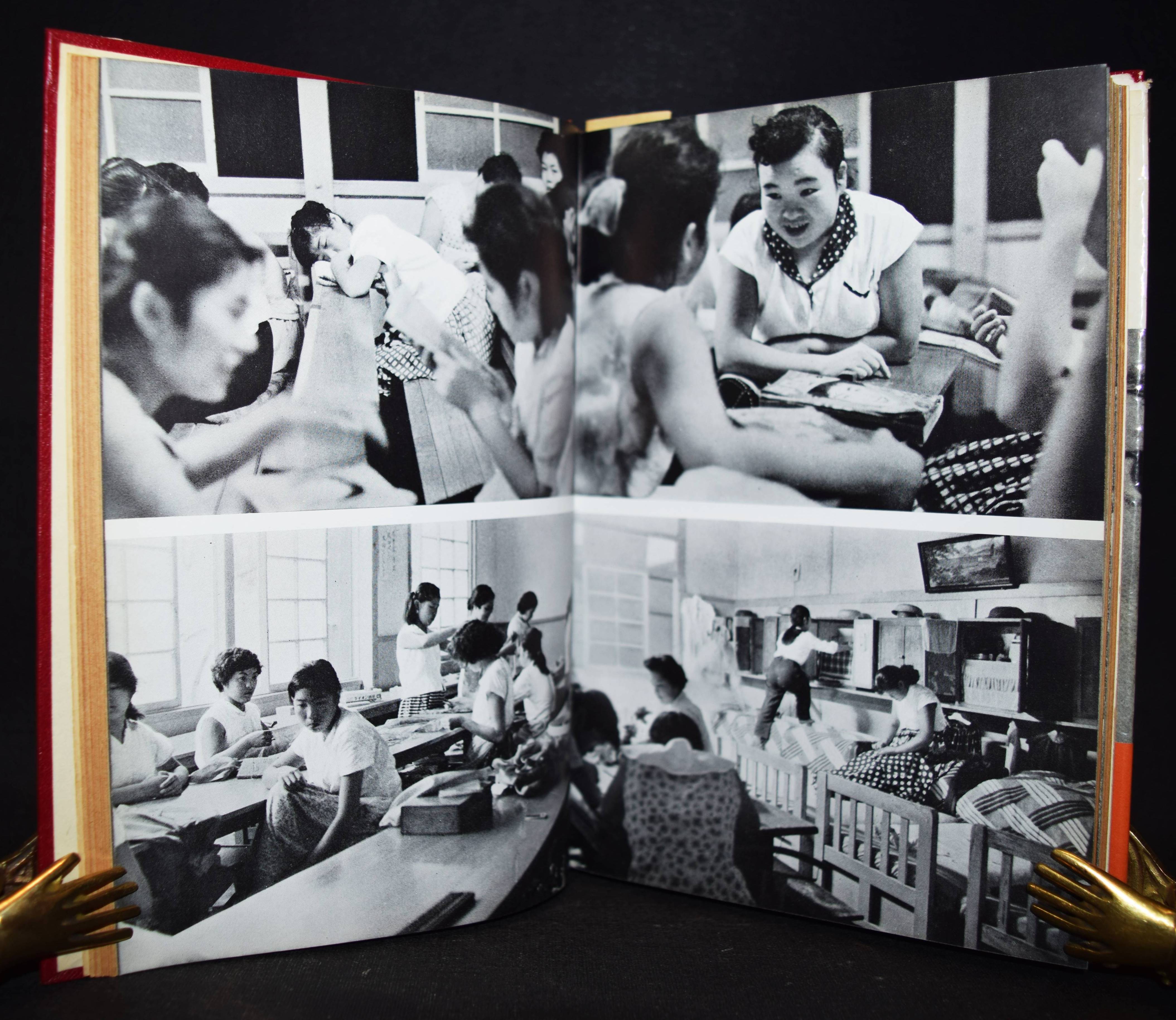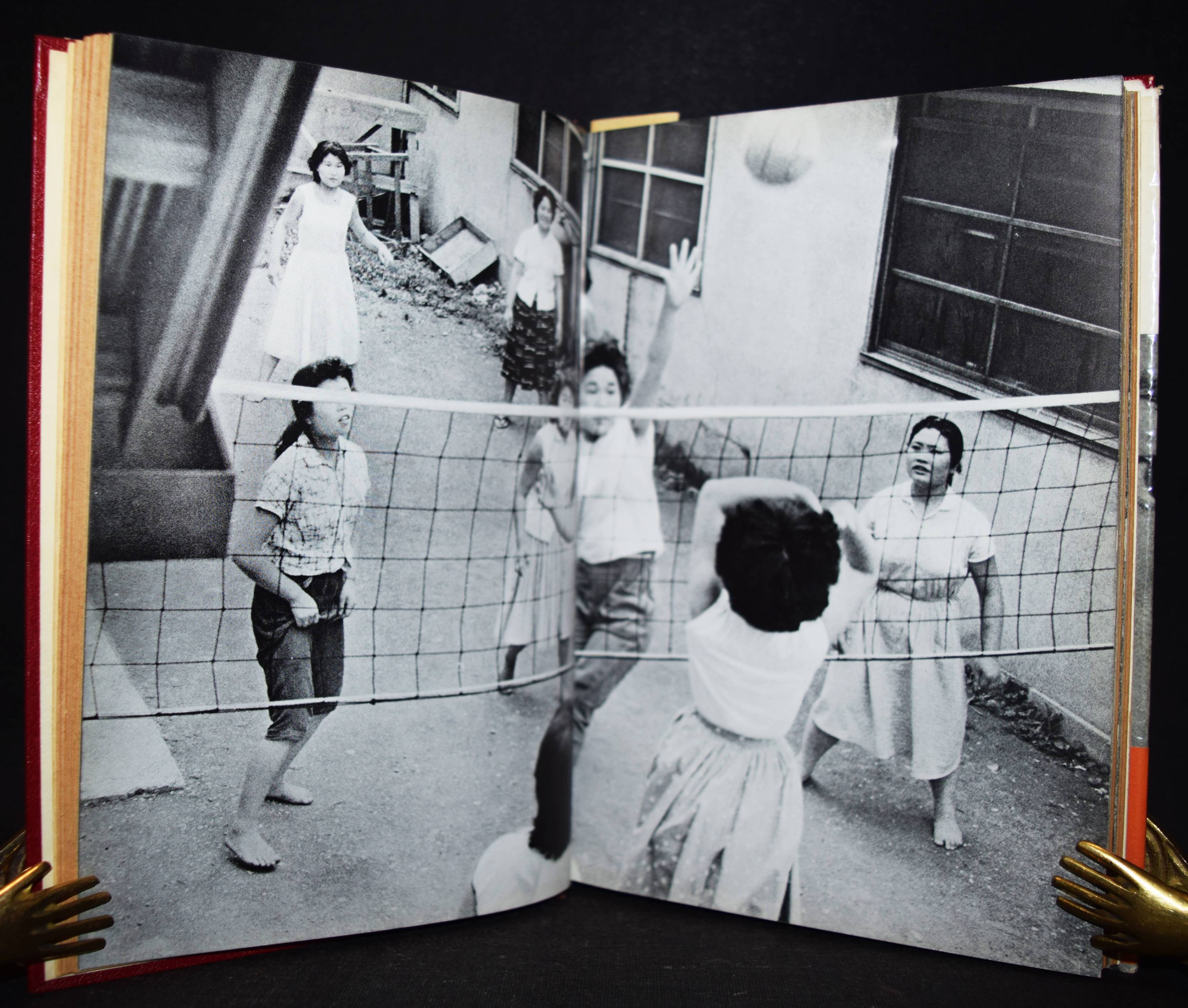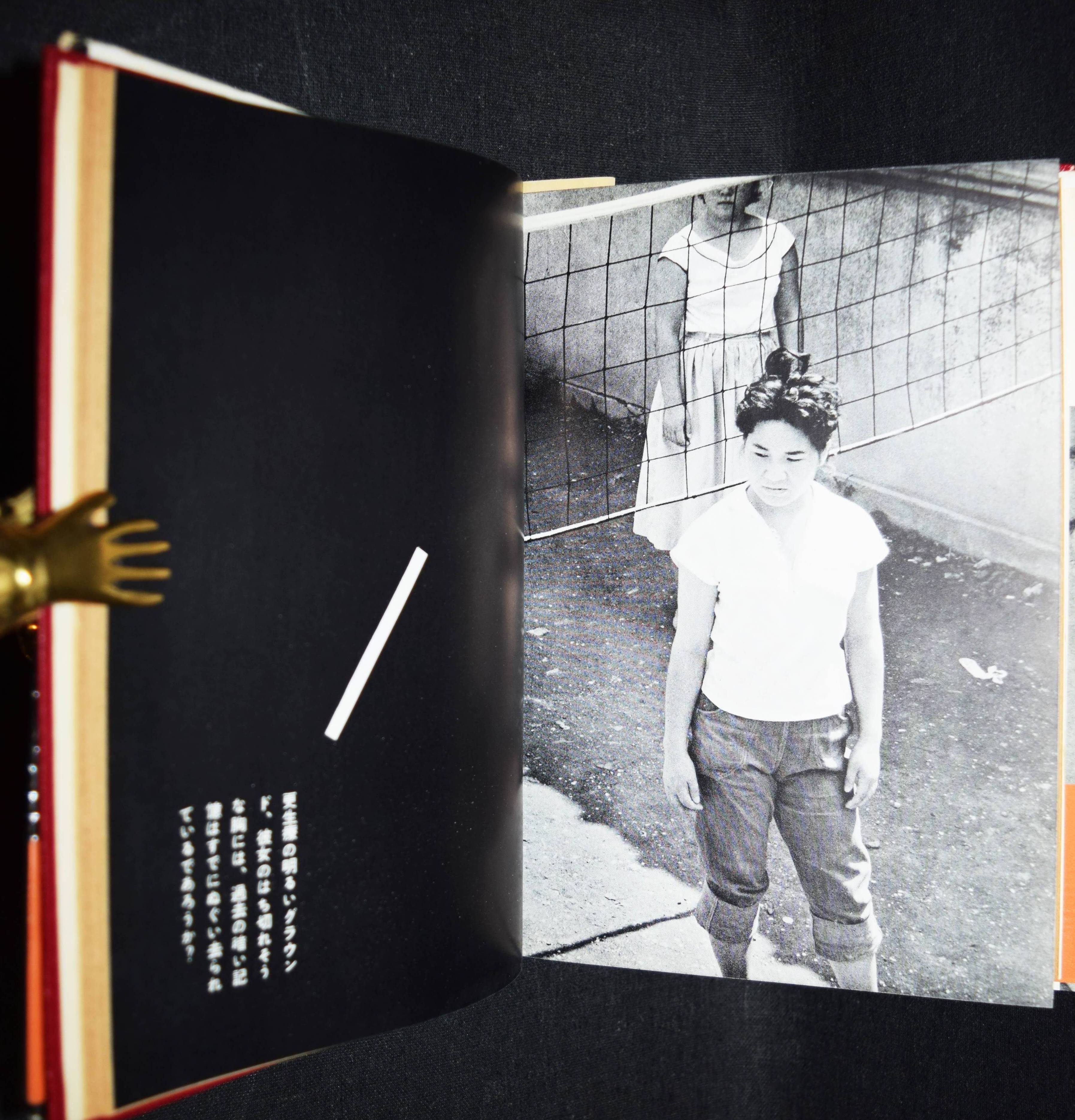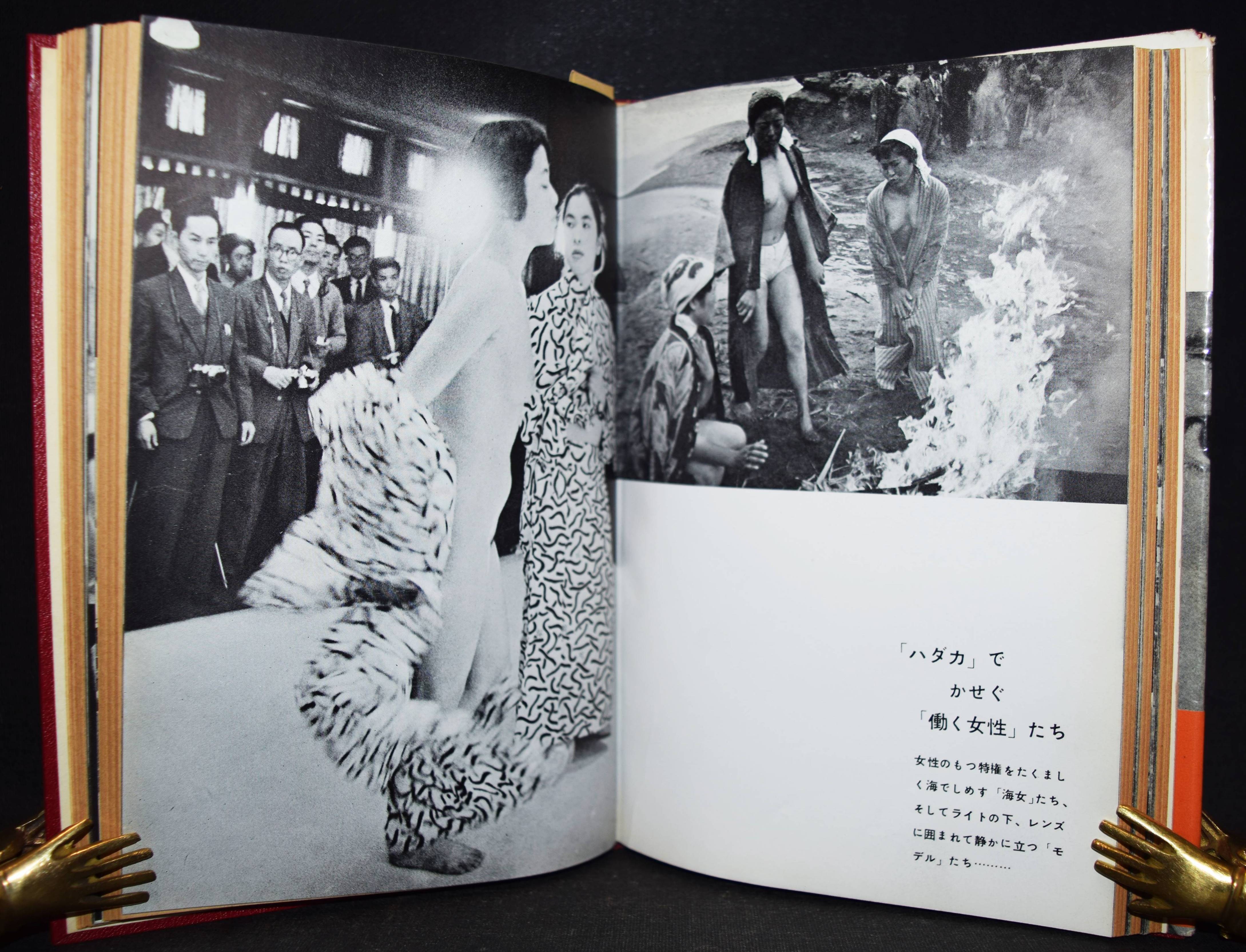 Tokiwa Toyoko. Kiken na adabana. (Giftige Blumen). Tokyo, Mikasa-shobô (1957). 8°. 248 S. mit Abb. auf Tafeln. OPbd. mit goldgepr. Rückentitel, illustr. Orig.-Schutzumschlag, Bauchbinde (″Obi“, belly band) u. Cellophan-Schutzumschlag. The History of Japanese Photography S. 217 u. 236 f. Lederman/Yatskevich, What they saw 144 f. – Erster Druck der ersten Ausgabe. – Wichtigste Veröffentlichung der bedeutenden japanischen Fotografin Tokiwa Toyoko (1928-2019). – Die Aufnahmen zeigen Straßenszenen, Prostituierte und amerikanische Marine-Soldaten im Rotlichtviertel von Yokohama. Der seltene Schutzumschlag zeigt auf der Vorderseite das Gesicht der Fotografin mit ihrer Canon-Kamera; im Objektiv ist ein Detail aus dem letzten Foto zu sehen. Der rote „Obi“ wirbt für 100 Fotografien. – T. Tokiwa „documents a vibrant community of women operating on the fringes of postwar Japanese society. The title references a traditional euphemism for sex workers, who held a partivular form of cultural cachet in Tokiwa’s hometown, the port city of Yokohama. While prostitution is a major subject in Kiken na adabana, the photobook more brodly cronicles the daily lives of working women – including nurses, shop clerks, teachers and performers – and as a result, demystifies sex work for what it really is: a job. … As one of the only female photographers active in Yokohama during this time, Tokiiwa uniquely experienced the challenges of working within a patriarchal environment. Despite her proffessional status as an observer, the photographer herself became an object of fascination and increased scrutiny amoung her peers. Tokiwa toys with this irony throuout Kiken na adabana – perhaps most significantly in the book cover, a self-portrait of the artist holding a camera. A smaller photgraph of a woman being forciby dragged by her male companion is superimposed in place of the Photographer’s lens. This image spotlights Tokiwa’s role as both a witness and active participant in the social upheaval of mid-century Japanese society“ (Rose Bishop in Lederman/Yatskevich). – „(This book) can be considered the strongest, most compassionate work by a female photographer of that era“ (Anne Tucker). – Schutzumschlag am Kapital mit kleiner Fehlstelle, Textbl. papierbedingt etwas gebräunt, sehr gutes Exemplar.
