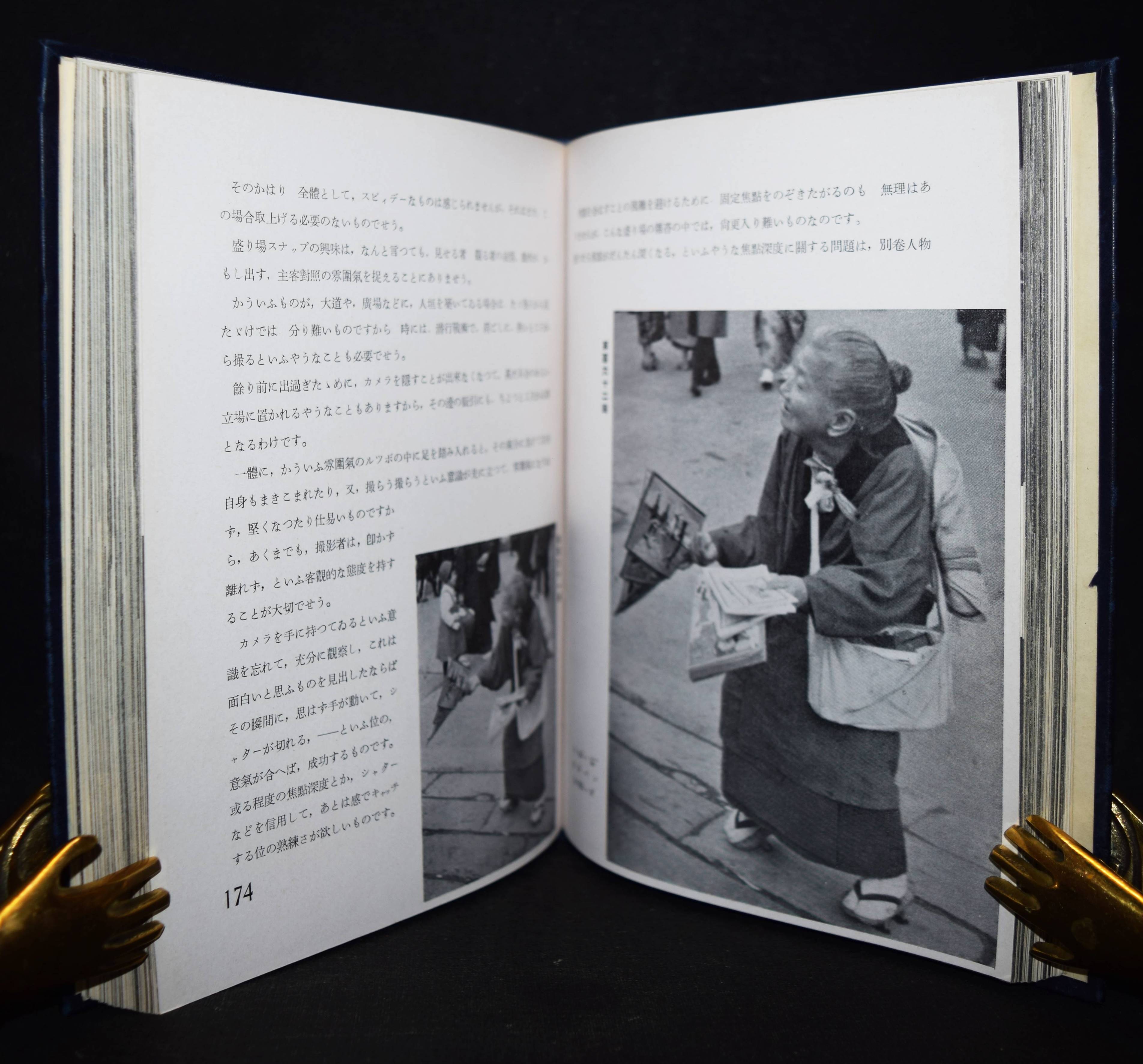 Watanabe Yoshio. Sunappu shashin no neraikata utsushikata. (So macht man Schnappschüsse, How to compose and shoot snapshots). Tokyo, Genkô-sha 1937. 8°. 276 S. mit zahlr. Abb. Orig.-Leinenband mit ornamentaler Silberprägung in Orig.-Pappschuber. (Shashin jitsugi daikoza 4, Practical Photography, Series 4). Heiting/Kaneko 124, 60. – Erste Ausgabe. – Buch-Gestaltung von Kôshirô Onchi. – Der bedeutende japanische Fotograf Watanabe Yoshio (1907-2000) arbeitete schon früh mit kleinformatigen Kameras wie der Leica. „1928 machte er seinen Abschluss an dem „Tokyo Photography Institute“, der Nachfolgereinrichtung der „Konishi Photography School“, und nahm seine Arbeit bei der „Oriental Photos Industry Company“ auf. Er gewann einen Sonderpreis in einem Wettbewerb, der von dem Magazin „Asahi Graph“ ausgerichtet worden war. Er wechselte zur Anzeigenabteilung des Unternehmens und wurde zuständig für die fotografischen und textlichen Beiträge für die monatlichen Magazine „Oriental News“ und „Photo Times“. 1934 verließ Watanabe das Unternehmen und eröffnete im folgenden Jahr das „Watanabe Studio“. Wandfotos von ihm waren im japanischen Pavillon auf der Weltfachausstellung Paris 1937 zu sehen. Im selben Jahr besuchte er in Auftrag der Abteilung für Nachrichtendienste des Außenministeriums Nanking und Shanghai. Nach dem Zweiten Weltkrieg begann Watanabe 1950 an der Nihon-Universität zu unterrichten. …1957 gewann er den Jahrespreis der „Photographic Society of Japan“ (Nihon shashin kyokai) und 1958 den Preis des Kultusministers (Mombudajin sho). 1958 wurde er Vorsitzender der „Japan Professional Photographers’ Society“ (Nihon shashinka kyokai). 1965 wurde er Vorsitzender der „All-Japan Photographers’ and Writers’ Association“ (Zen Nihon shashinka sakka domei) und 1971 Vorsitzender der „All-Japan Photographers’ and Writers’ Copyright Association“ (Zen Nihon shashinka chosakuken kyokai), stellvertretender Vorsitzender der „Photographic Society“. … Watanabe war der erste Fotograf, der Anstrengungen unternahm, eine Fotogalerie zu betreiben. Er war auch der erste japanische Fotograf, der vom Staat als „Person mit besonderen kulturellen Verdiensten“ (1990) ausgezeichnet wurde“ (Wikipedia). – Schuber etwas berieben u. gebräunt, sehr gutes Exemplar.