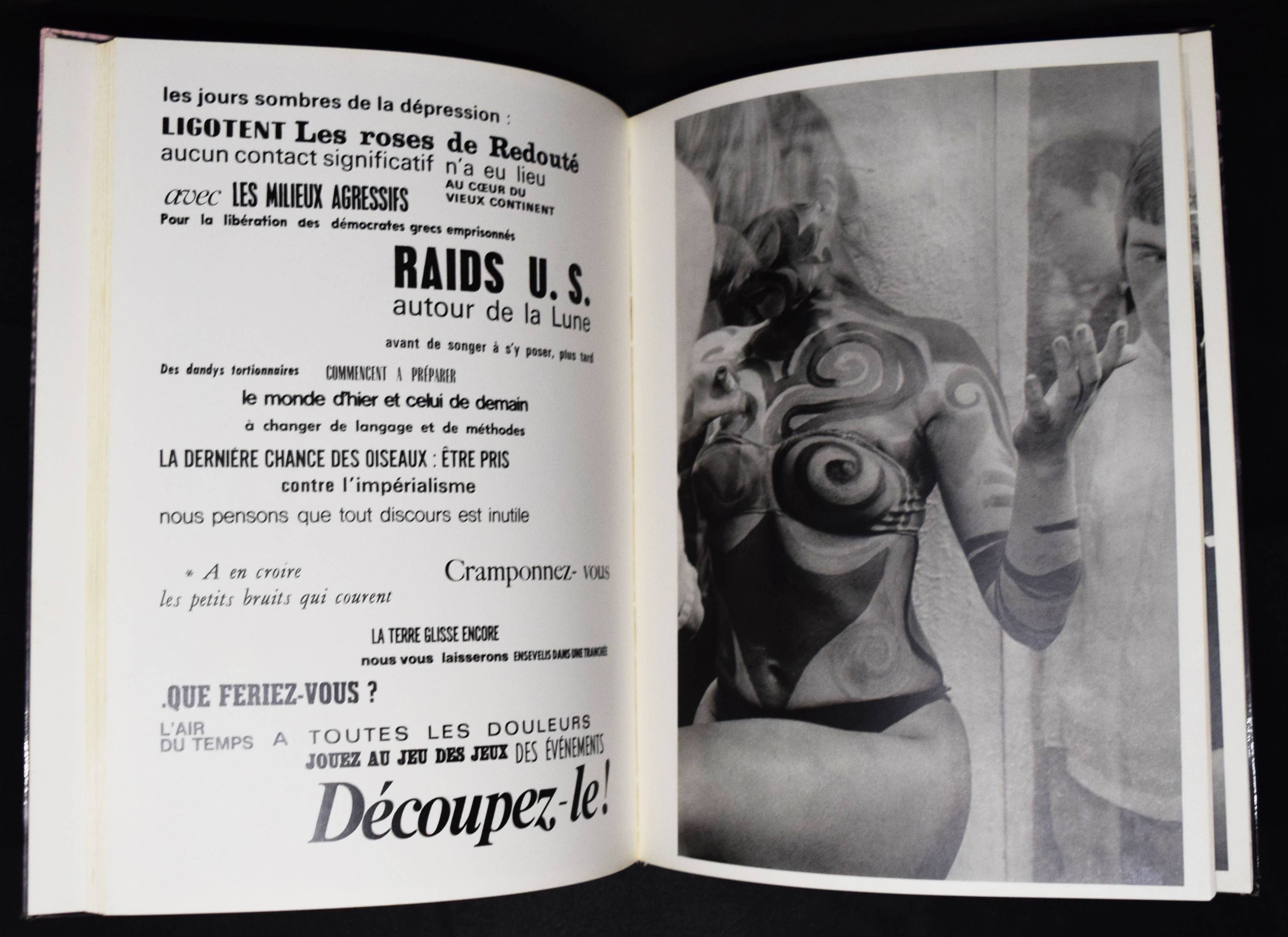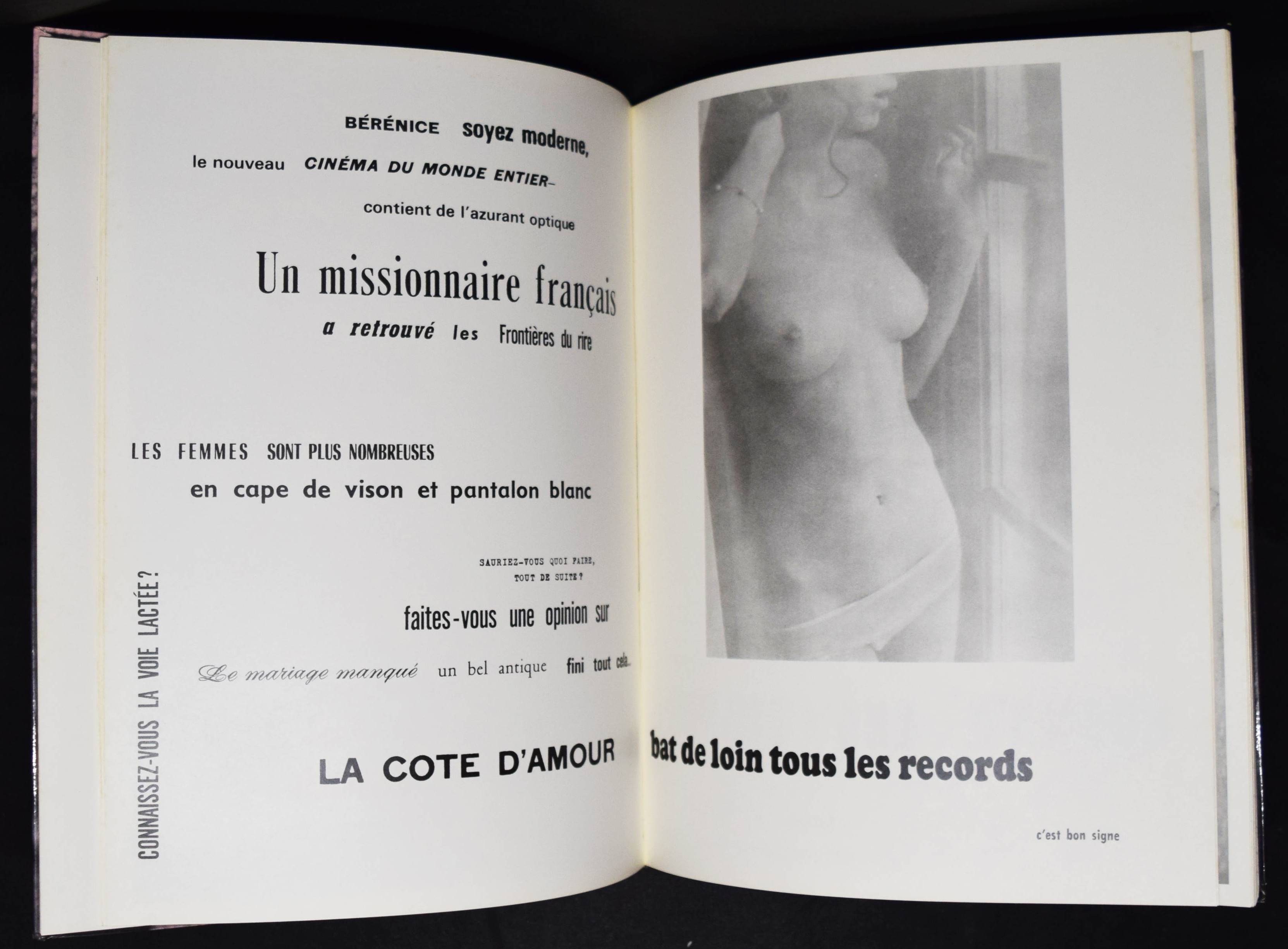 Attali – Delfau, Jacques. Les érotiques du regard. (Photographies de (Marc) Attali). Paris, André Balland (1968). Folio (35,2 x 27 cm.). [112] S. mit 64 Tafeln. Farbig illustr. OPbd. Auer 484. Bertolotti 194. Parr/Badger I, 226. – Erste Ausgabe. – „Les érotiques du regard (The erotics of the gaze) by Marc Attali and Jacques Delfau largely succeeds in this delicate balancing act. It is a frank meditation om the male gaze, an essay in pictures and a kind of concrete poetry where the typography has equal status with the imagery. Unlike many of the so-called erotic books from the 1960s – the ‚Free Love‘ era – Les Erotiques manages to examine the phenomenon of the male gaze, whilst at the same time doing the classically male thing of gazing. The book is full of snatched images of woman in public – on the streets and in cafés – voyeuristically focusing on their bodies – primarily legs. Yet in the context of the book the pictures declare themselves for what they are, so that the whole volume is as much self-regarding as regarding. It is a thoughtful book that concentrates on looking, yet is light-hearted and serious at one and the same time, which means that it both engages and disengages with the erootic in an interesting, thoroughly ambiguous, complex and tantalizing way“ (Parr/Badger). – Ecken am Kapital und Fuß etwas bestoßen, sehr gutes Exemplar.